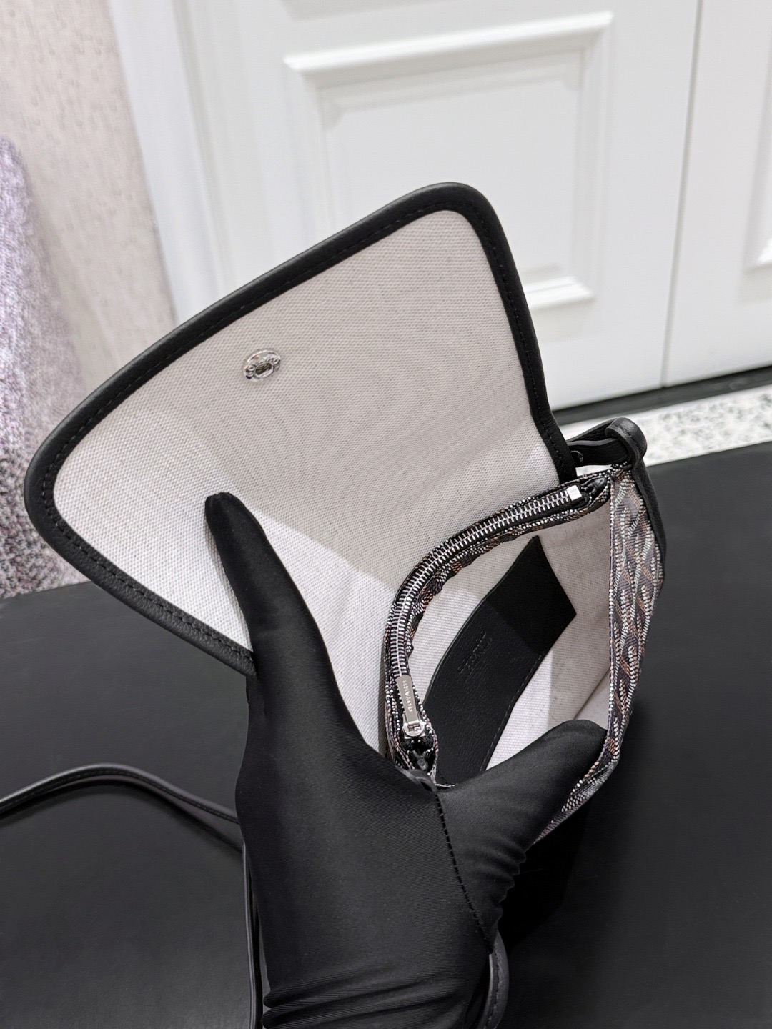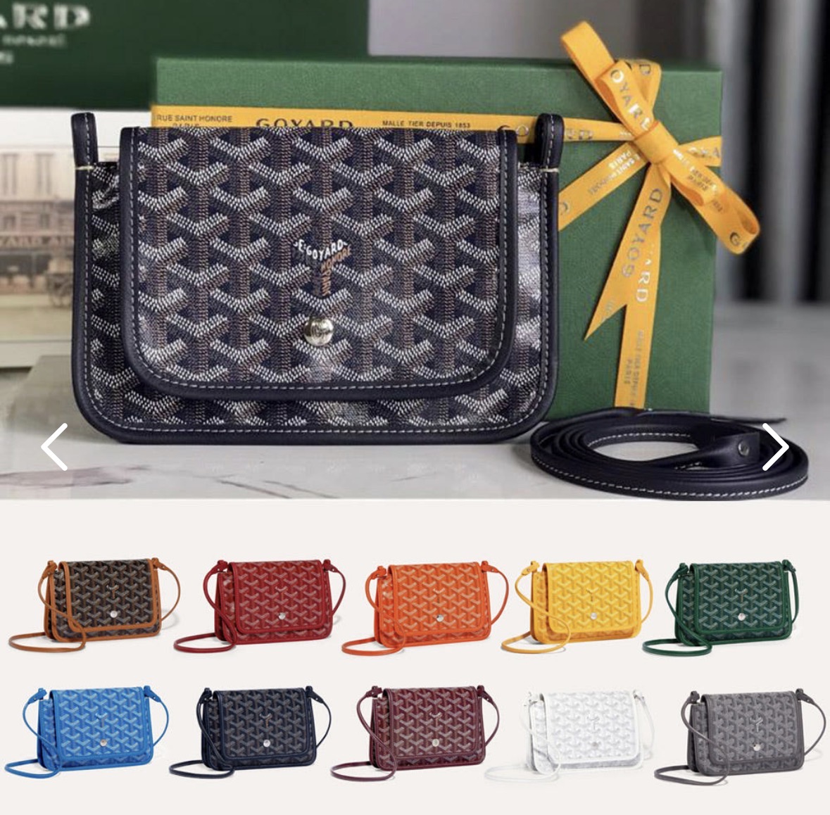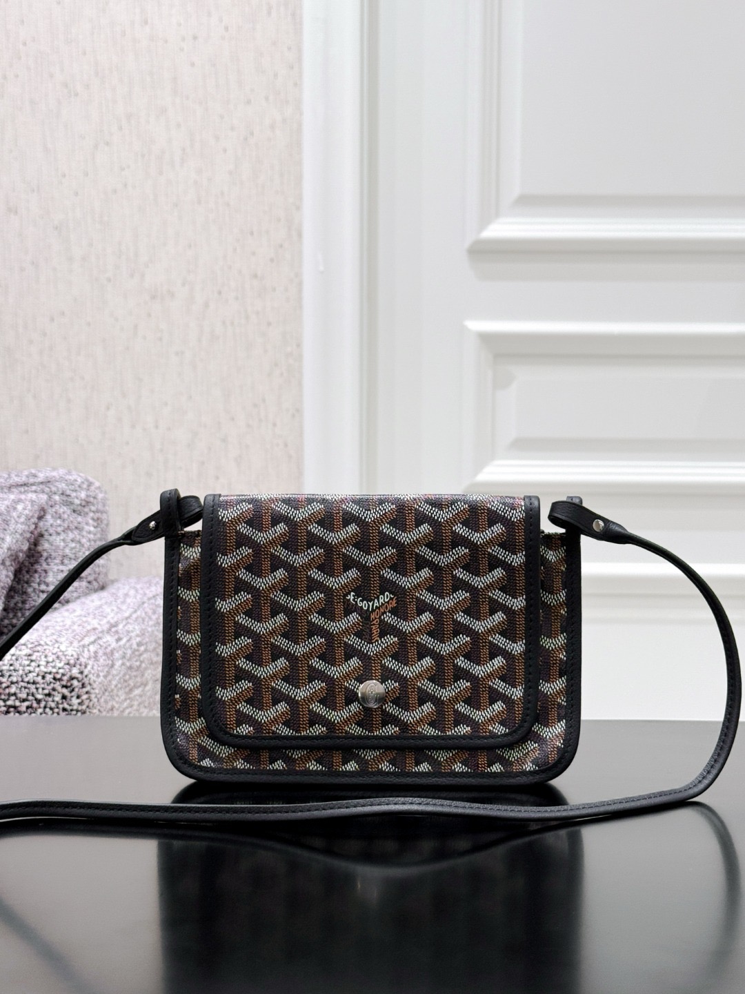 고야드 플뤼메 월릿 미니 크로스백 고야딘 캔버스,쉐브로슈 카프스킨 레더 조절 및 탈착가능한 스트랩 3개의 수납. 후면 포켓. 카드포켓2 20.5 x 2.5x 14