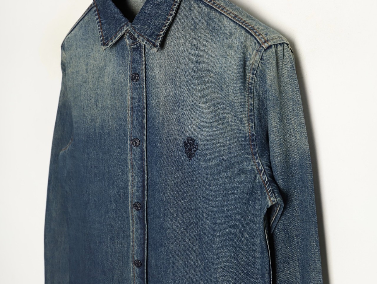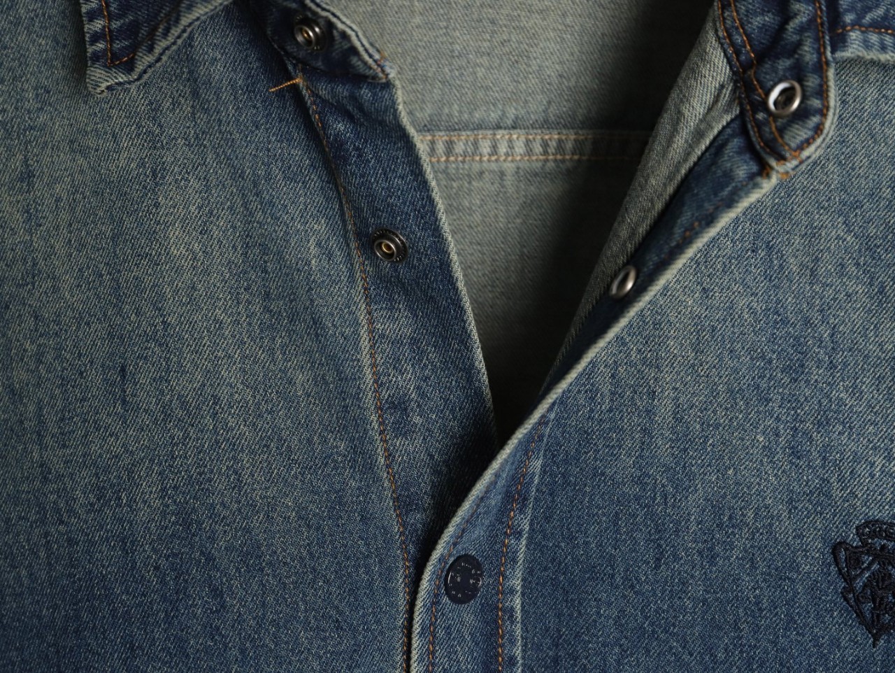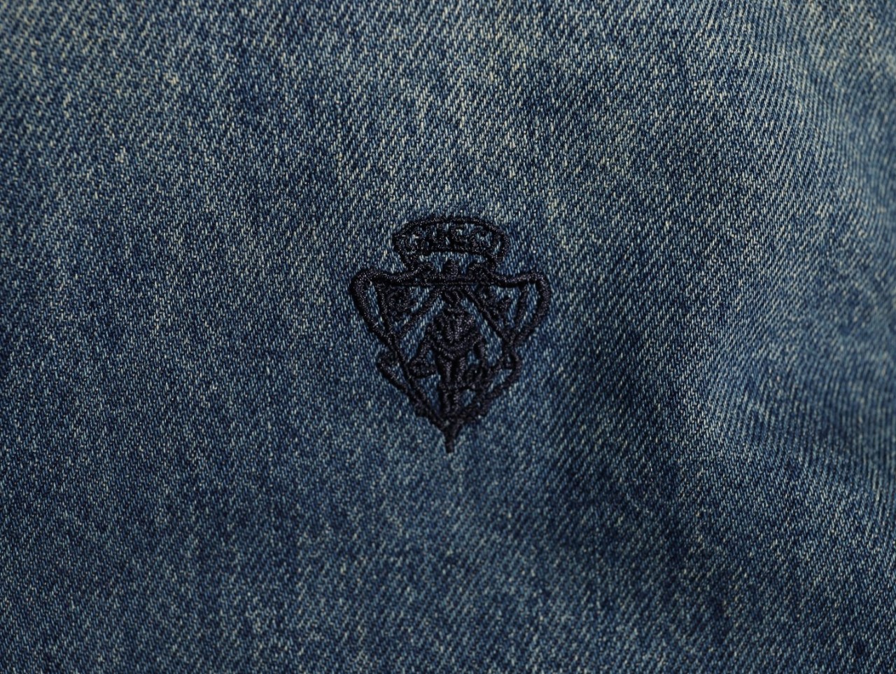 주문 제작 천면 데님 직물로 수입기 자수 공법으로 정밀도가 높고 선이 매끄럽고 섬세하며