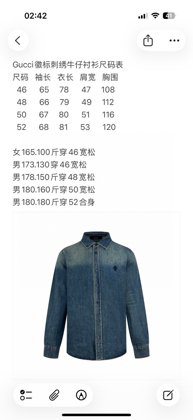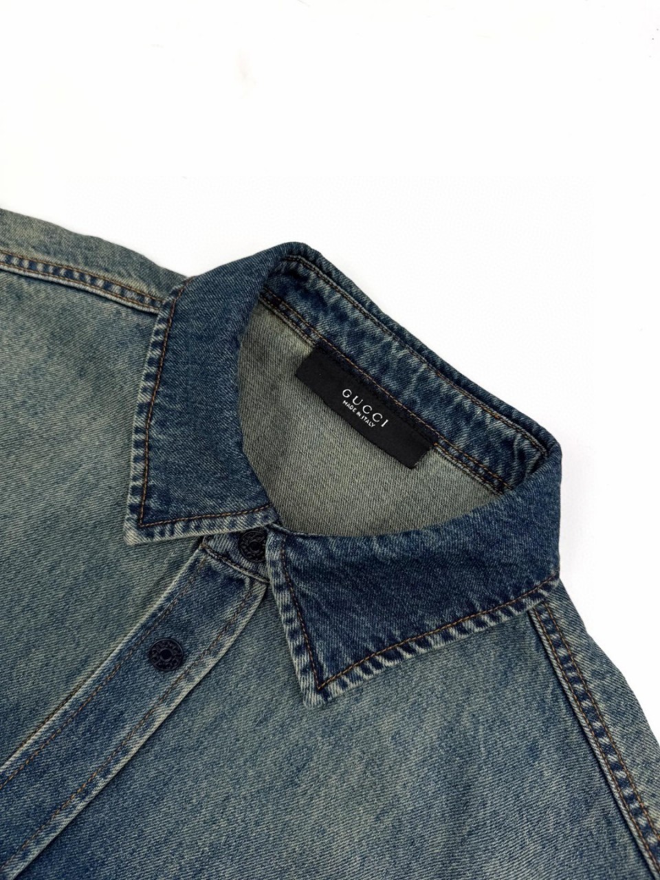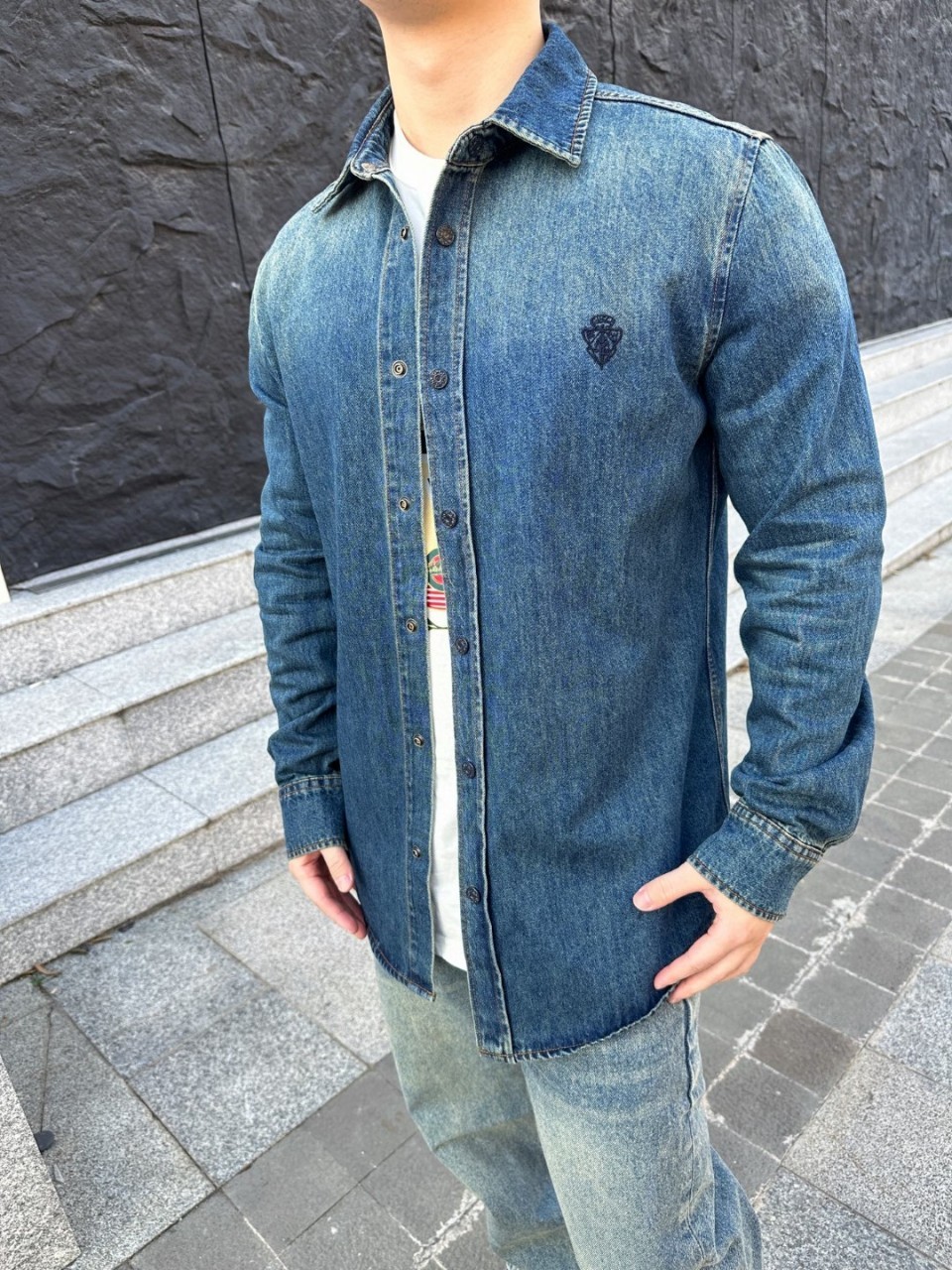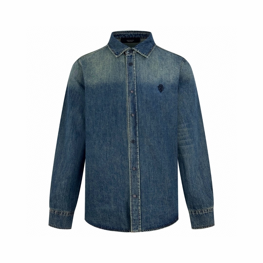 구* 로고 자수 데님 셔츠