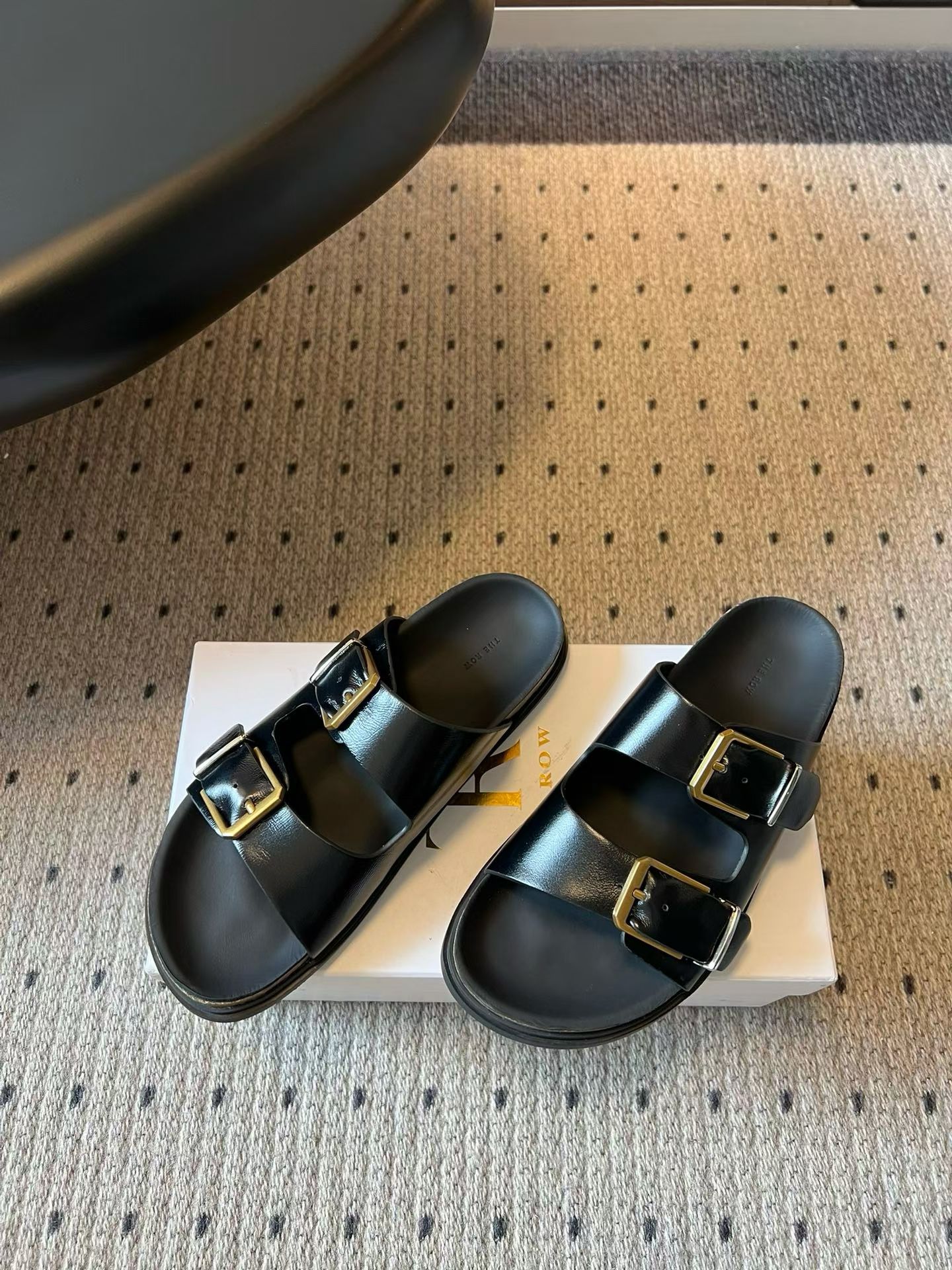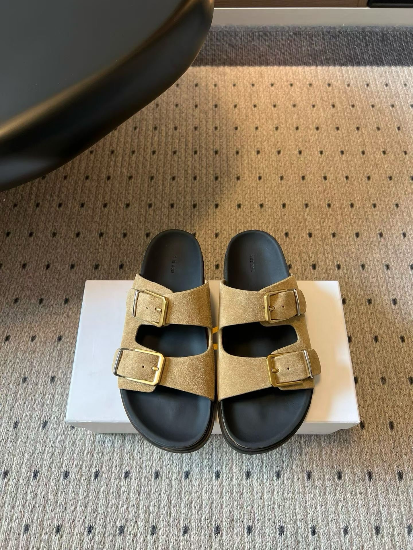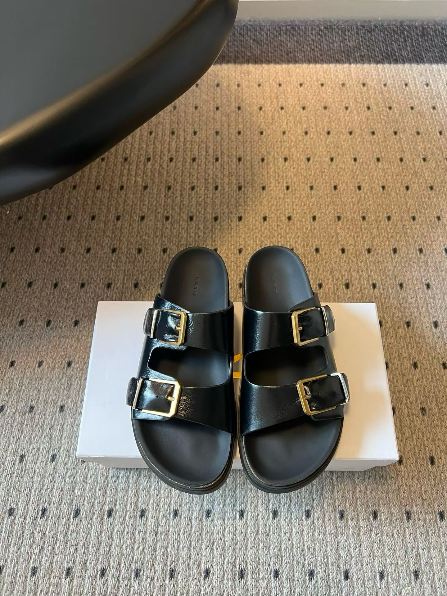 THE ROW26SS 더블 골드 버클 레트로 캐주얼 샌들