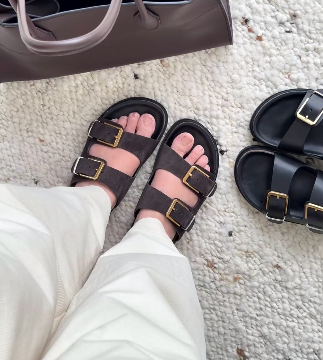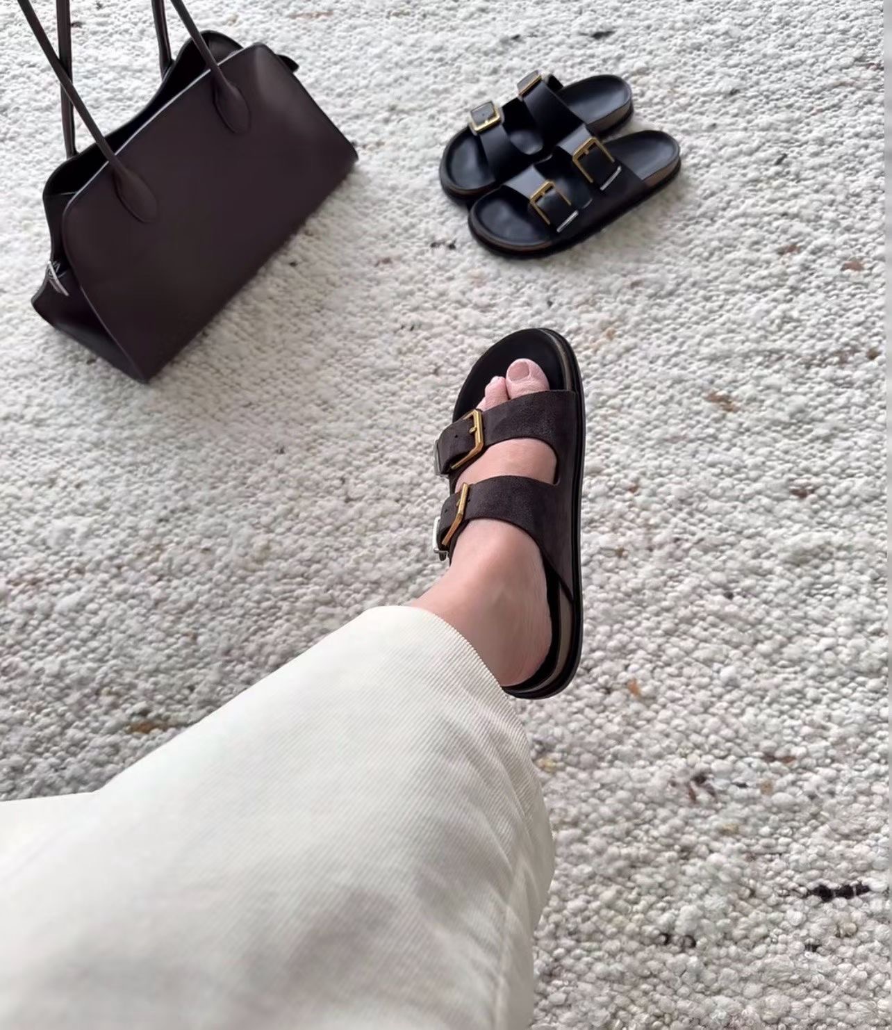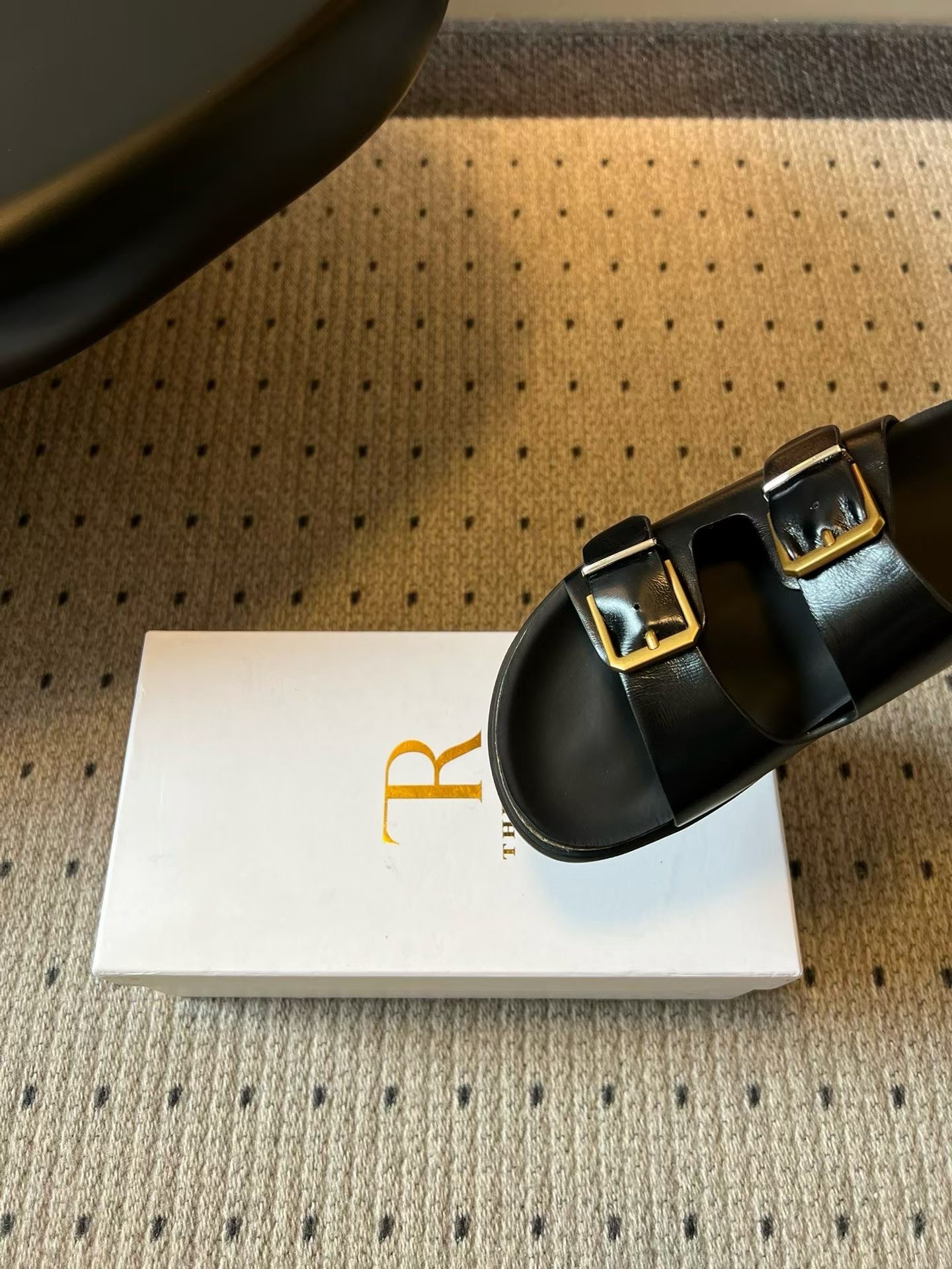 THE ROW26SS 더블 골드 버클 레트로 캐주얼 샌들