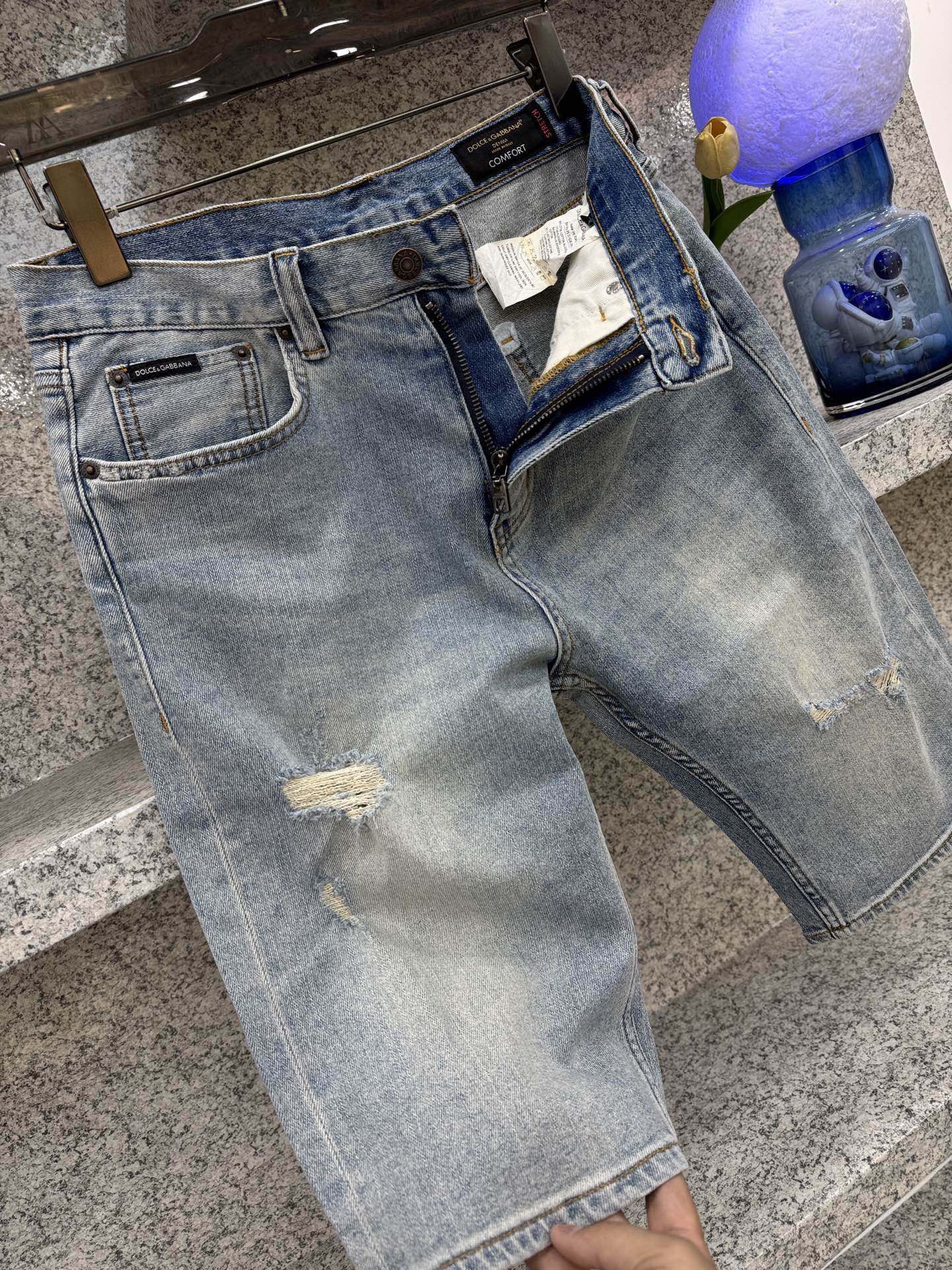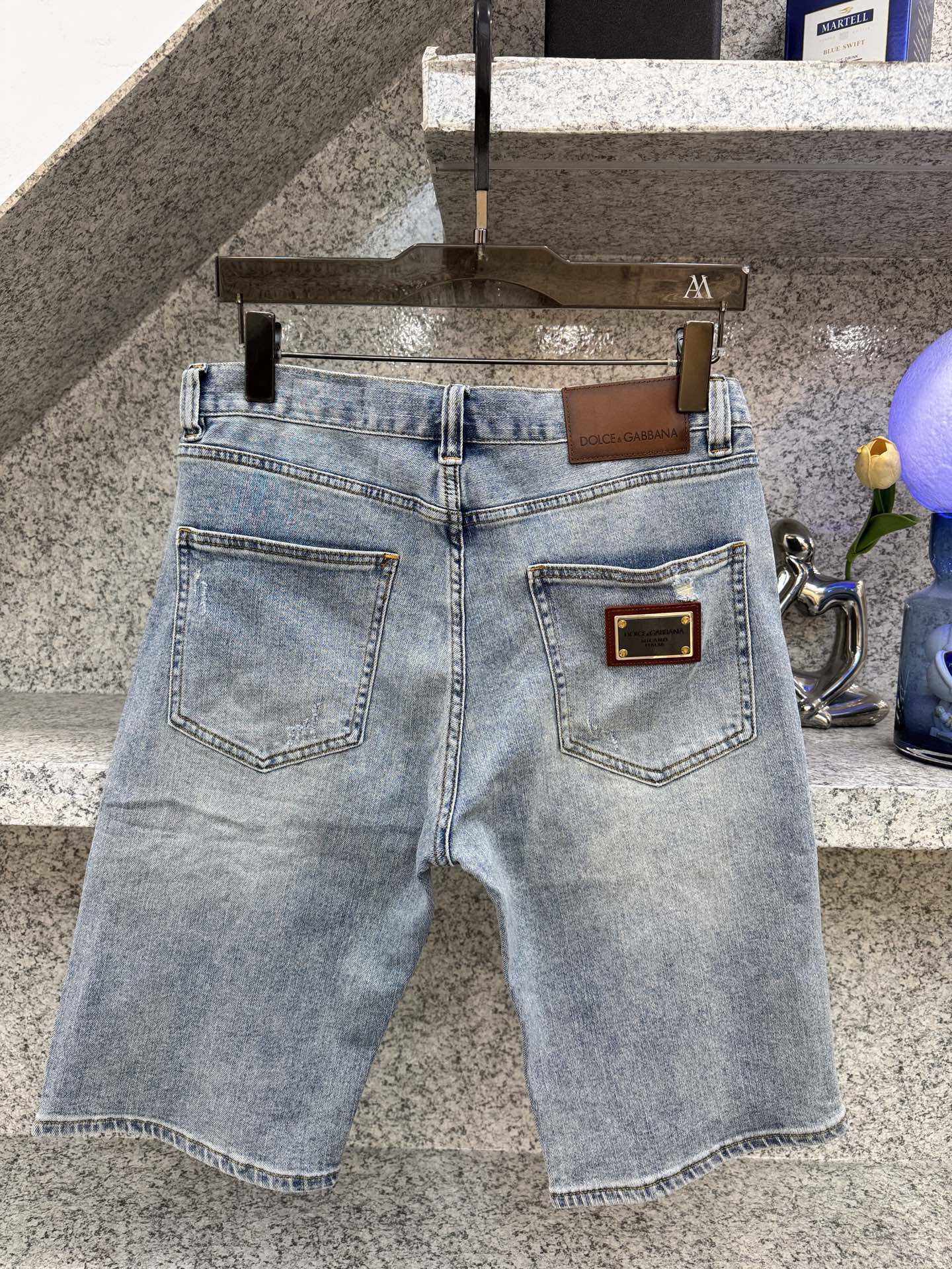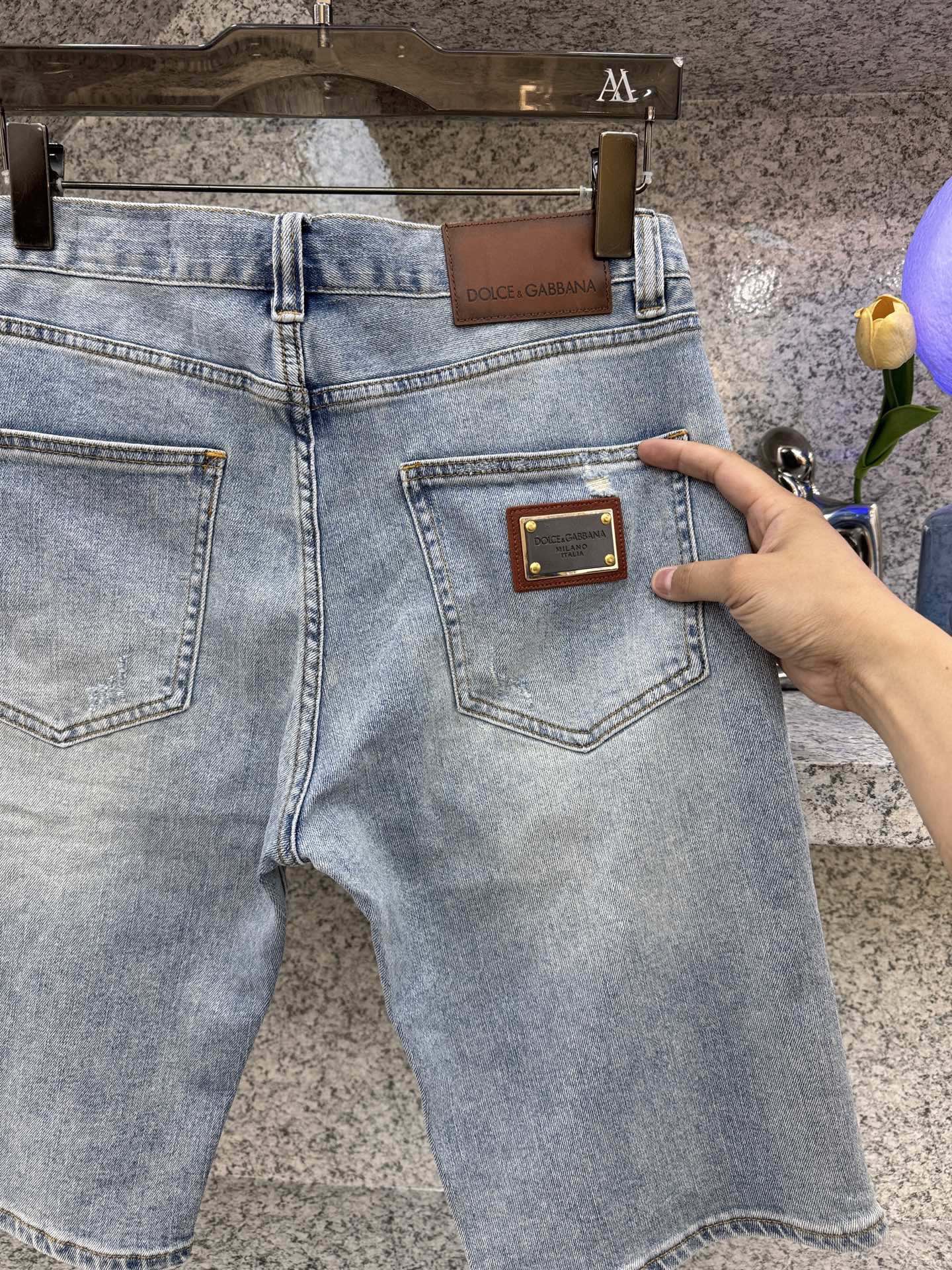 돌체앤가바나 𝘿𝙊𝙇𝘾𝙀 & 𝙂𝘼𝘽𝘽𝘼𝙉𝘼 봄여름 트렌드 빈티지 컬러 데님 쇼츠 슬림핏 클래식 가죽 브랜드 로고 사이즈. 29-38 35 있음 37 없음