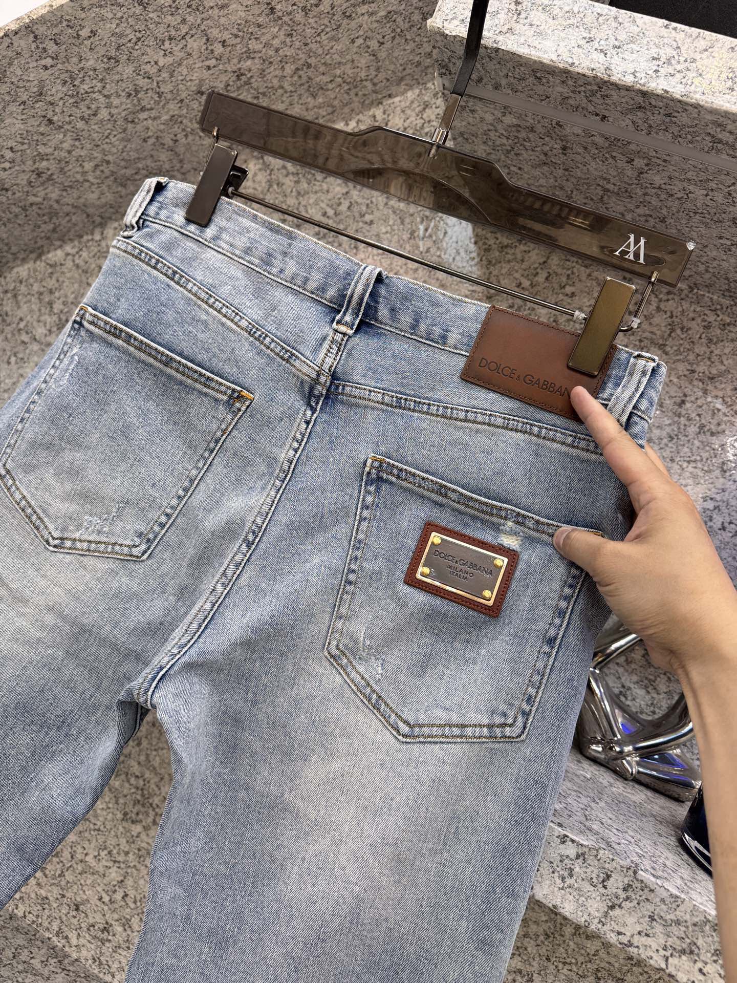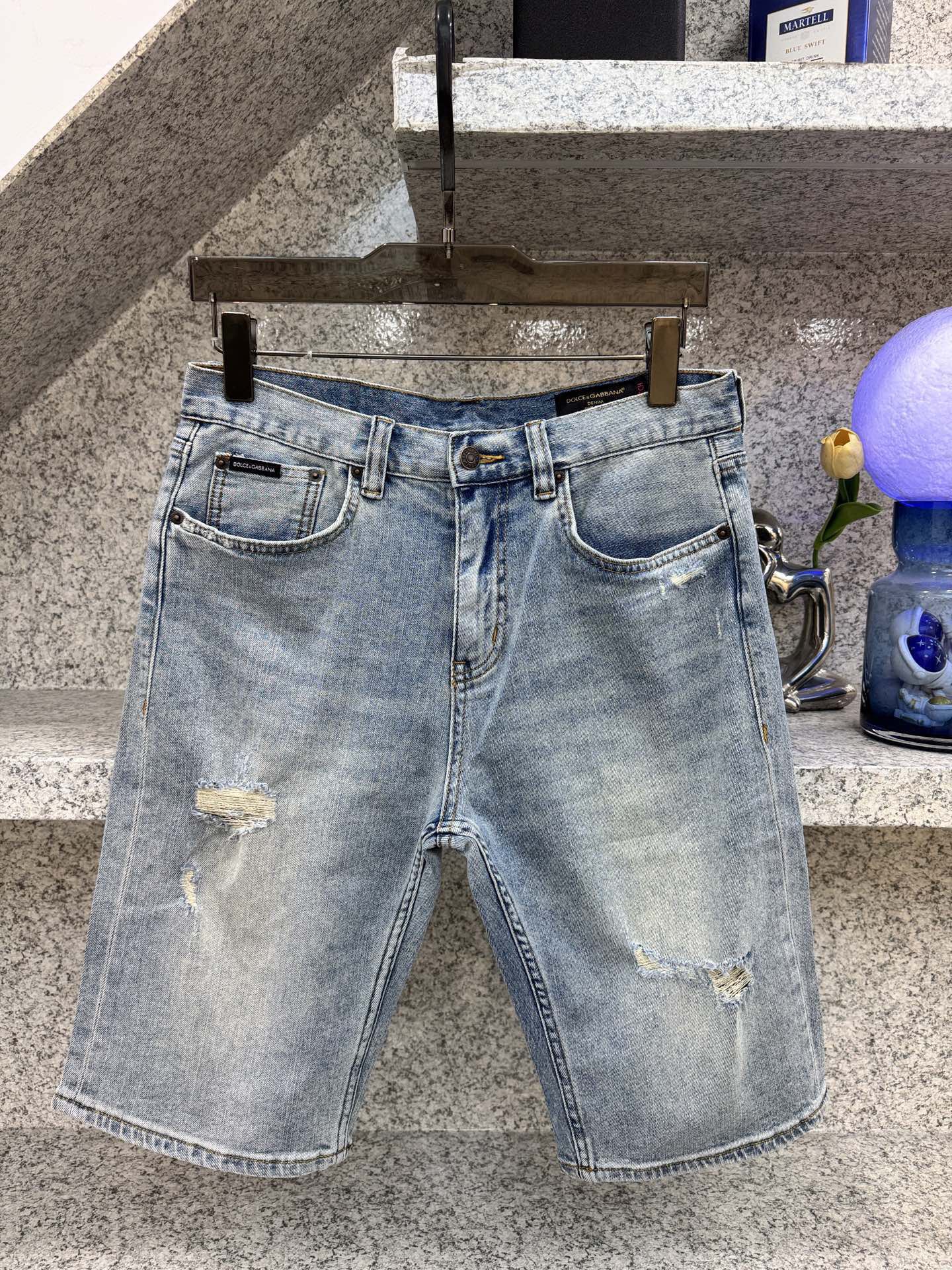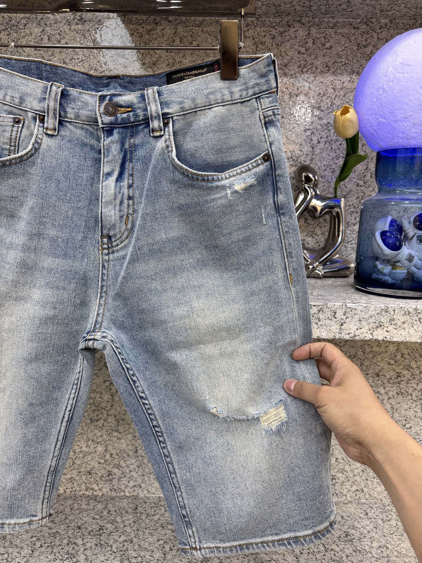 돌체앤가바나 𝘿𝙊𝙇𝘾𝙀 & 𝙂𝘼𝘽𝘽𝘼𝙉𝘼 봄여름 트렌드 빈티지 컬러 데님 쇼츠 슬림핏 클래식 가죽 브랜드 로고 사이즈. 29-38 35 있음 37 없음