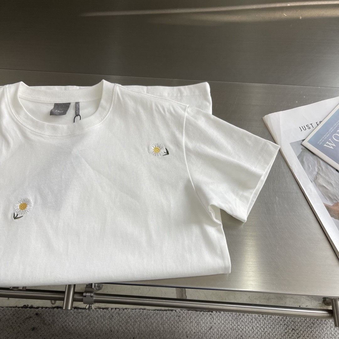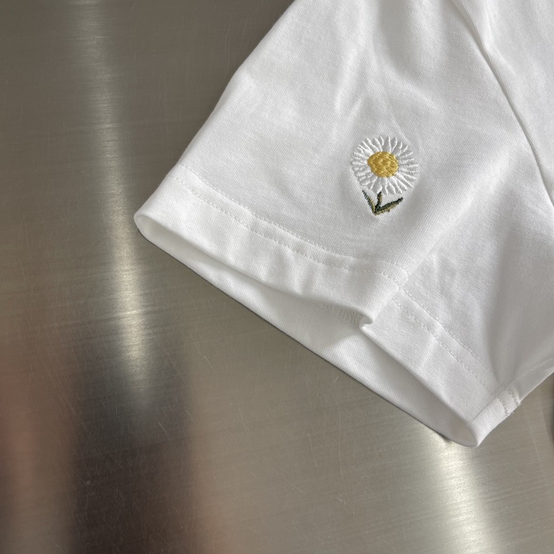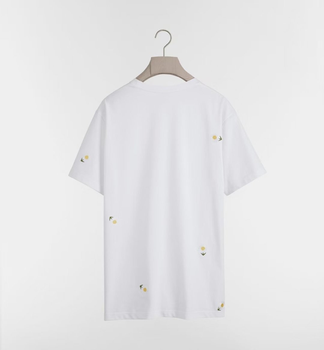 Di♡ 신상 화이트 코튼 평직 니트 소재 데이지 자수 티셔츠