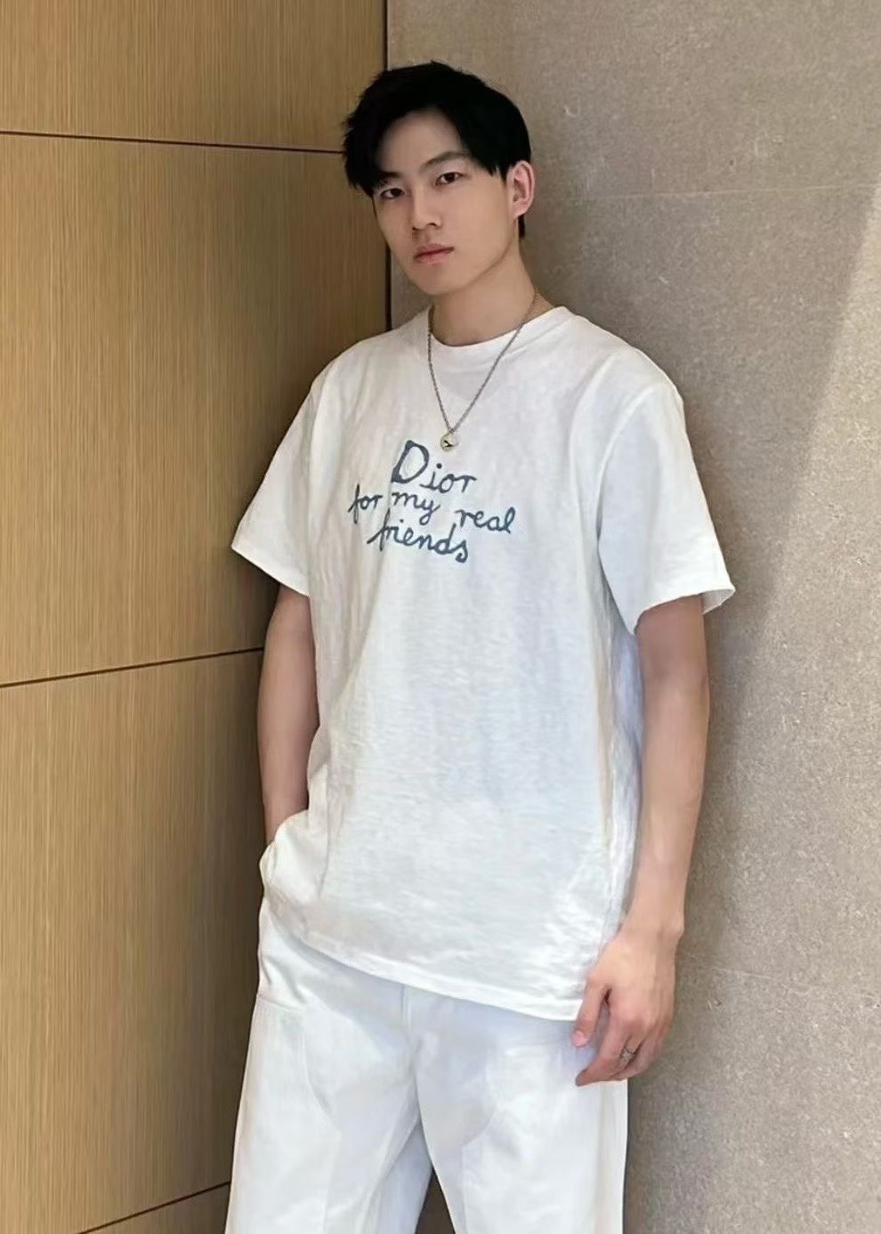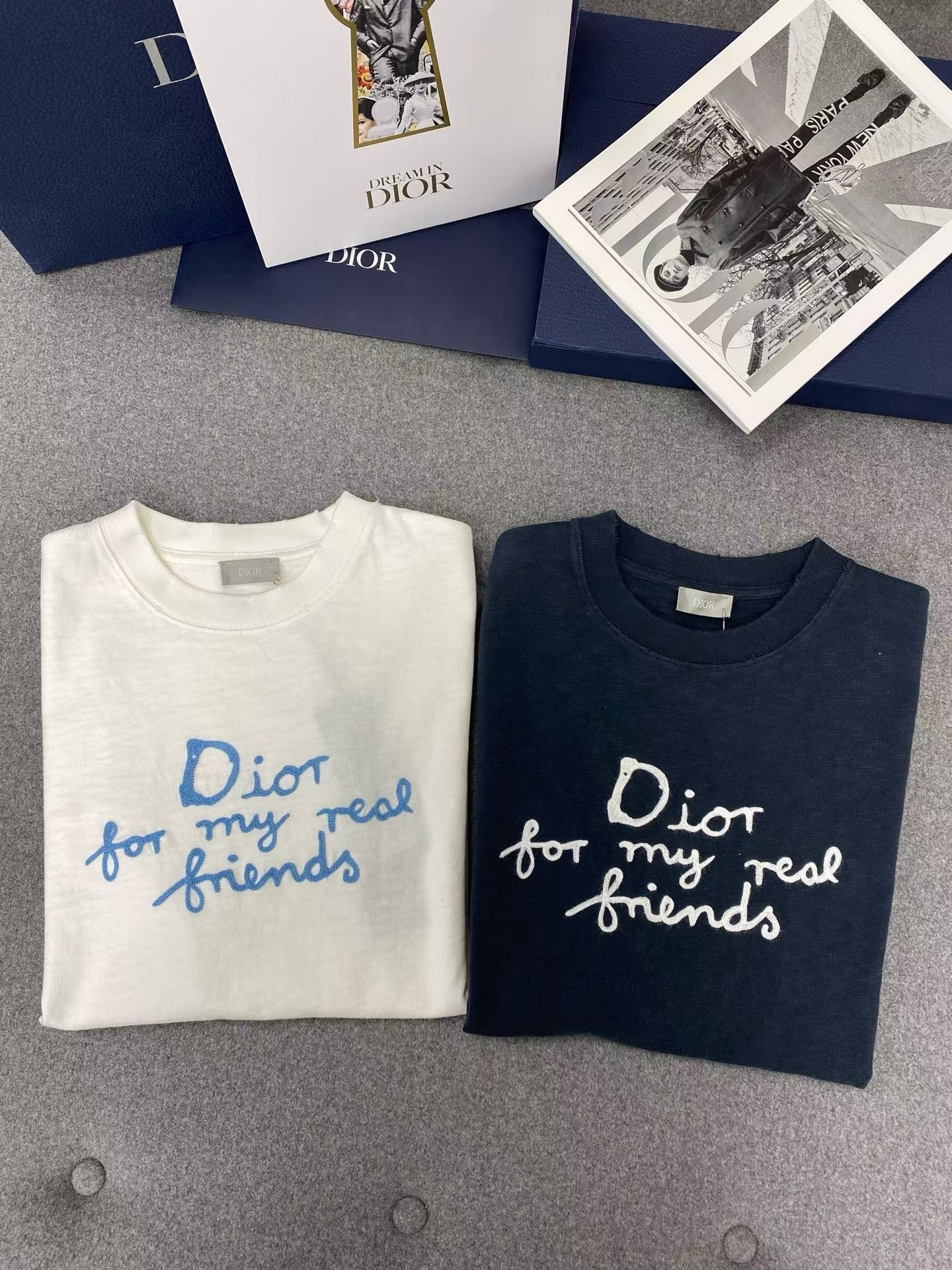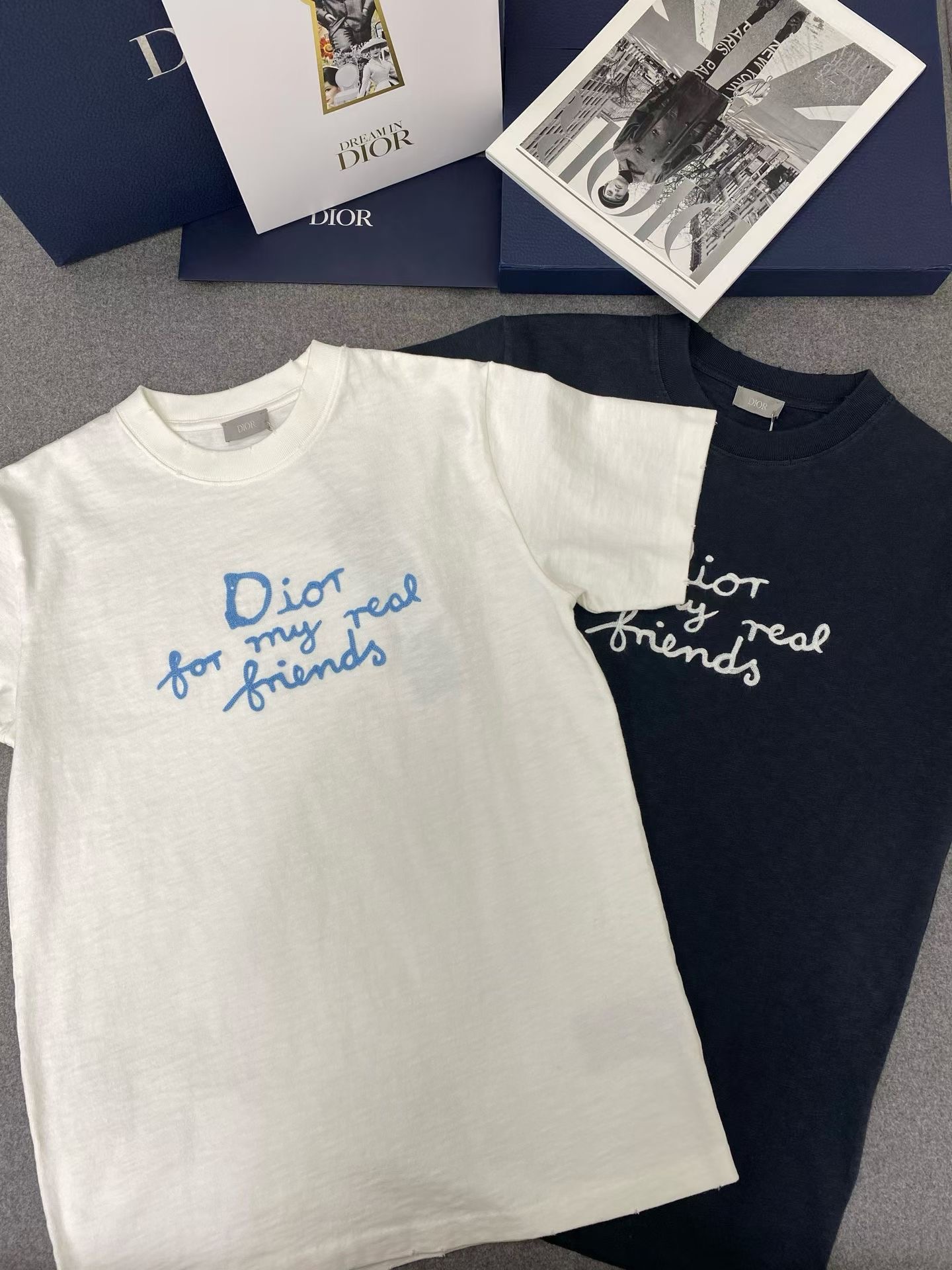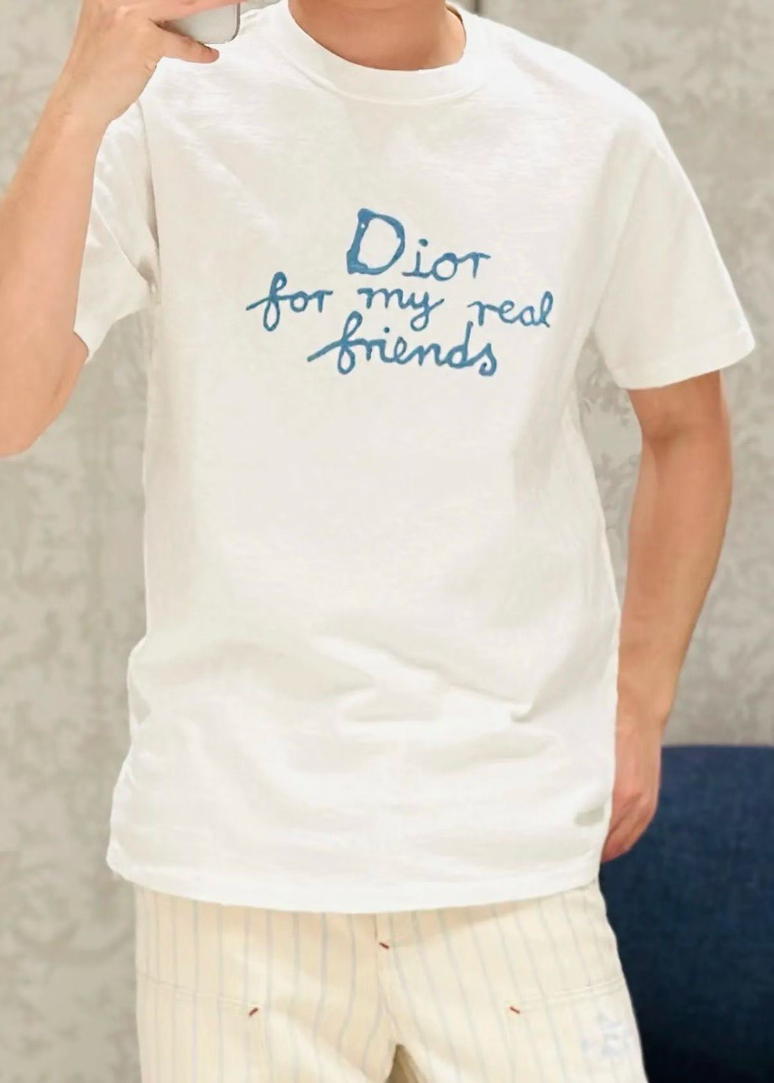 디올 면 티셔츠 대나무 원단이에요! 굉장히 가볍고 부드럽기가 비교할수 없으며 시원한 소재입니다 이니셜은 자수를 일일히 스티칭하여 입체감이 있어요. 사이즈: S M L XL