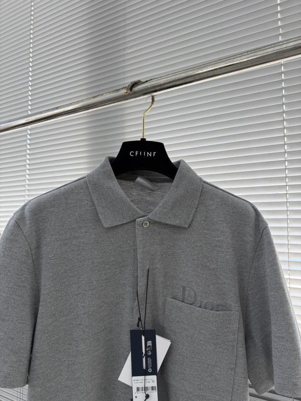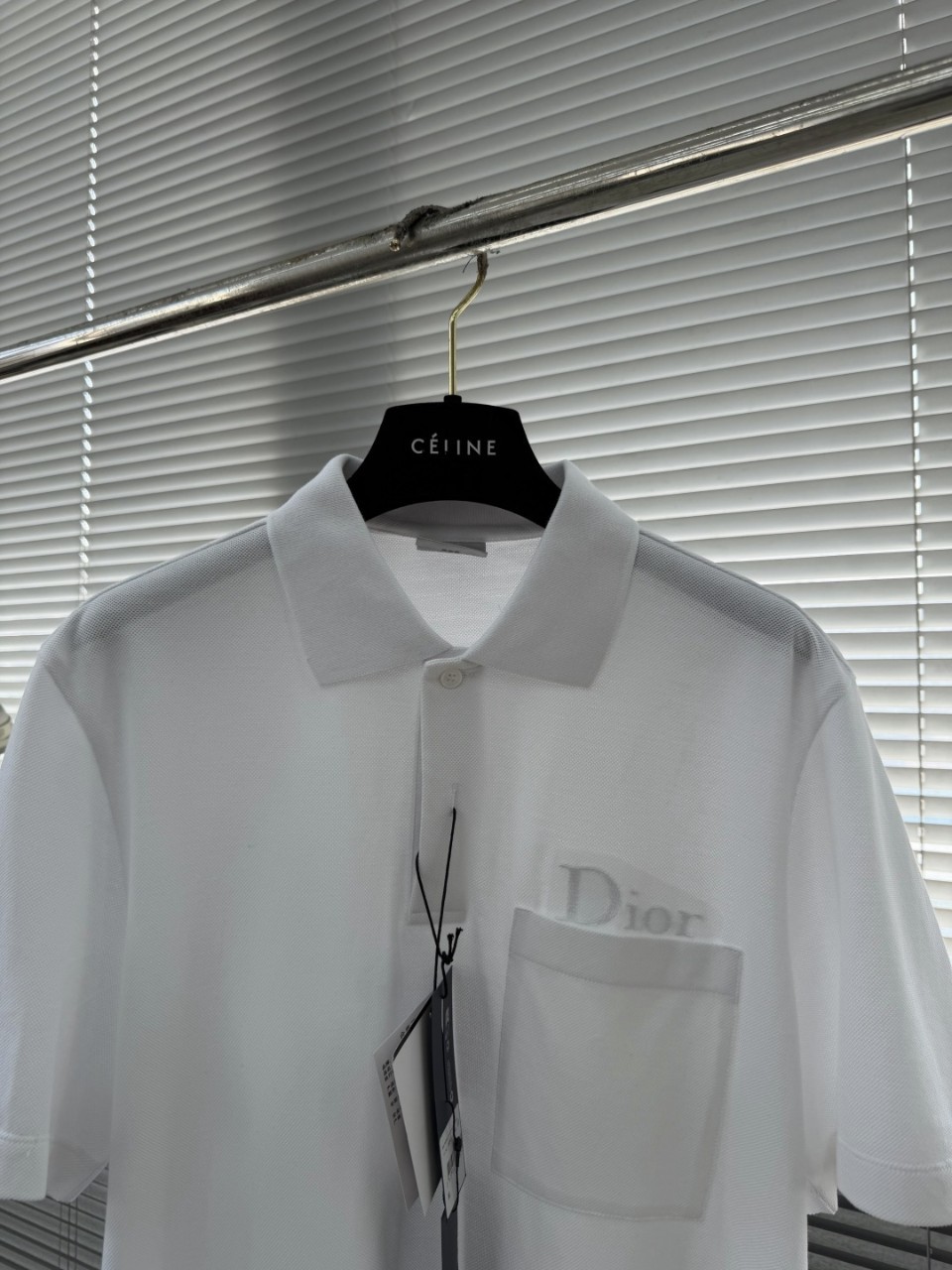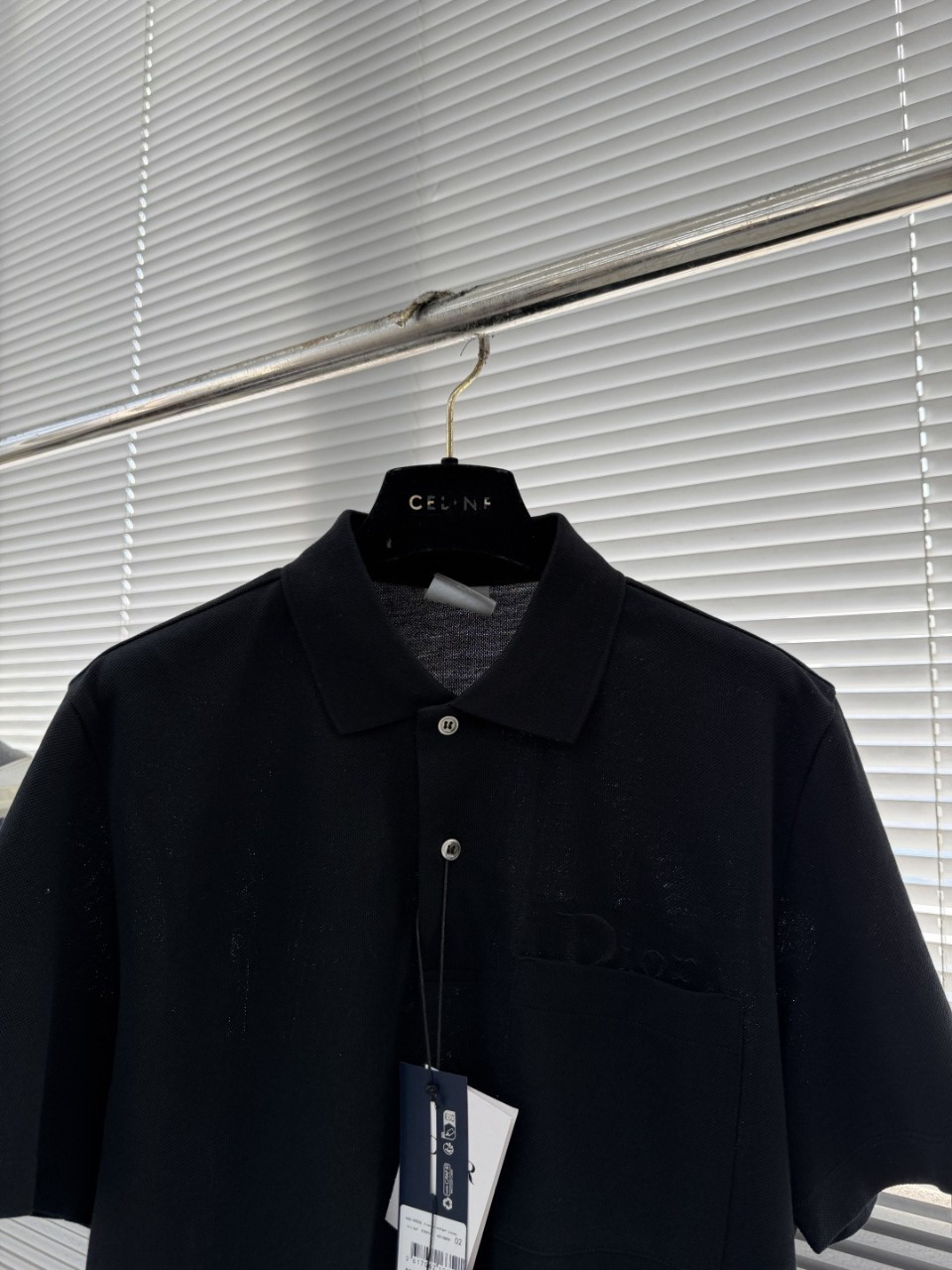 클래식한 칼라와 가슴 포켓, 포켓에 수놓인 “Di♡r” 로고가 절제되면서도 독특한 매력을 선사합니다.