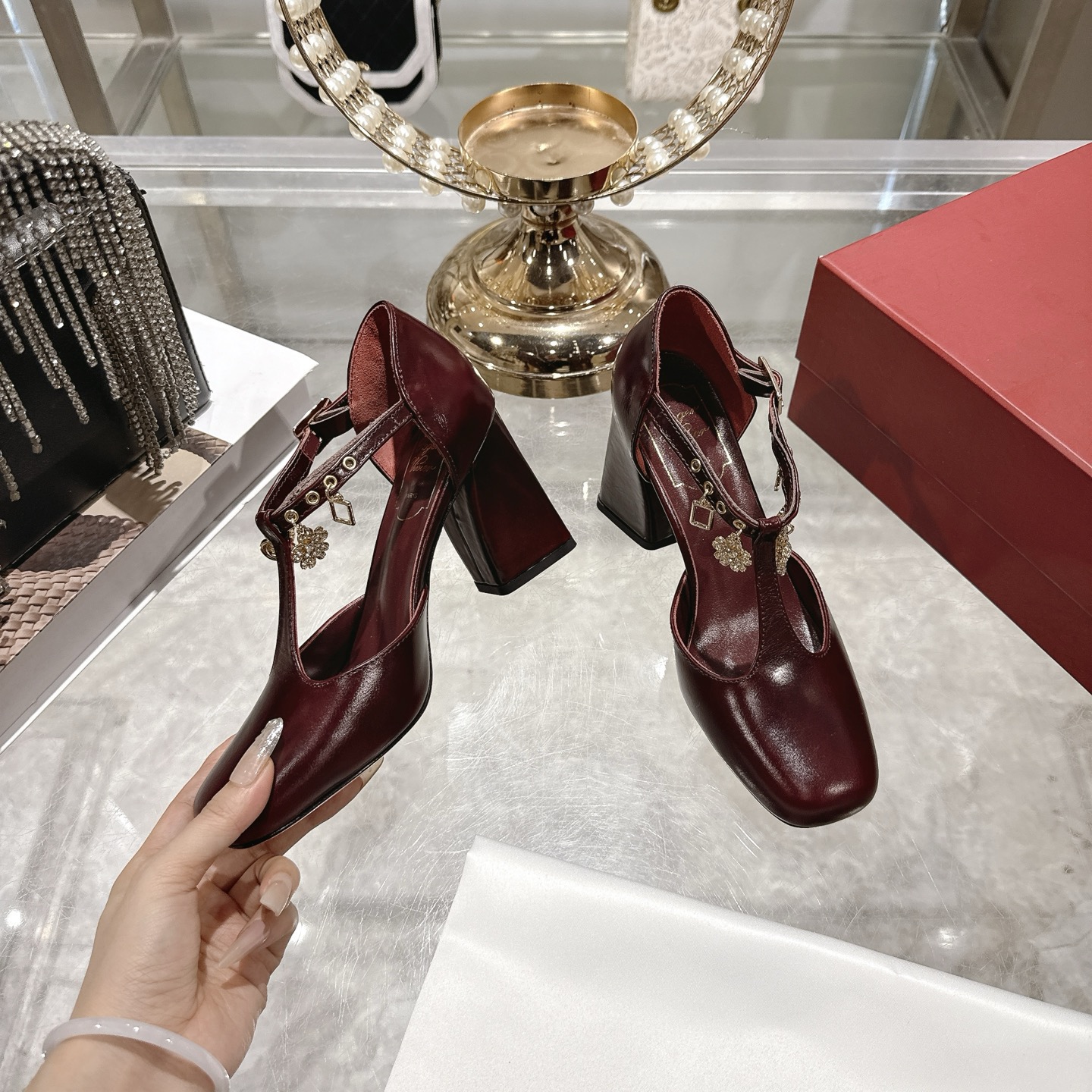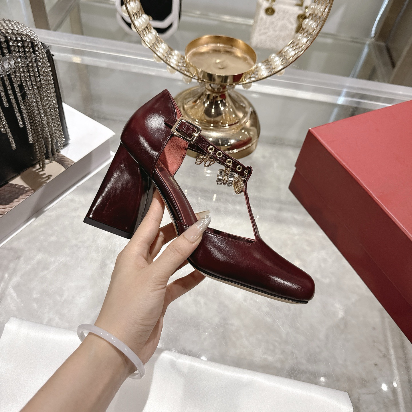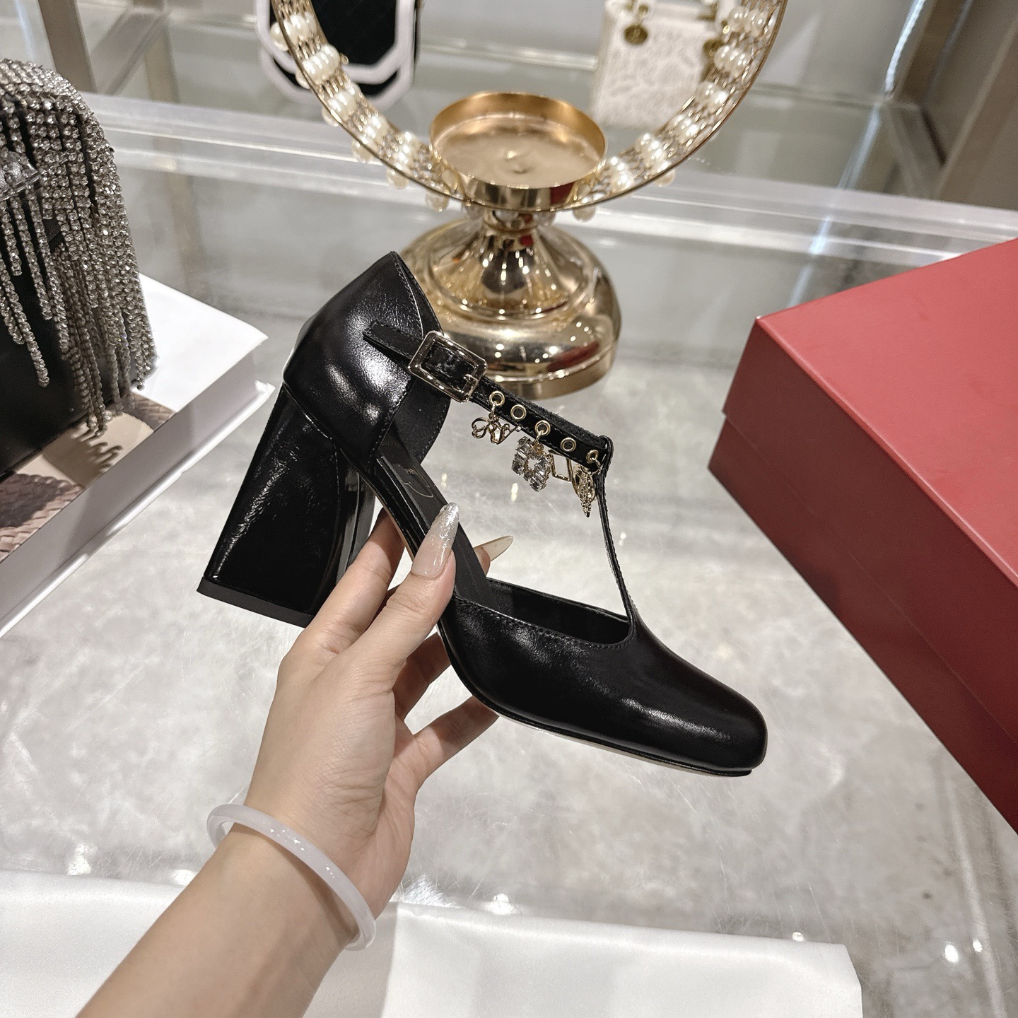 8.5 cm 블럭 힐로 안정적인 굽.