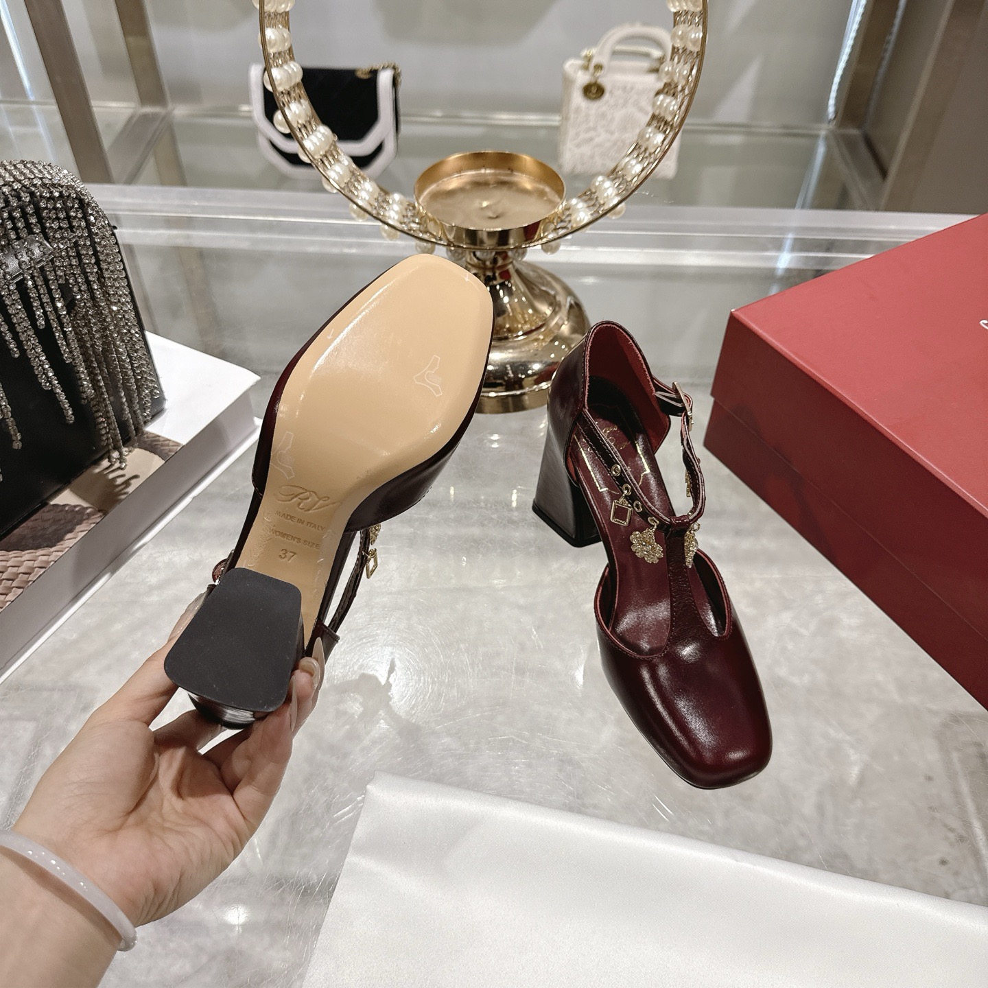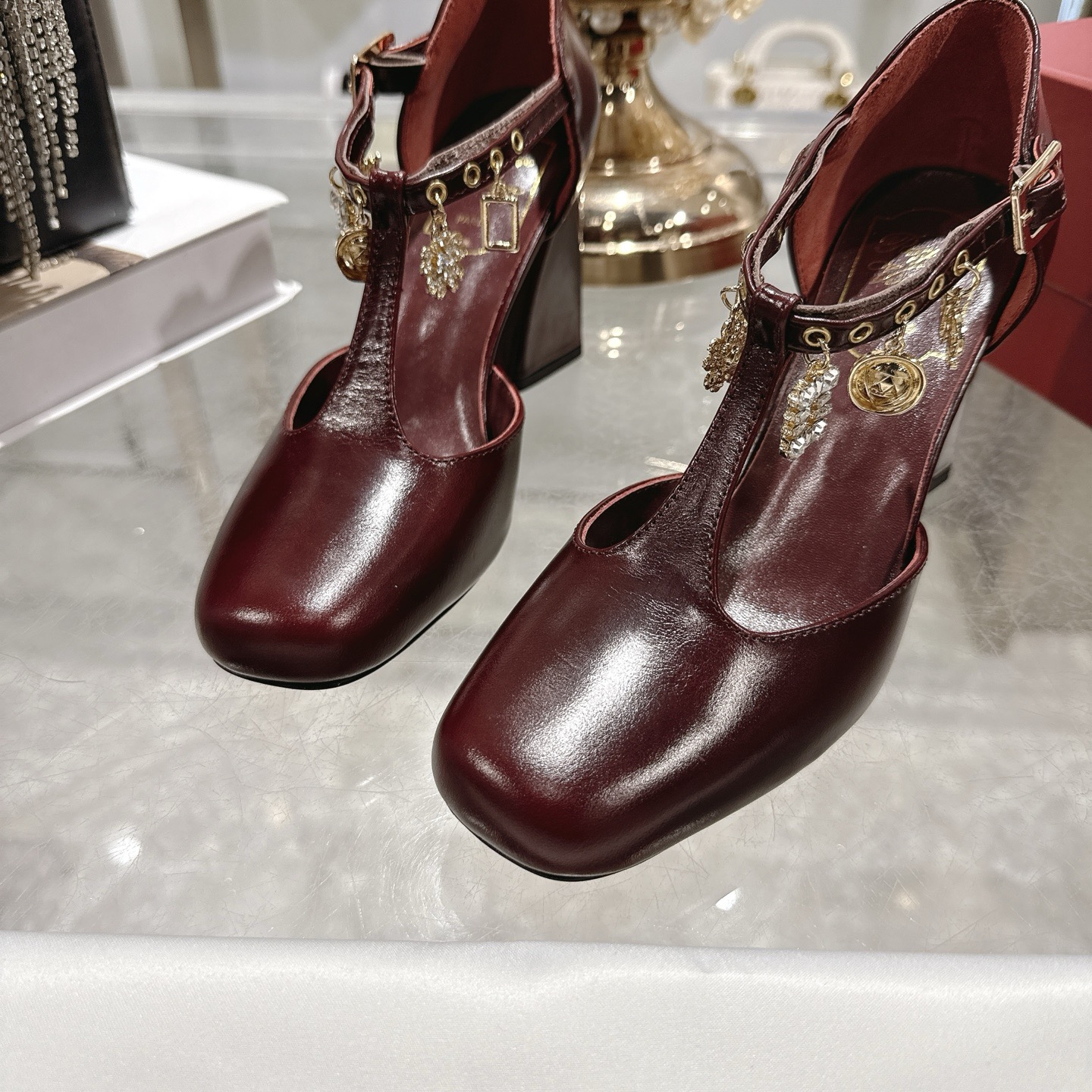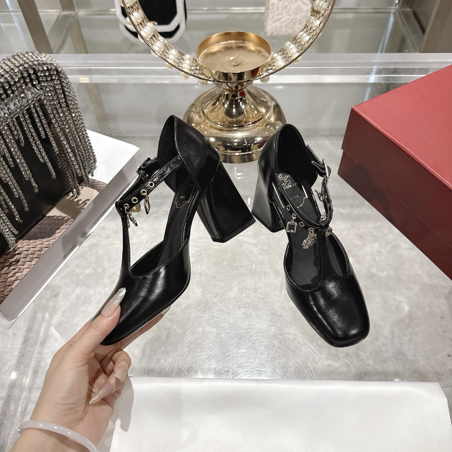 8.5 cm 블럭 힐로 안정적인 굽.