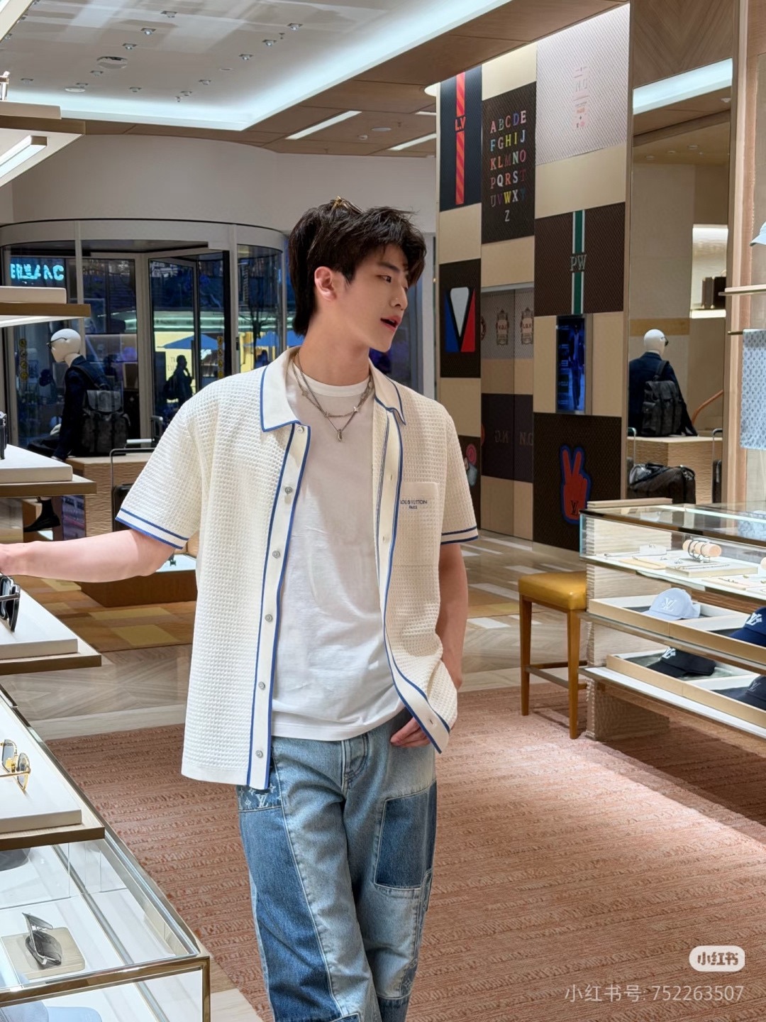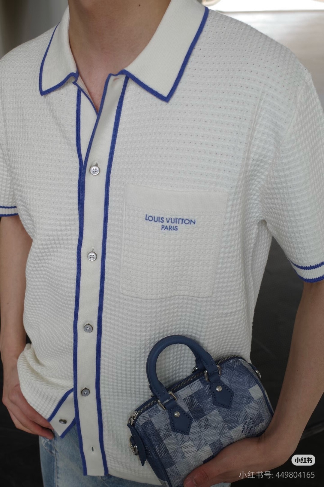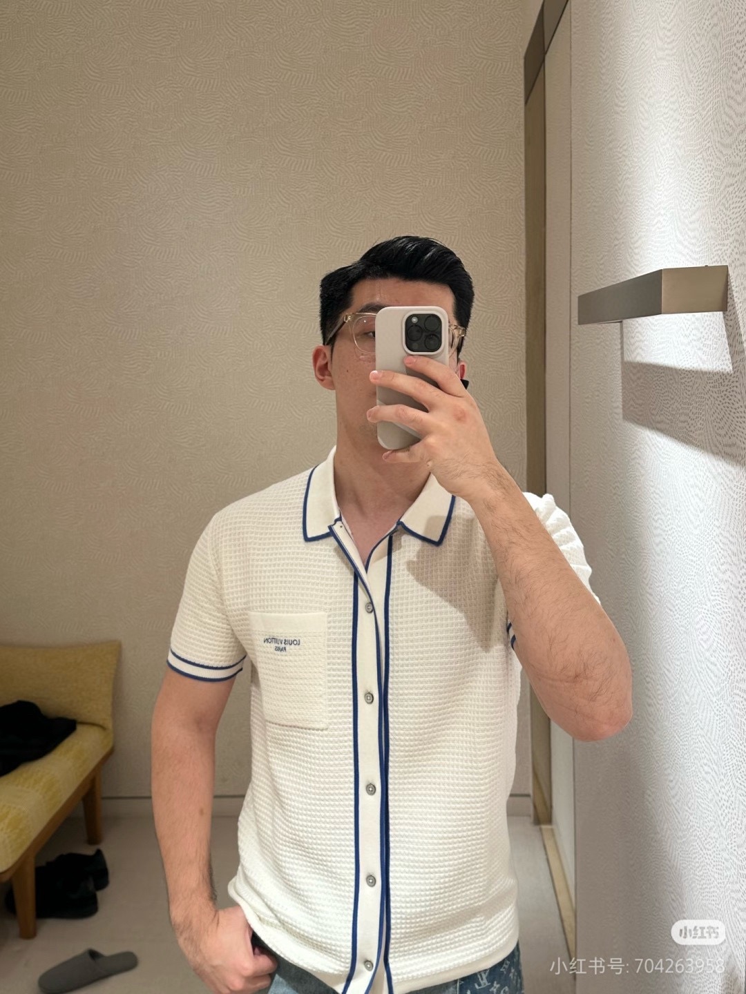 루이비통 포켓 레터링 자수 니트 반팔 셔츠 정품의 독특한 질감을 재현. 핏: 테일러드 핏 사이즈:S-M-L-XL