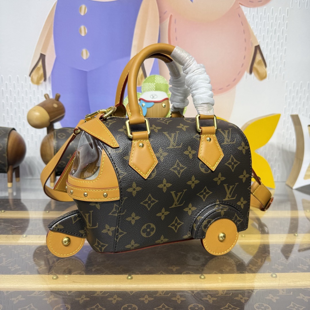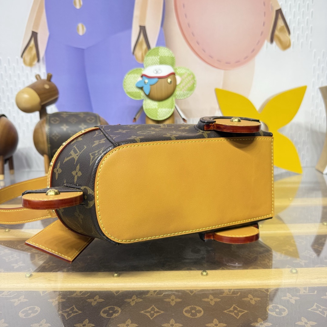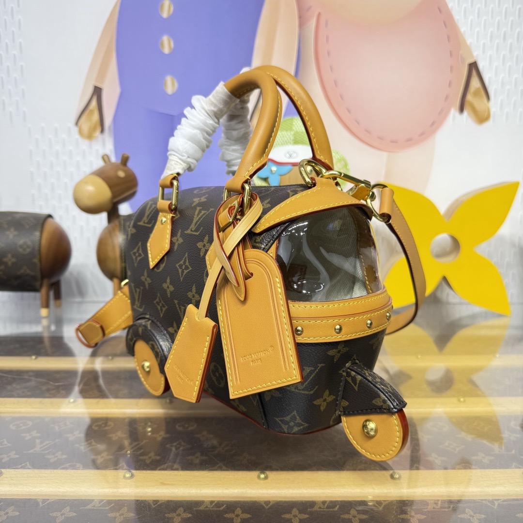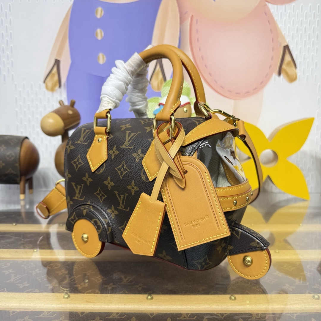 이번 시즌 Pharrell Williams는 영화 《다즐링 횡단》에서 영감을 받아 Monogram 캔버스 소재에 소가죽 테두리와 메탈 액세서리를 더한 Rickshaw 미니백을 출시했습니다.
