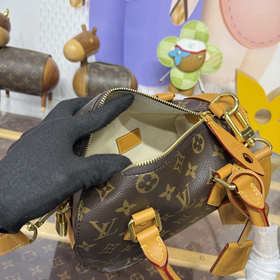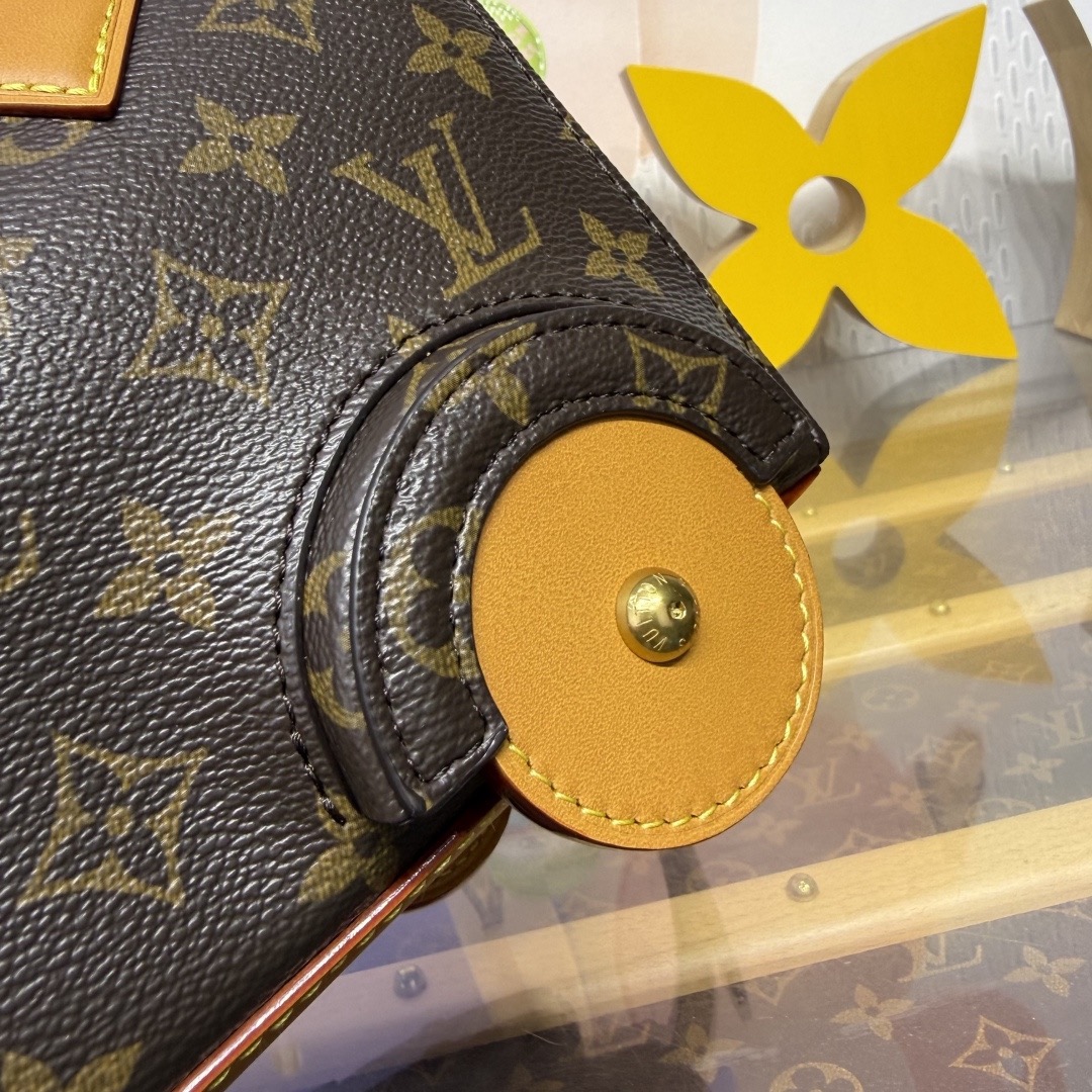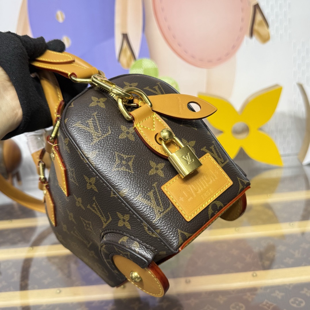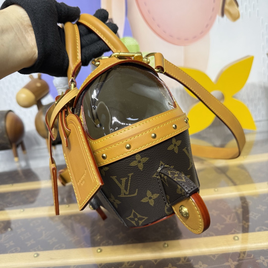 이번 시즌 Pharrell Williams는 영화 《다즐링 횡단》에서 영감을 받아 Monogram 캔버스 소재에 소가죽 테두리와 메탈 액세서리를 더한 Rickshaw 미니백을 출시했습니다.