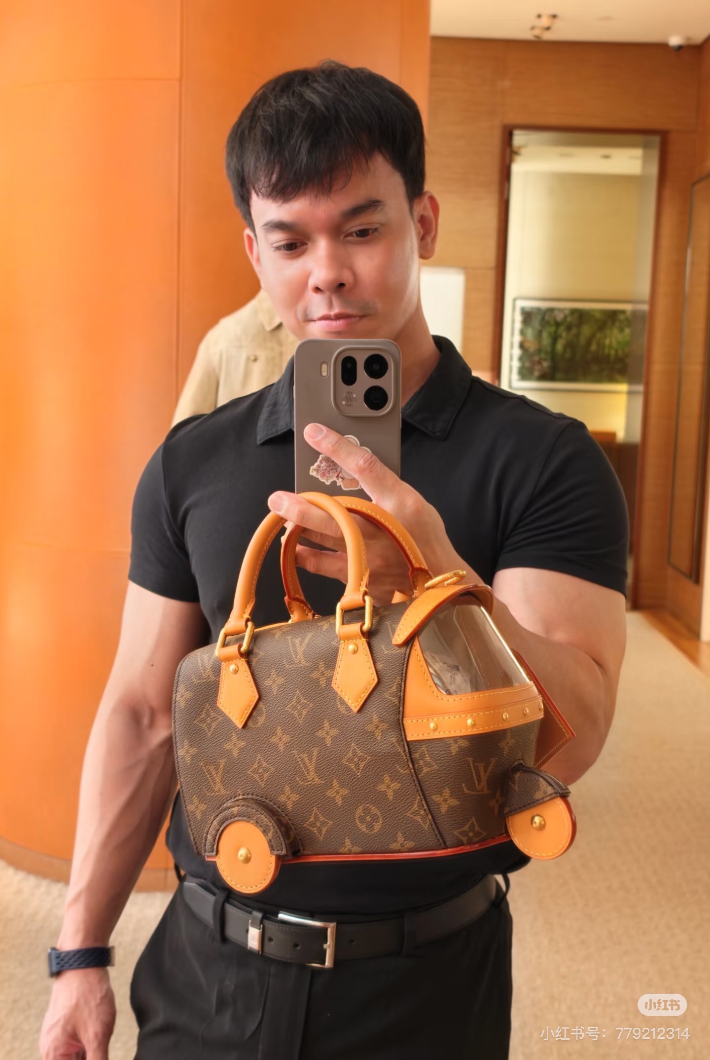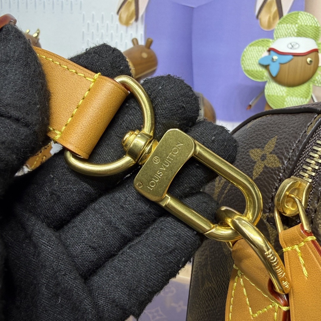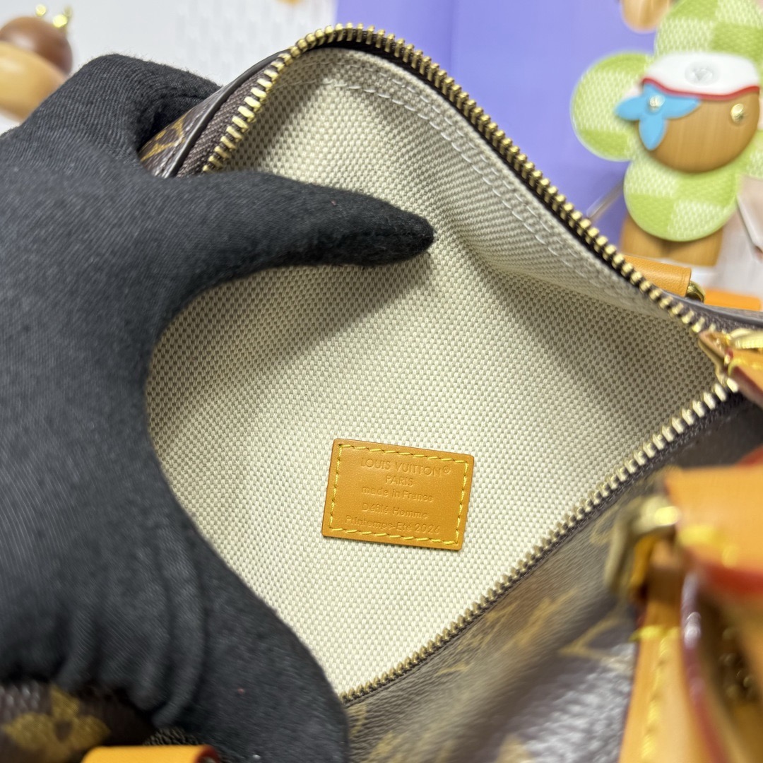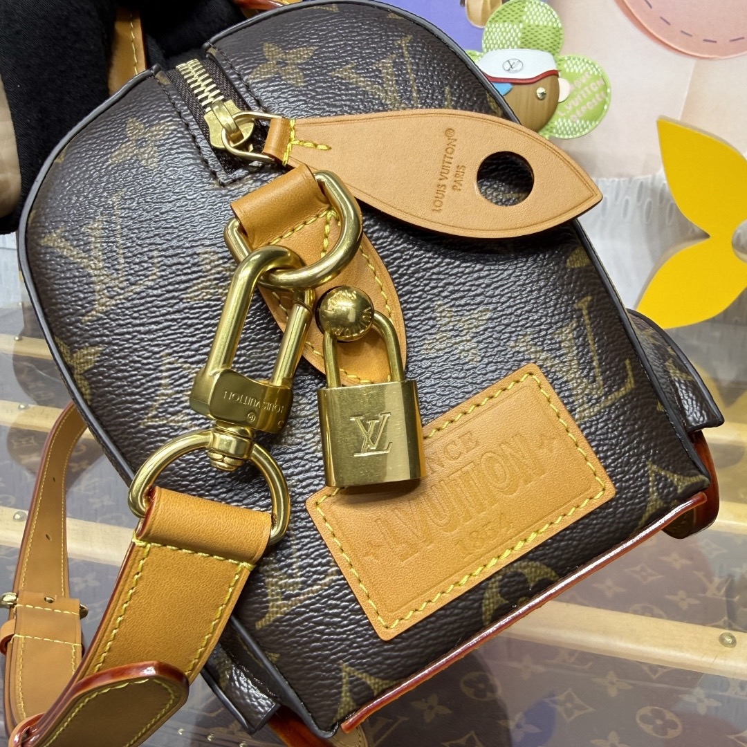 이번 시즌 Pharrell Williams는 영화 《다즐링 횡단》에서 영감을 받아 Monogram 캔버스 소재에 소가죽 테두리와 메탈 액세서리를 더한 Rickshaw 미니백을 출시했습니다.