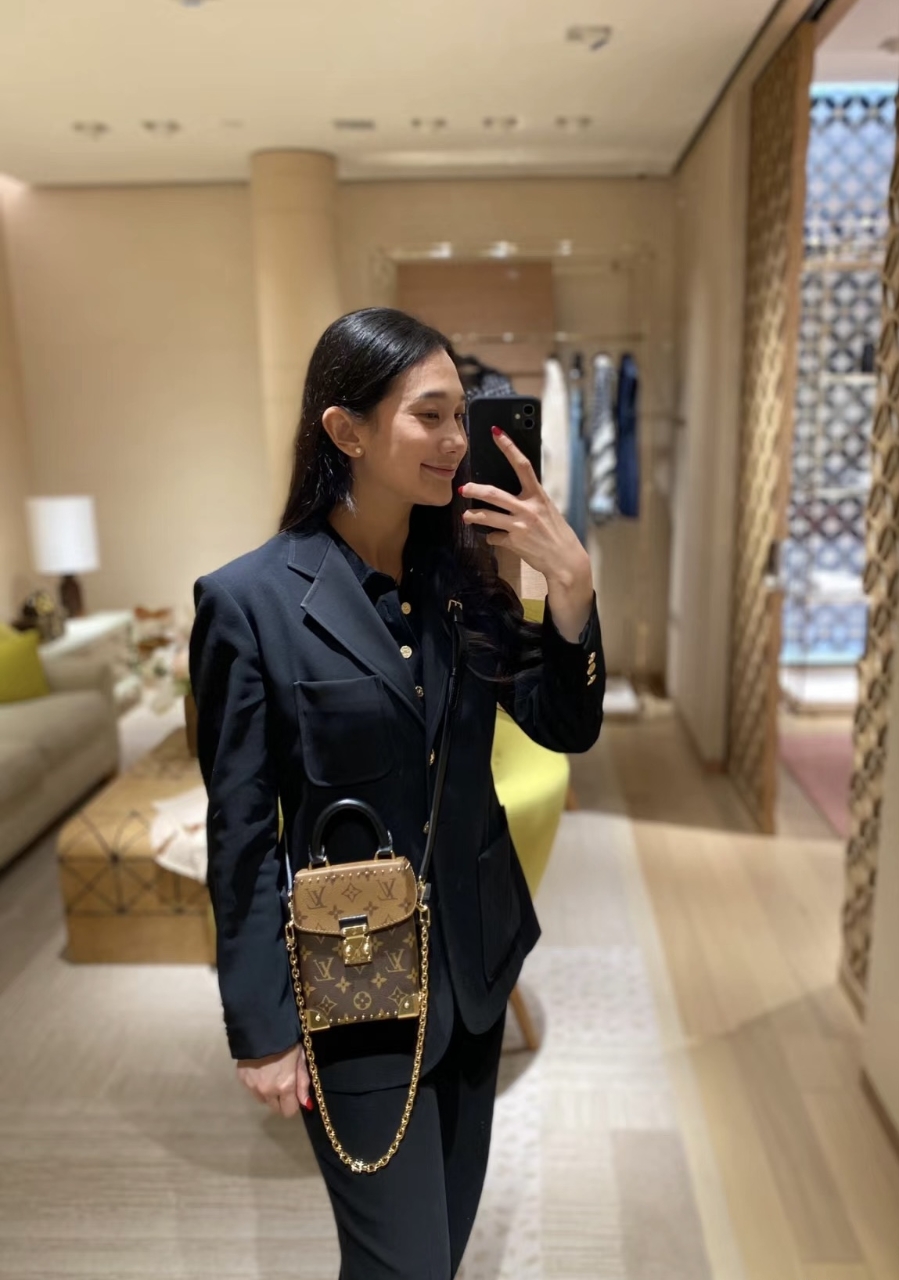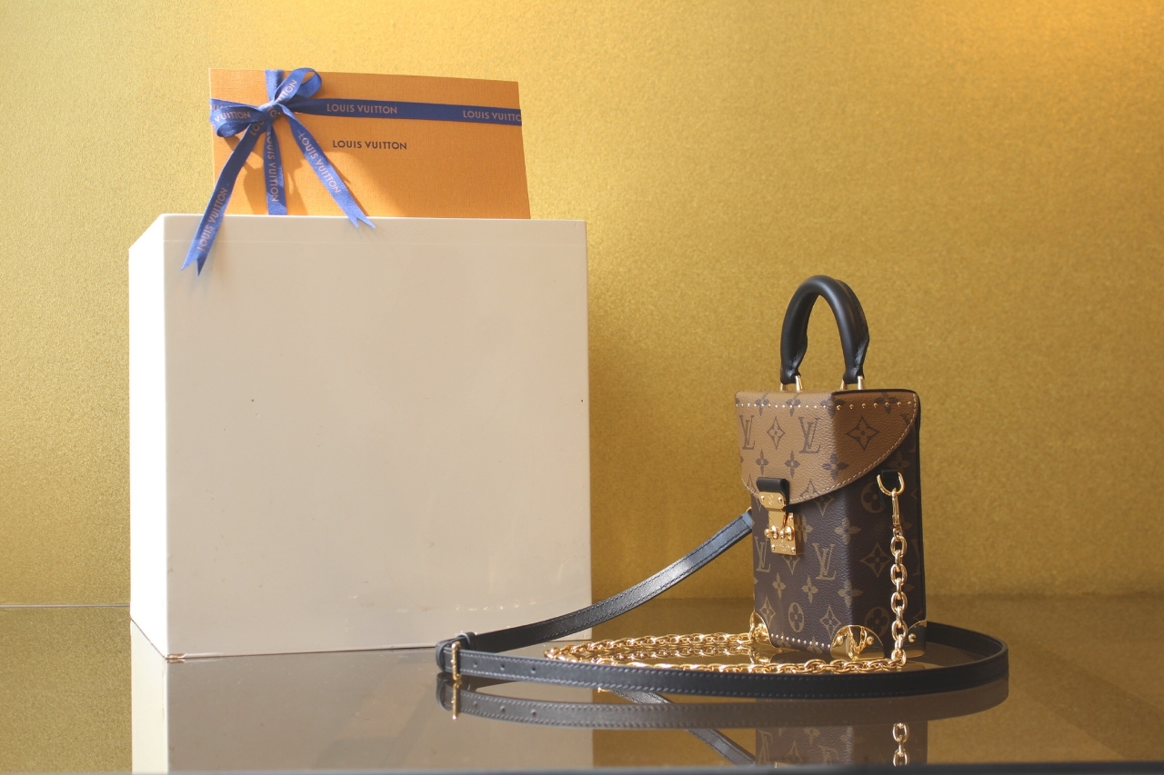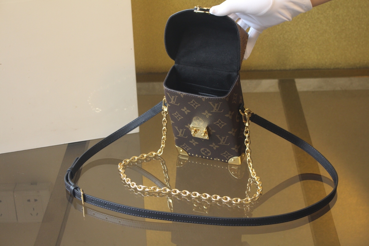 【정품리메이크】✨ M82456 (16×13) 모노그램과 모노그램 리버스 캔버스에 소가죽을 조합한 최신 런웨이 카메라 백 실루엣, 가죽 질감, 박음질, 가장자리 마감, 손잡이의 곡선 1180324