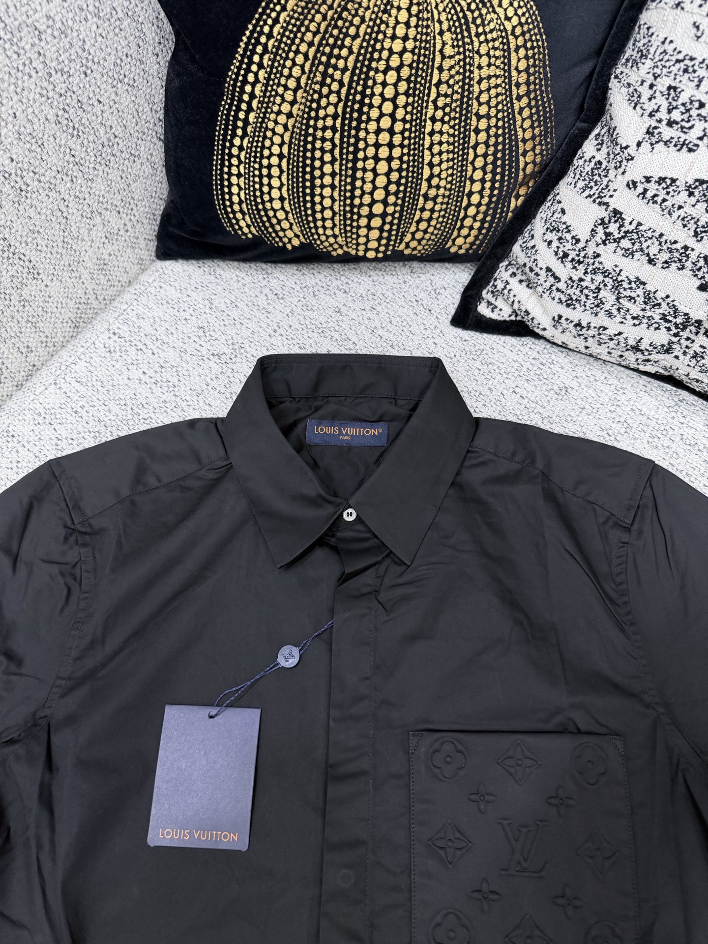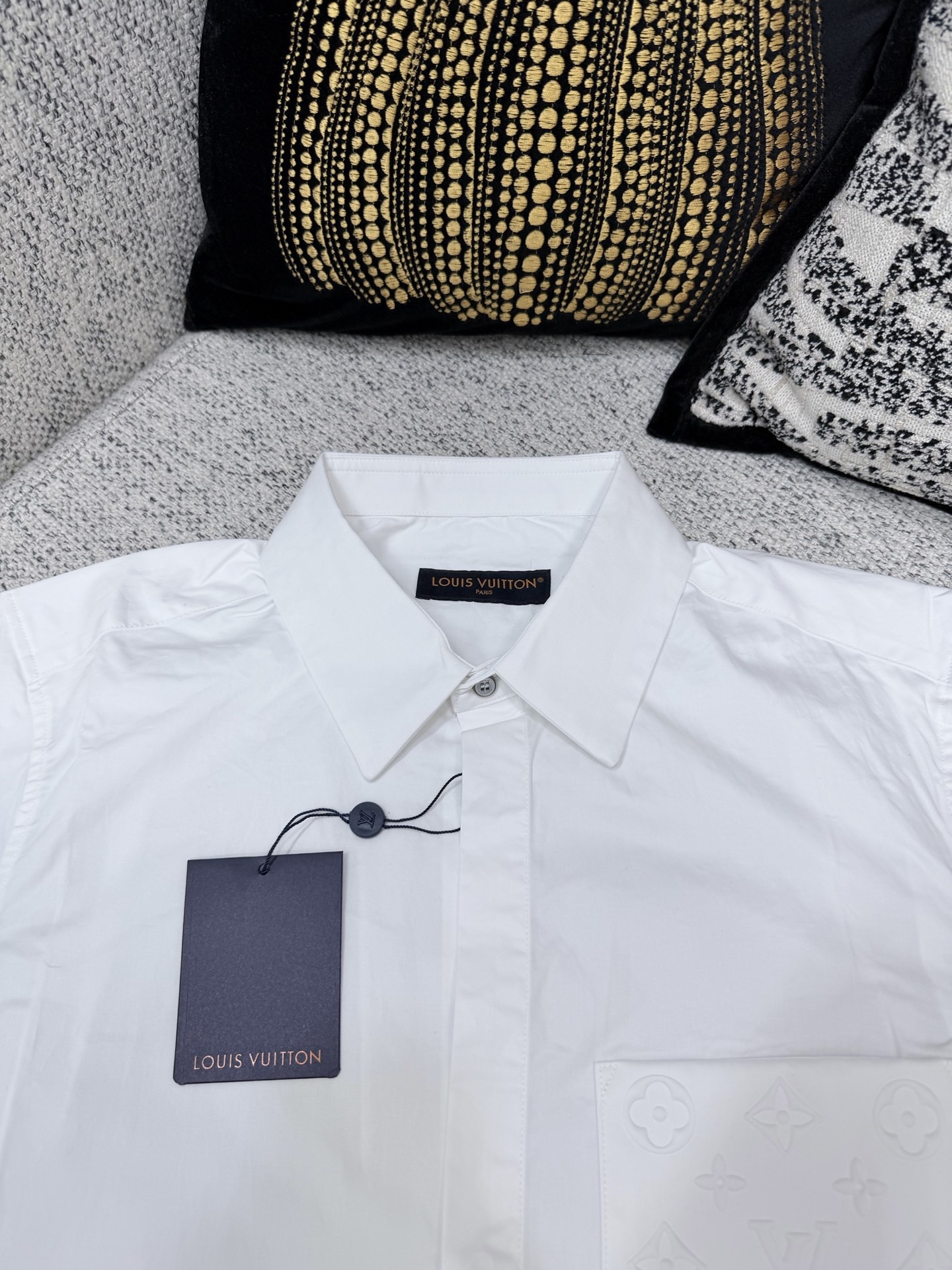 매끄러운 면 포플린으로 되어 있으며 앞단추를 잠그고 깔끔하게 마무리해줍니다. 가슴패치백에 모노그램 패턴을 엠보싱하여 클래식한 아이템으로 엘레강스한 브랜드 분위기를 더해주며 캐주얼과 포멀한 분위기를 연출하실 수 있습니다.