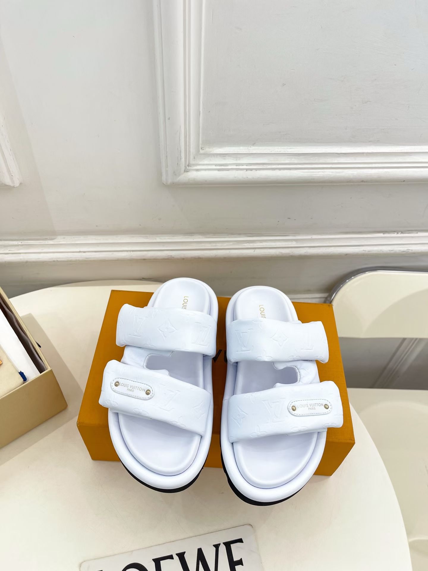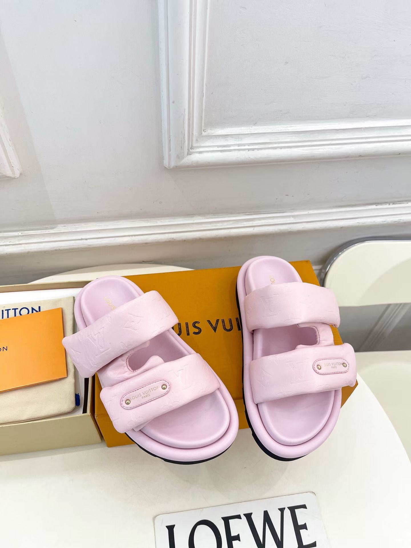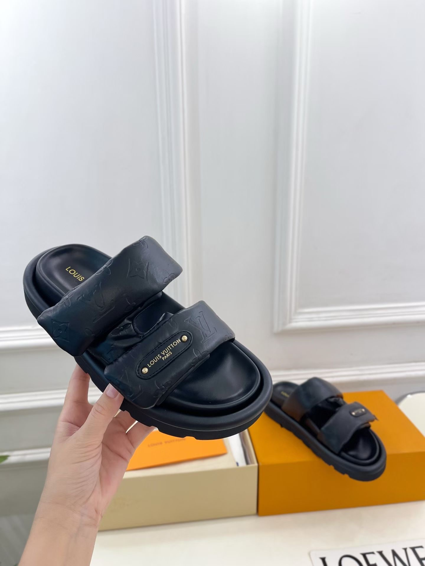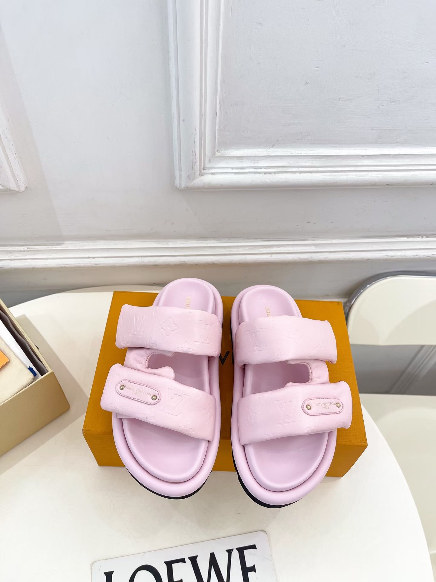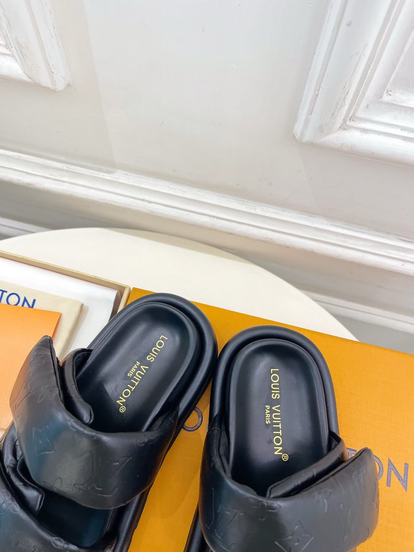 패딩 처리한 모노그램 소재의 조절형 스트랩 두 개로 새롭 게 선보이는 풀 필로우 컴포트 물 .