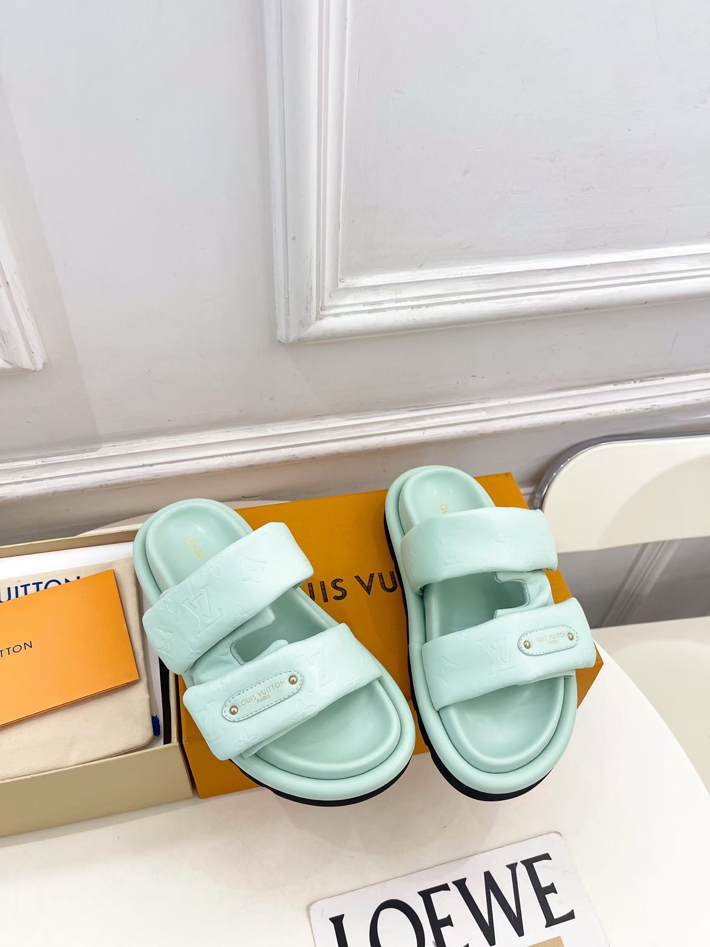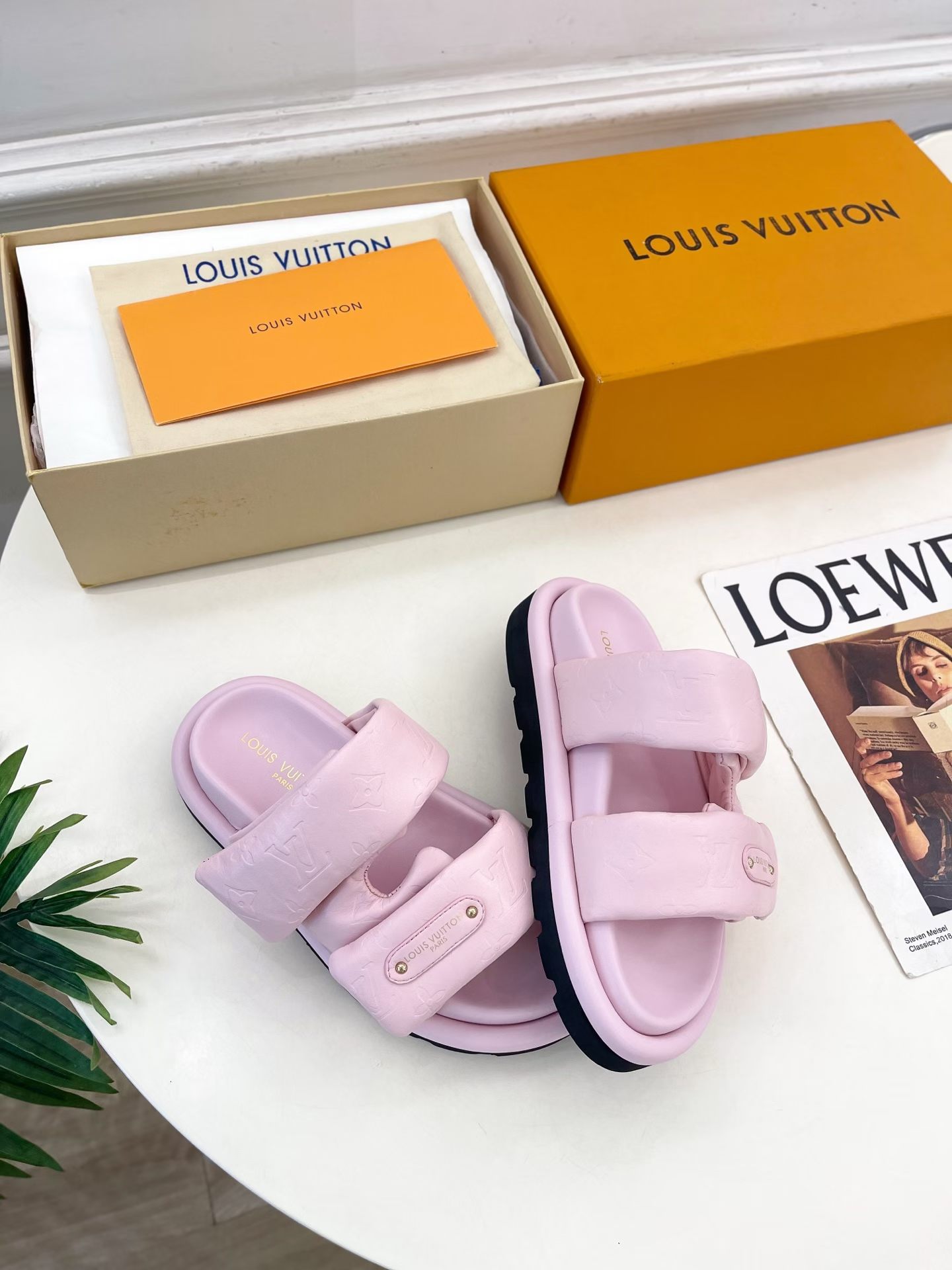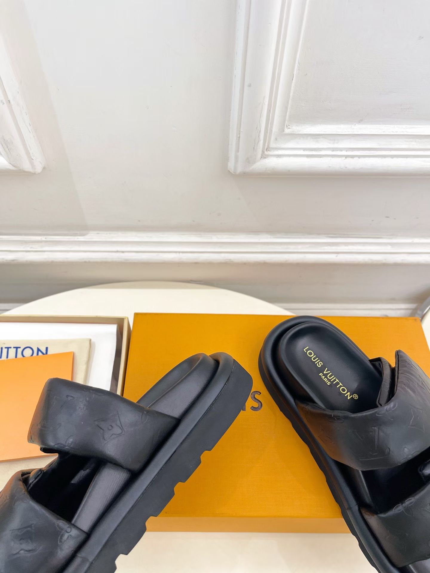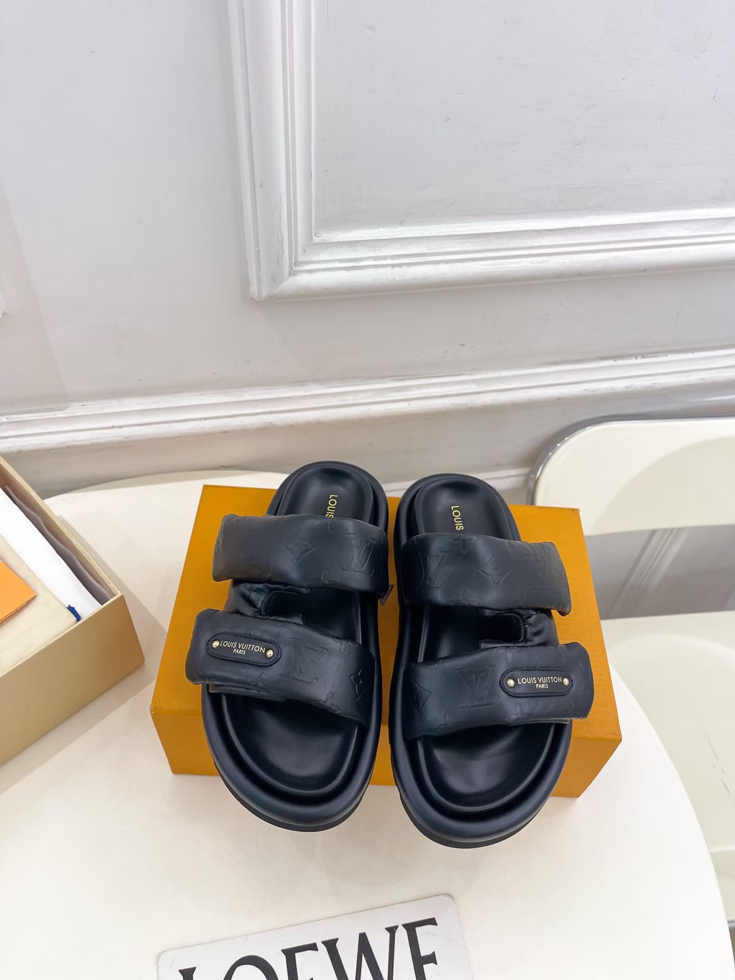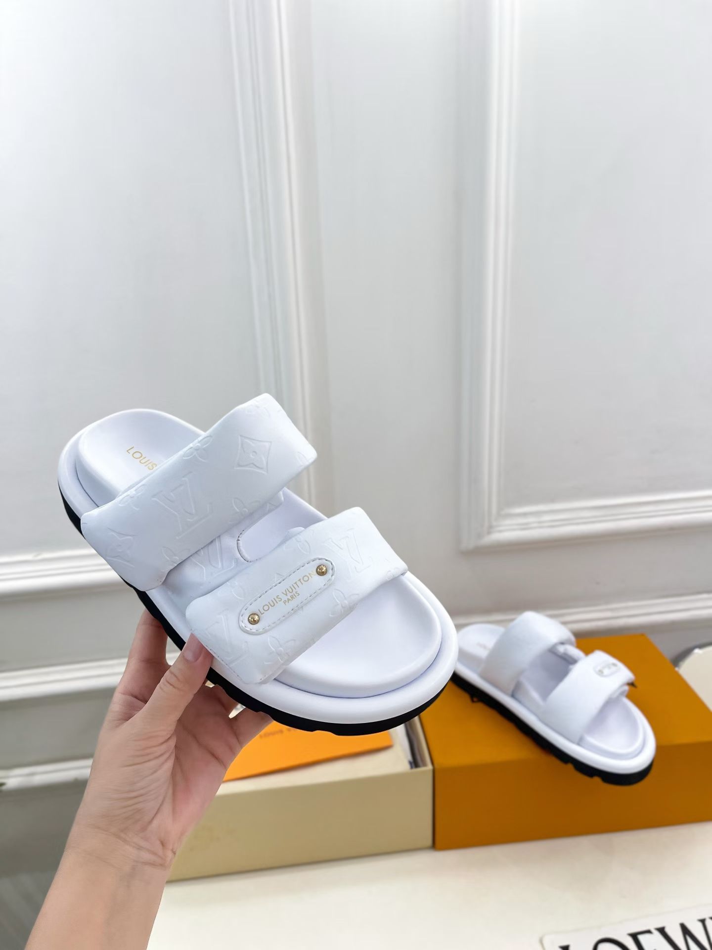 패딩 처리한 모노그램 소재의 조절형 스트랩 두 개로 새롭 게 선보이는 풀 필로우 컴포트 물 .