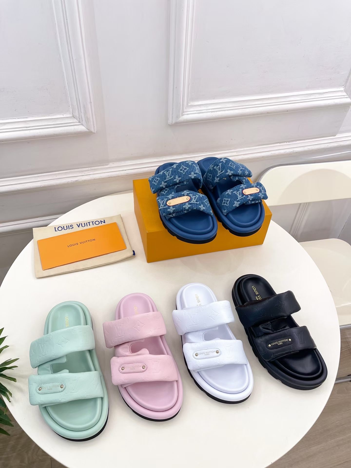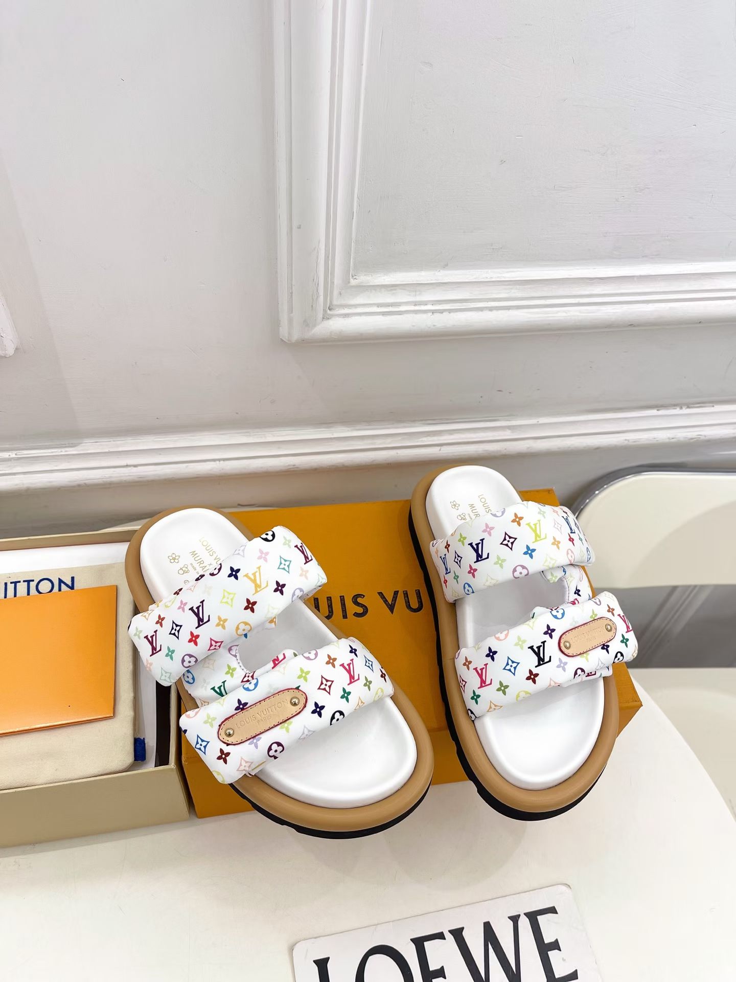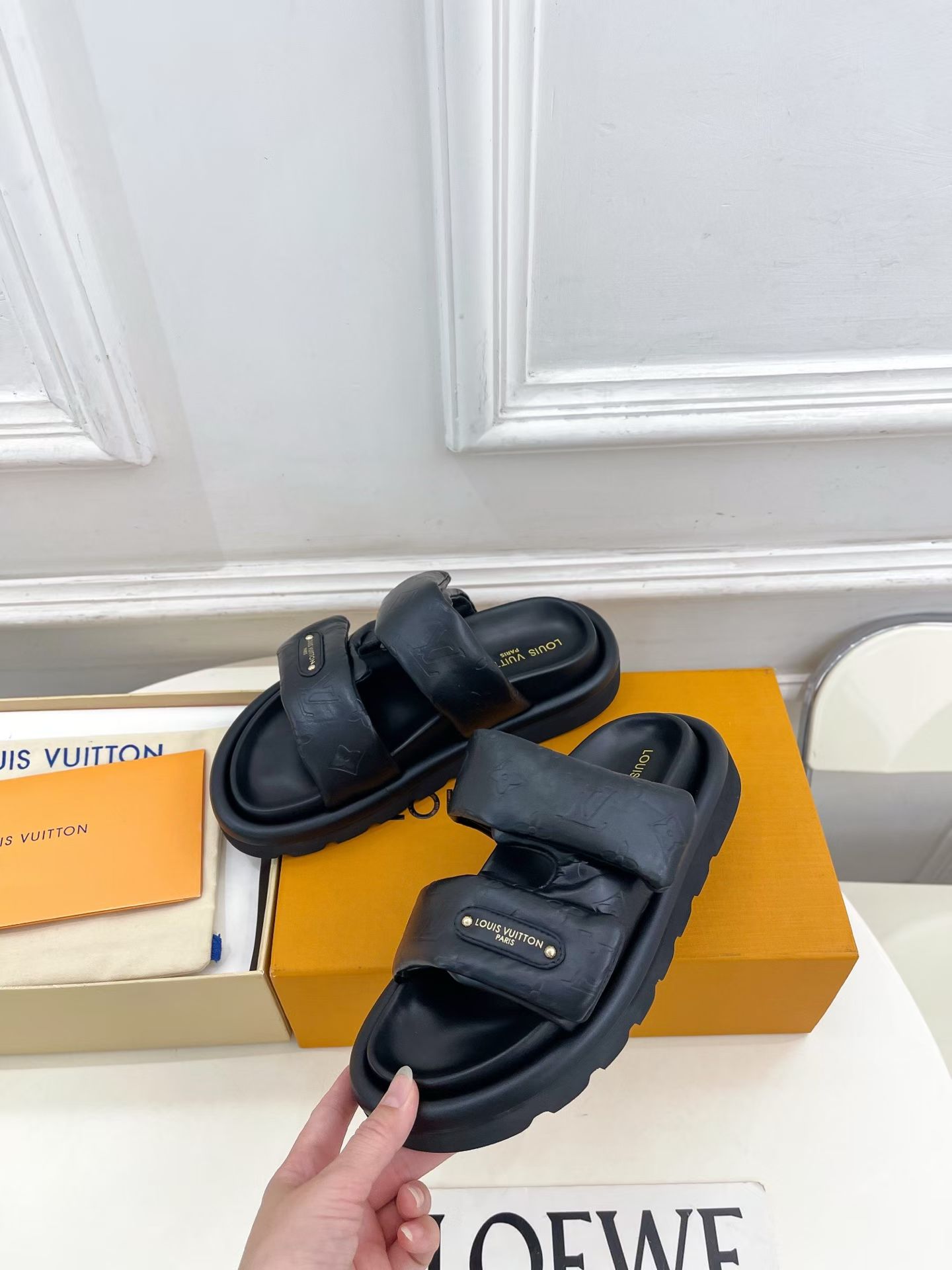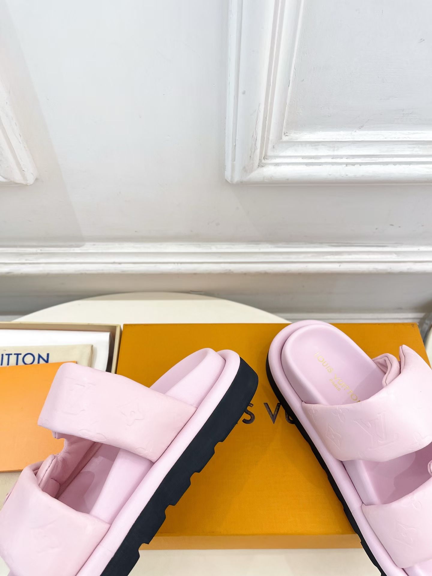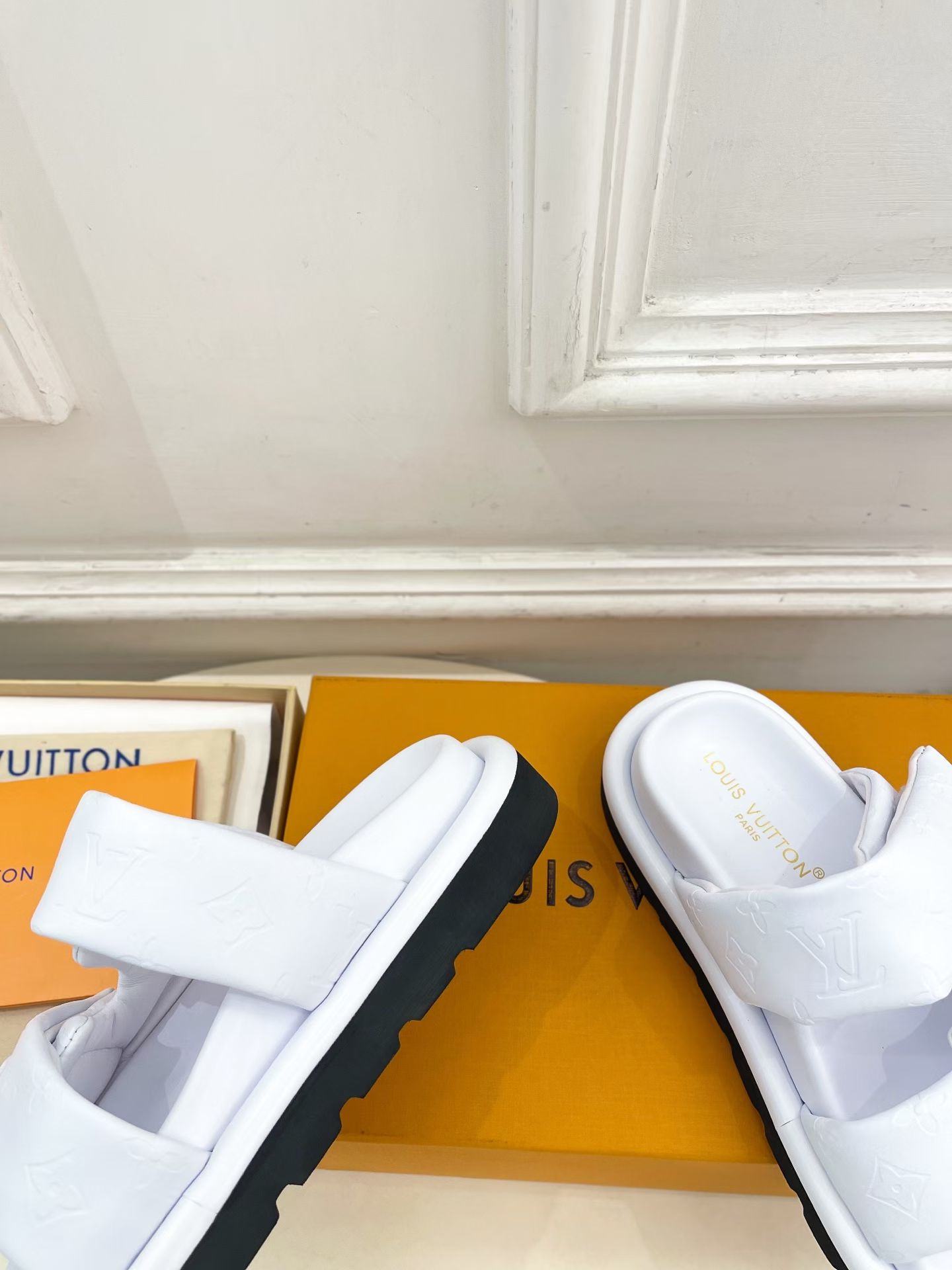 패딩 처리한 모노그램 소재의 조절형 스트랩 두 개로 새롭 게 선보이는 풀 필로우 컴포트 물 .