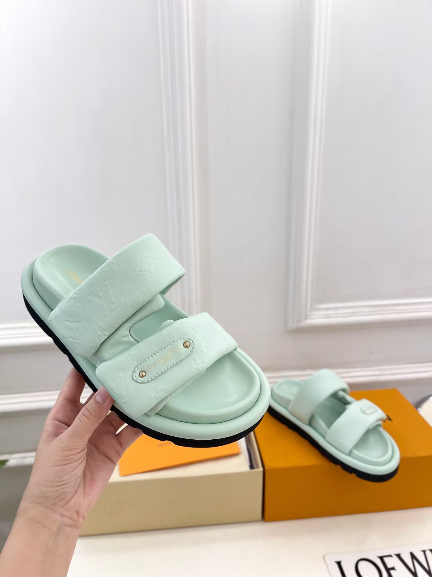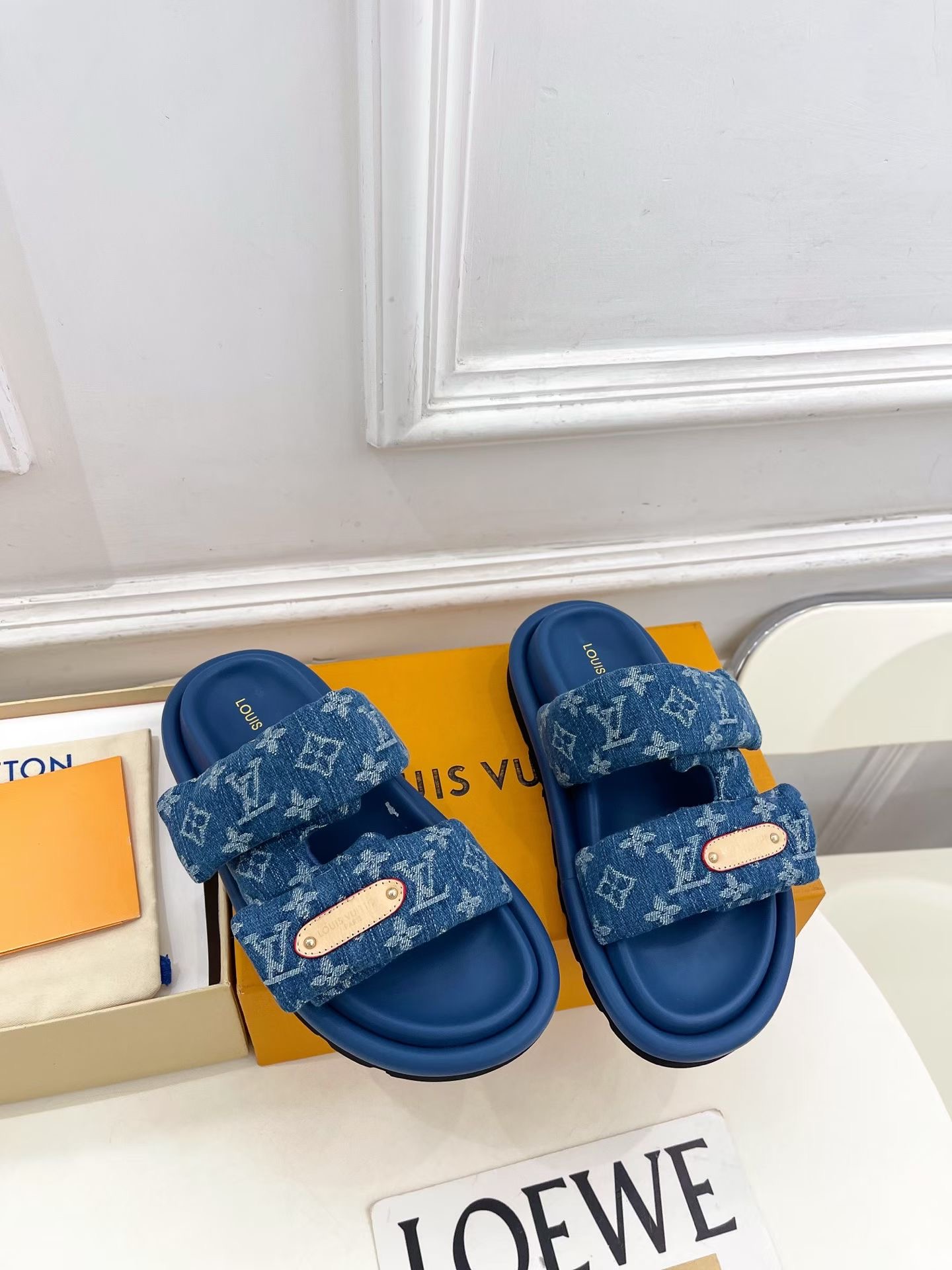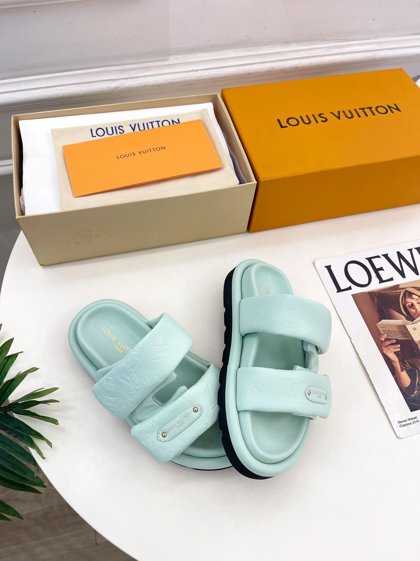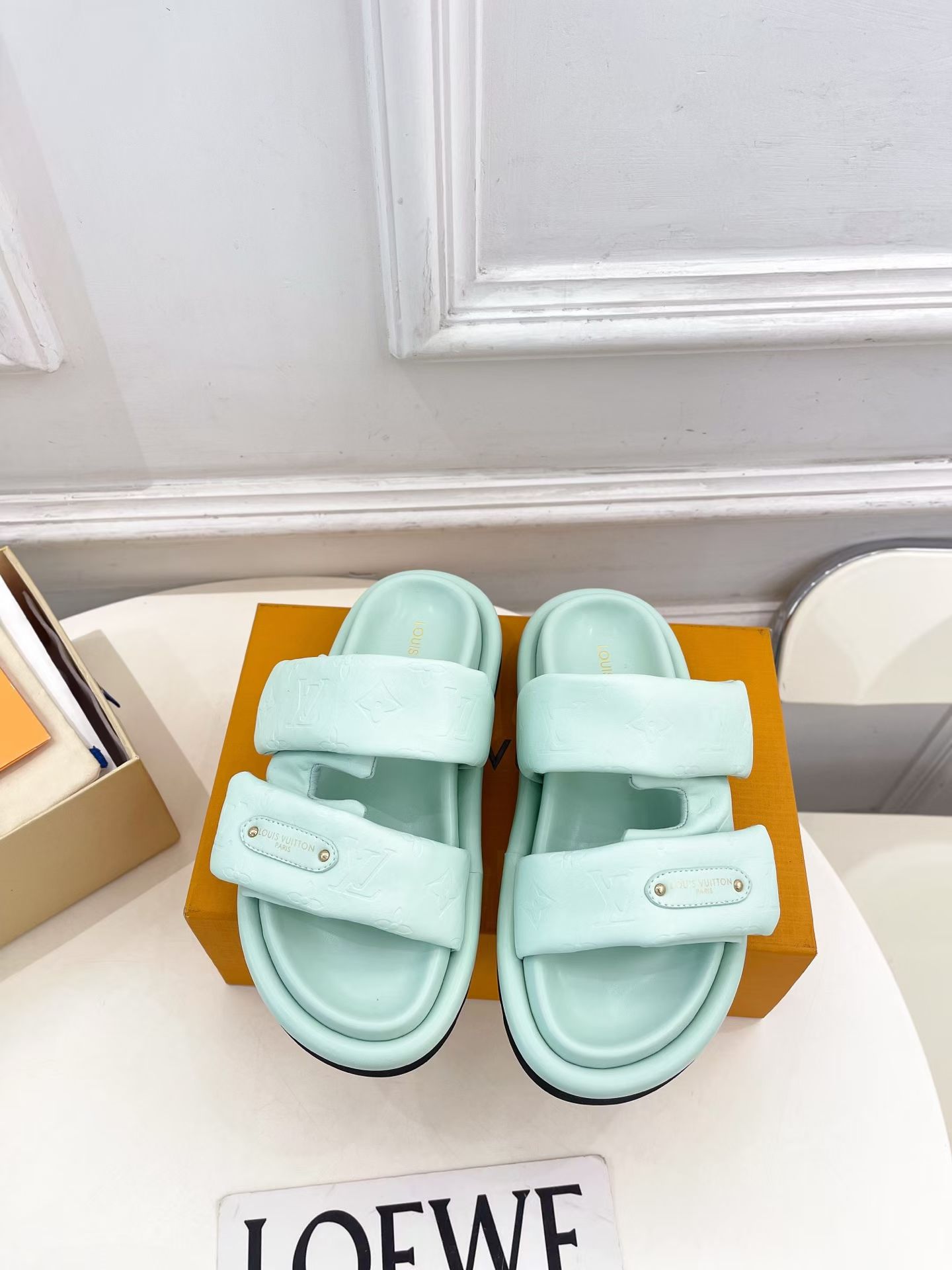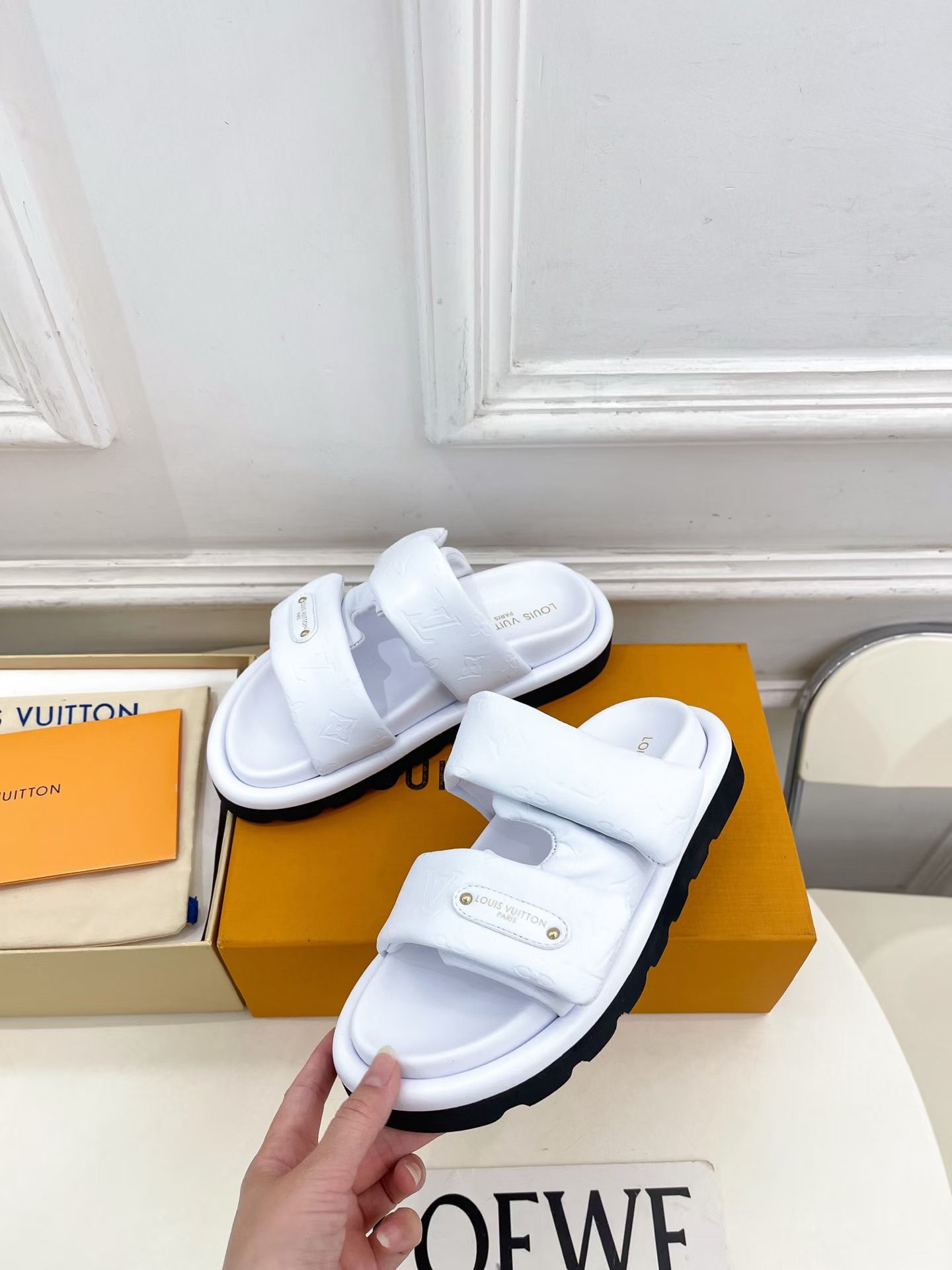 패딩 처리한 모노그램 소재의 조절형 스트랩 두 개로 새롭 게 선보이는 풀 필로우 컴포트 물 .