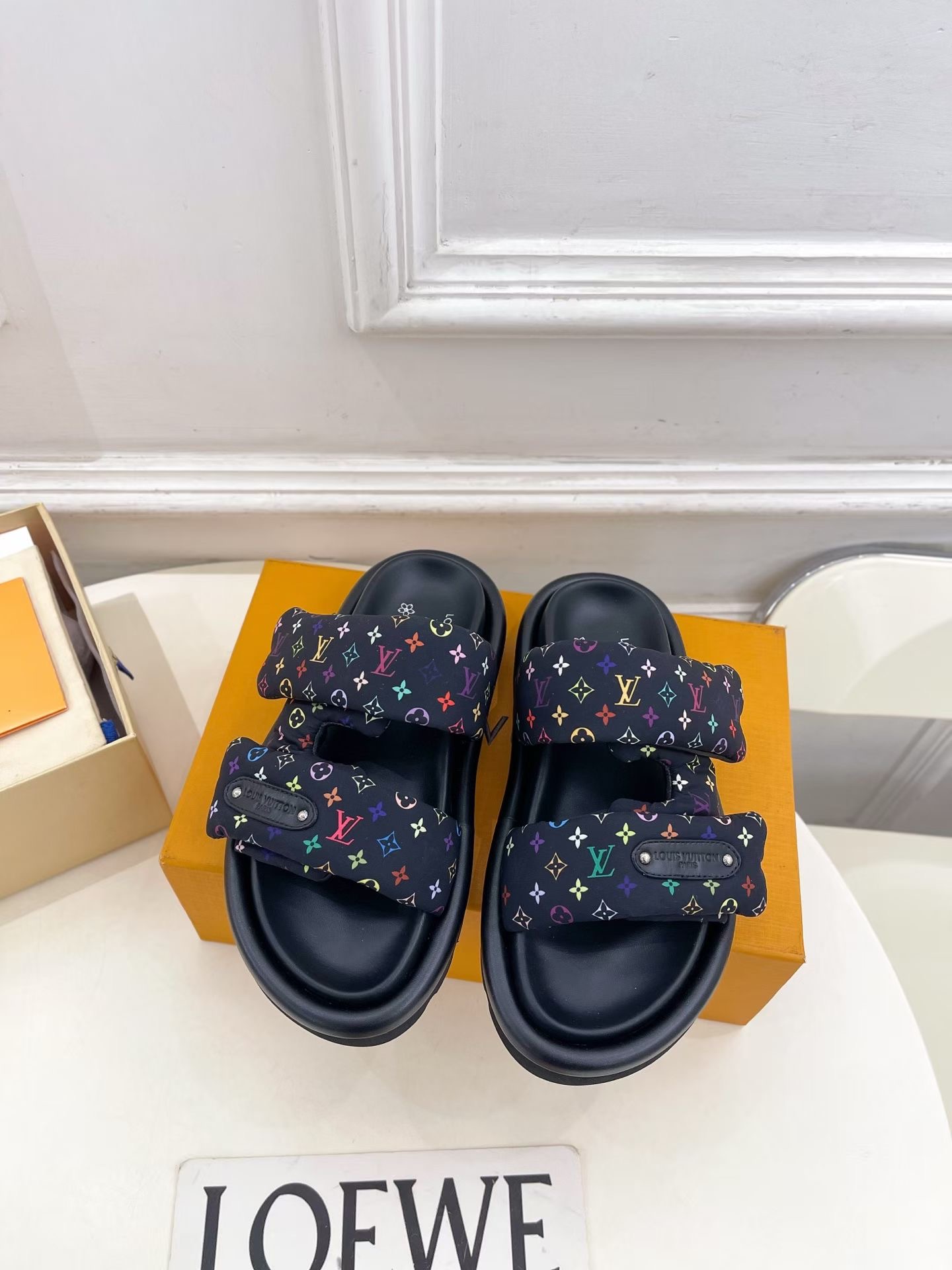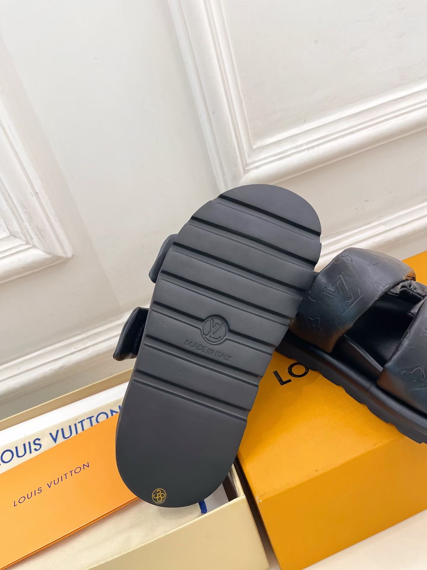 마이크로 겉창 , 모노그램 나일론, 조절형 벨크로 스트랩 ,시그니처 라벨, 가죽 소재의 안감 , 인체공학적 안창.