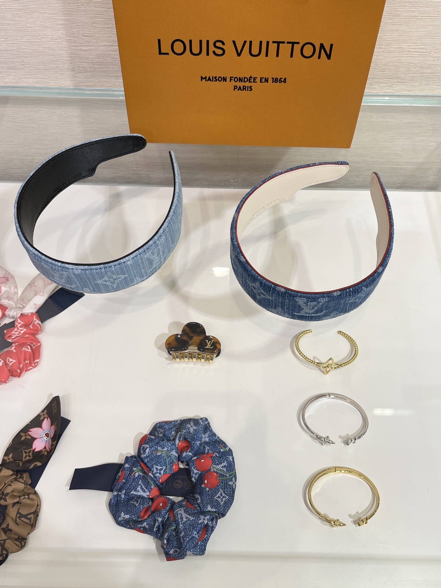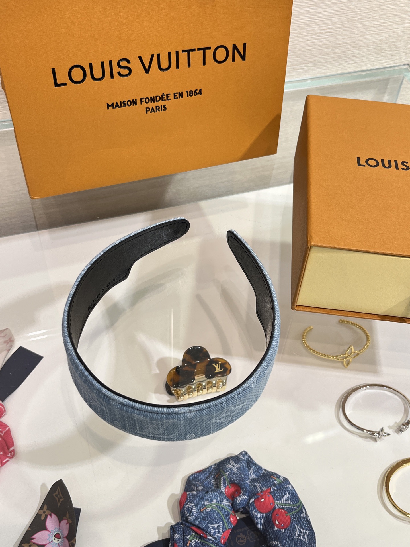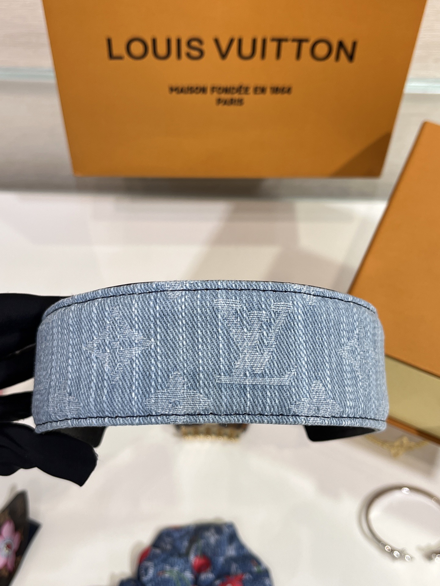 헤어스타일을 완벽하게 고정해 주는 스타일리시하면서도 실용적인 데님 헤드밴드.