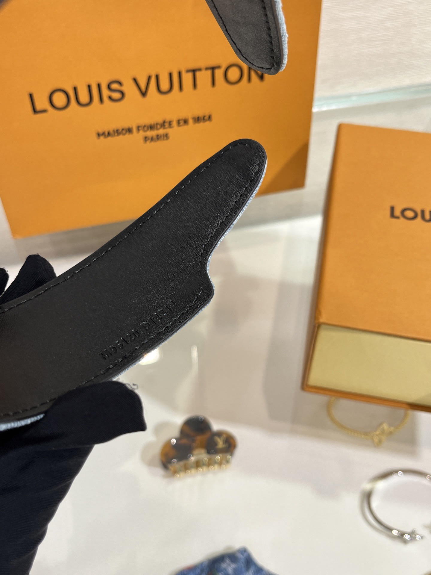 하우스의 헤리티지 모노그램 패턴을 입힌 고급스러운 면 소재에 독특한 빈티지 데님 효과로 마감한 겉면.