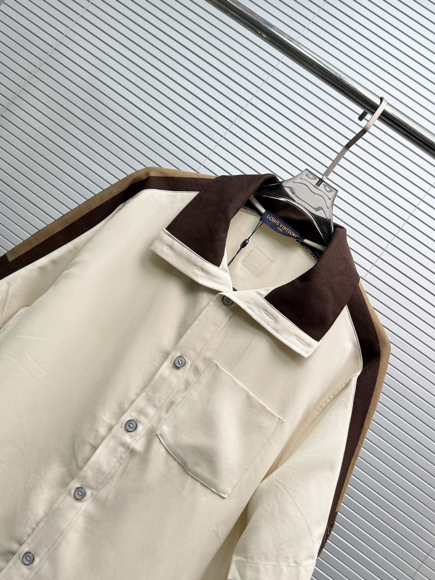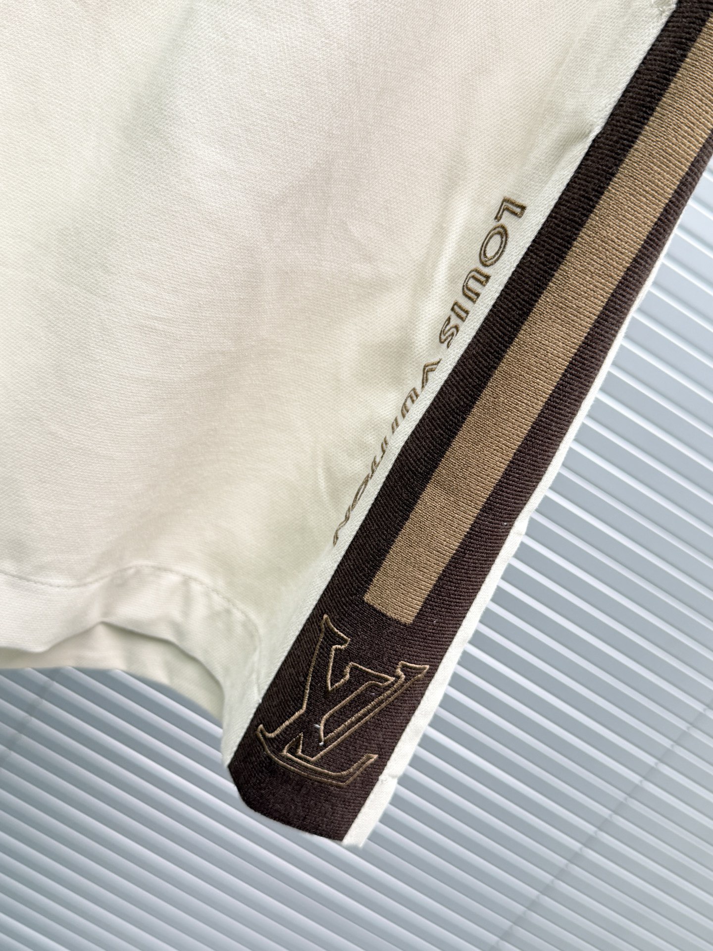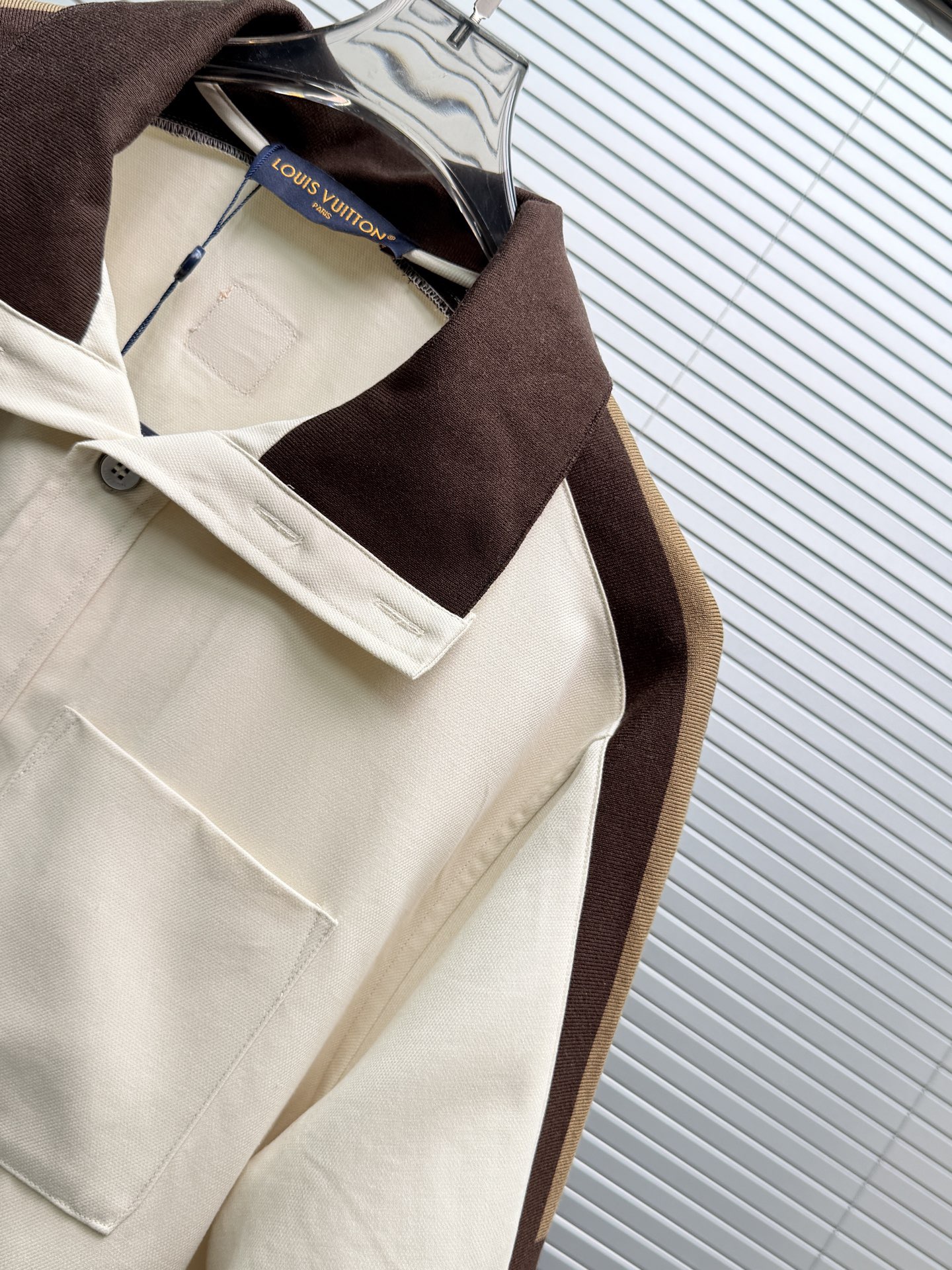 LV*2026SS 반팔티셔츠+반바지 프리미엄 매장판 다크 브라운 골지 장식이 반팔 화이트 피케에 도형적인 포인트를 주었습니다. 시그니처 자수 스트랩이 어깨와 소매에 포인트를 주었으며 브라운 컬러는 터틀넥처럼 여밈이 가능하며 오픈하여 착용할 수 있습니다. 왼쪽 가슴에 새겨진 자수 루이비통 글씨로 스포티한 분위기를 더했습니다. 원단의 자유로움이 스타일링 하기 좋습니다.