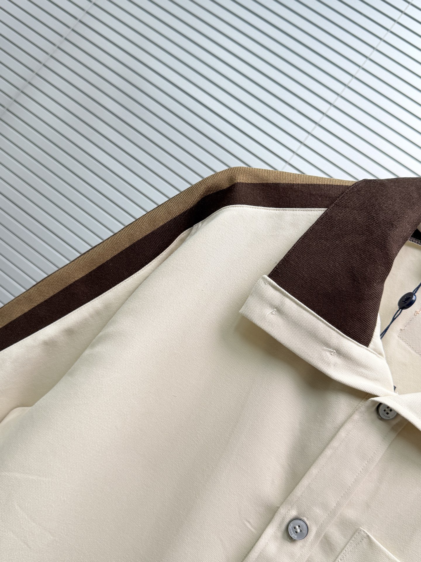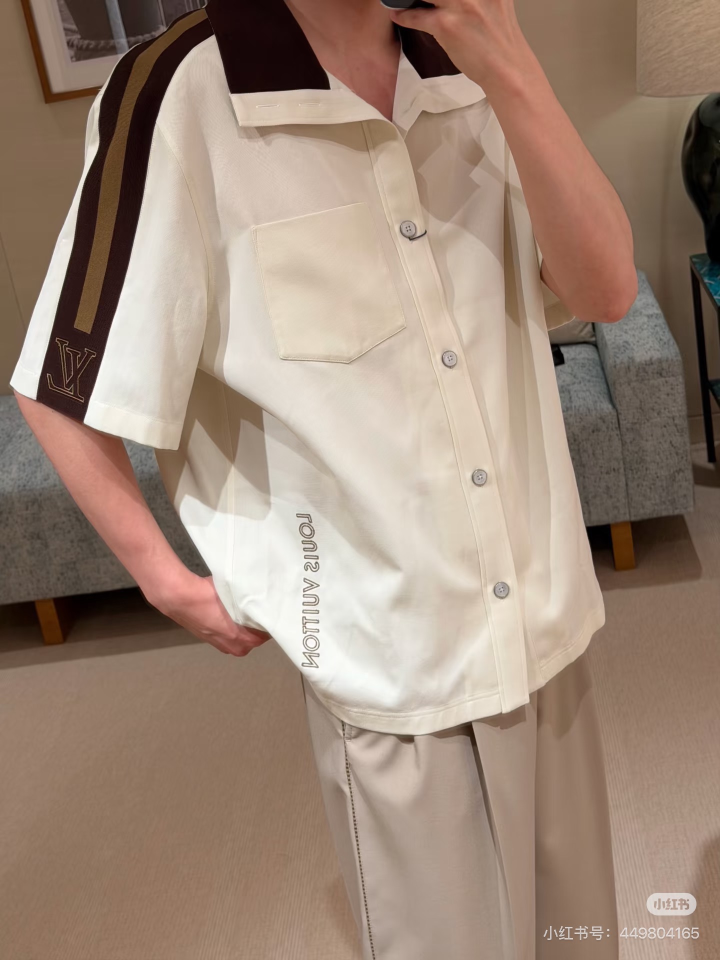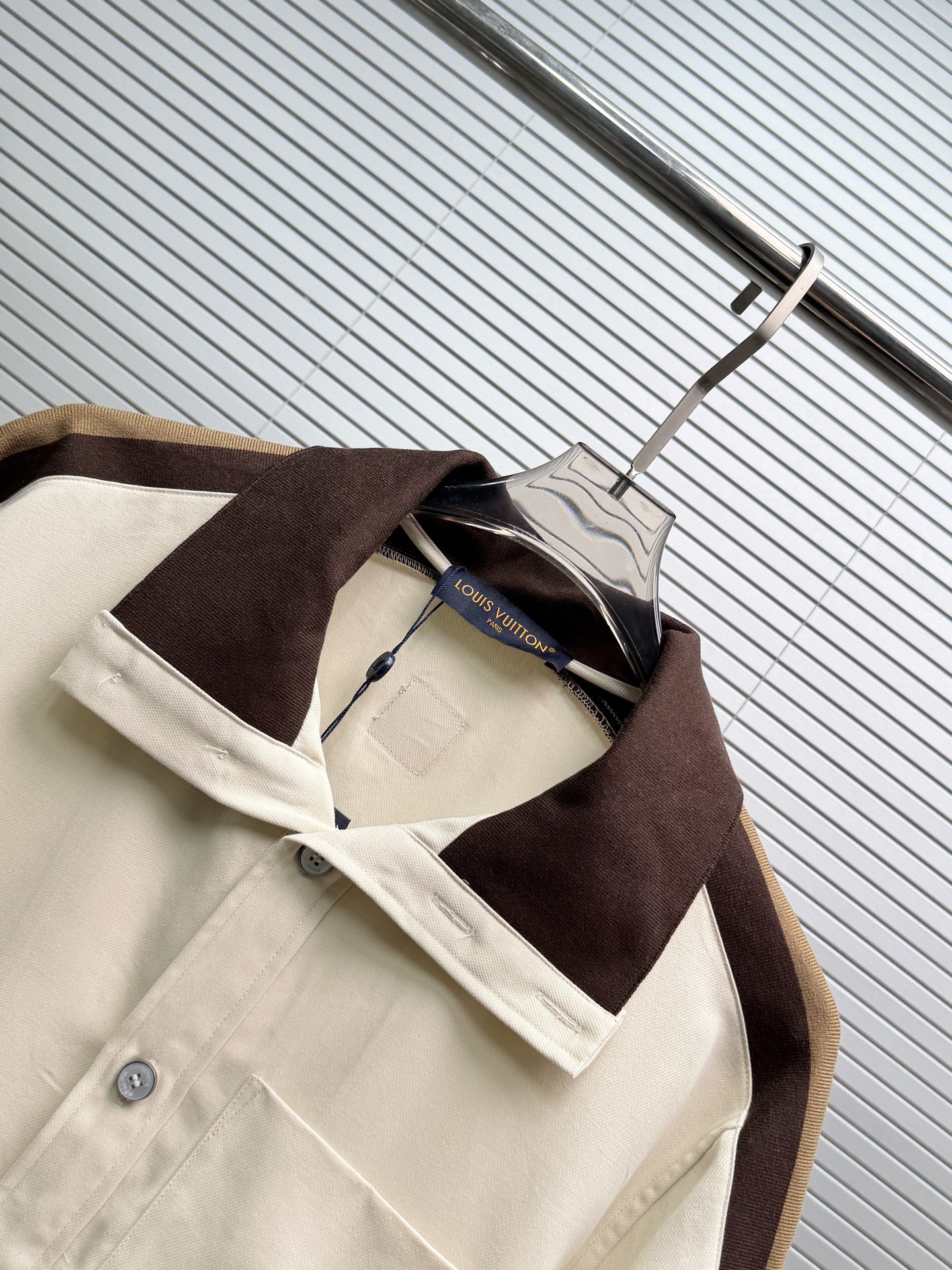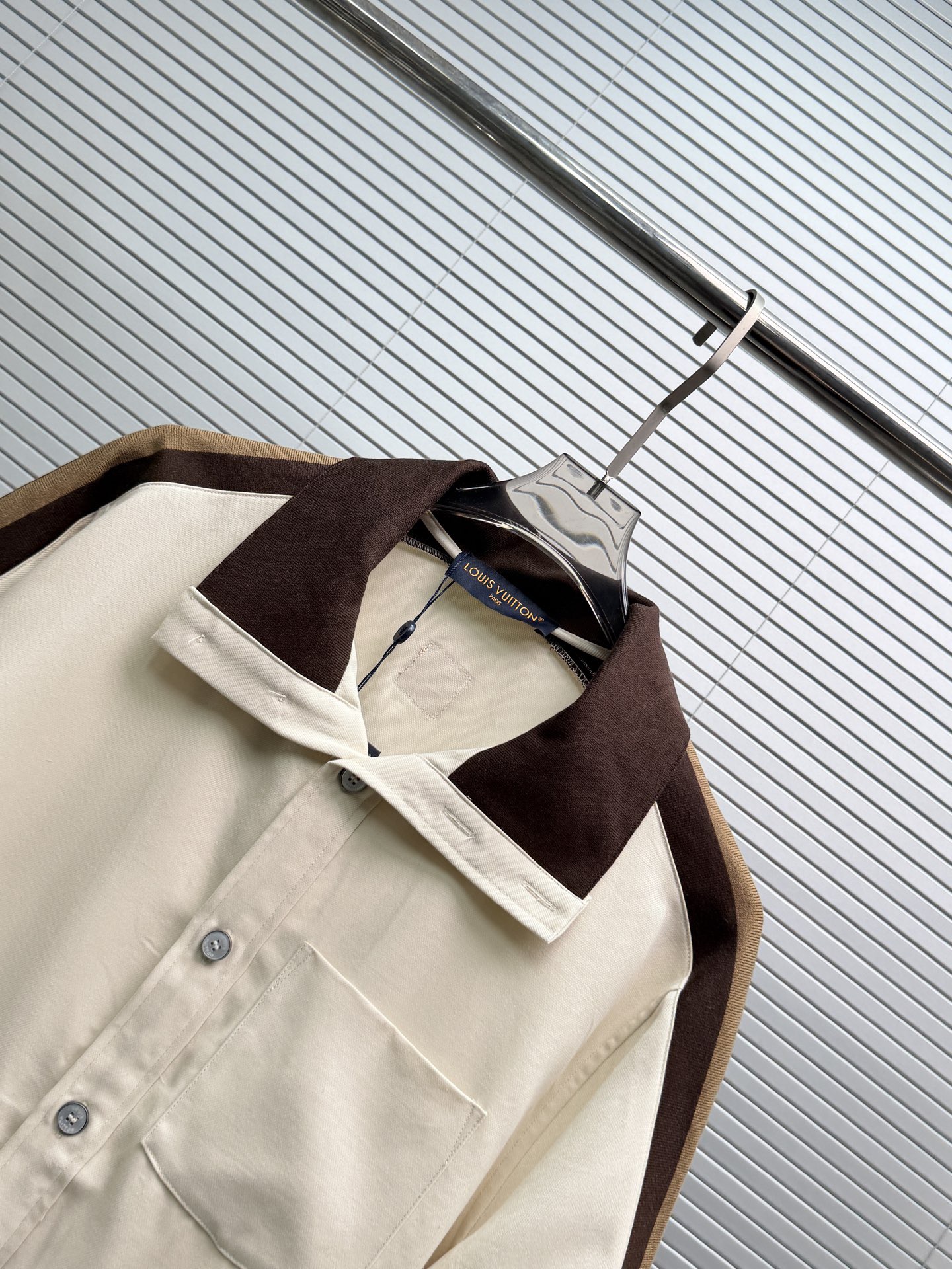 LV*2026SS 반팔티셔츠+반바지 프리미엄 매장판 다크 브라운 골지 장식이 반팔 화이트 피케에 도형적인 포인트를 주었습니다. 시그니처 자수 스트랩이 어깨와 소매에 포인트를 주었으며 브라운 컬러는 터틀넥처럼 여밈이 가능하며 오픈하여 착용할 수 있습니다. 왼쪽 가슴에 새겨진 자수 루이비통 글씨로 스포티한 분위기를 더했습니다. 원단의 자유로움이 스타일링 하기 좋습니다.