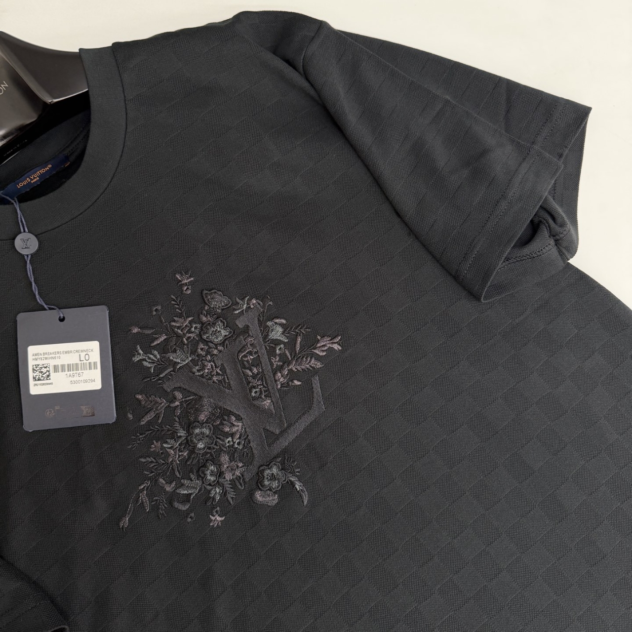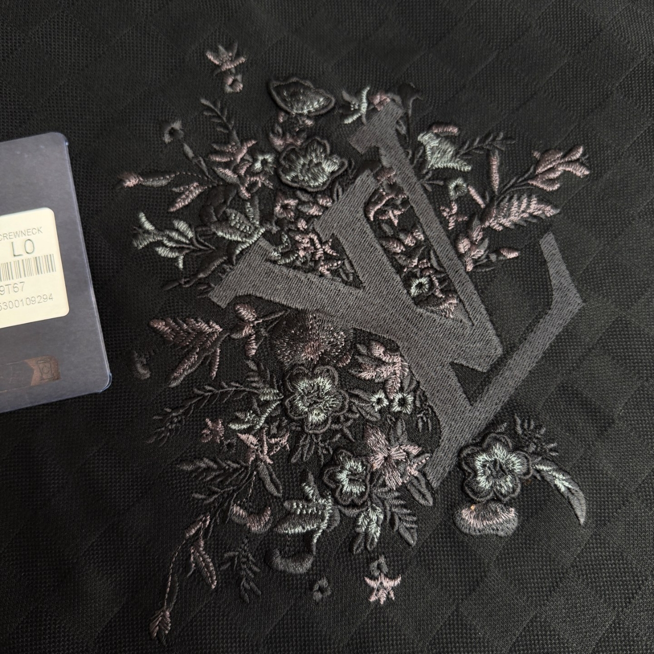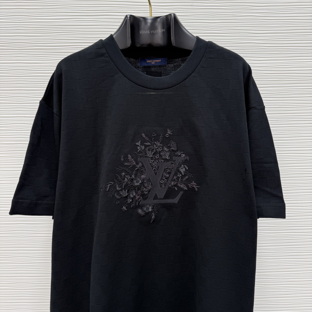압축 자수와 입체 효과 스티치를 결합하여 꽃 무늬가 부조와 같은 입체적인 층감을 보여줍니다.