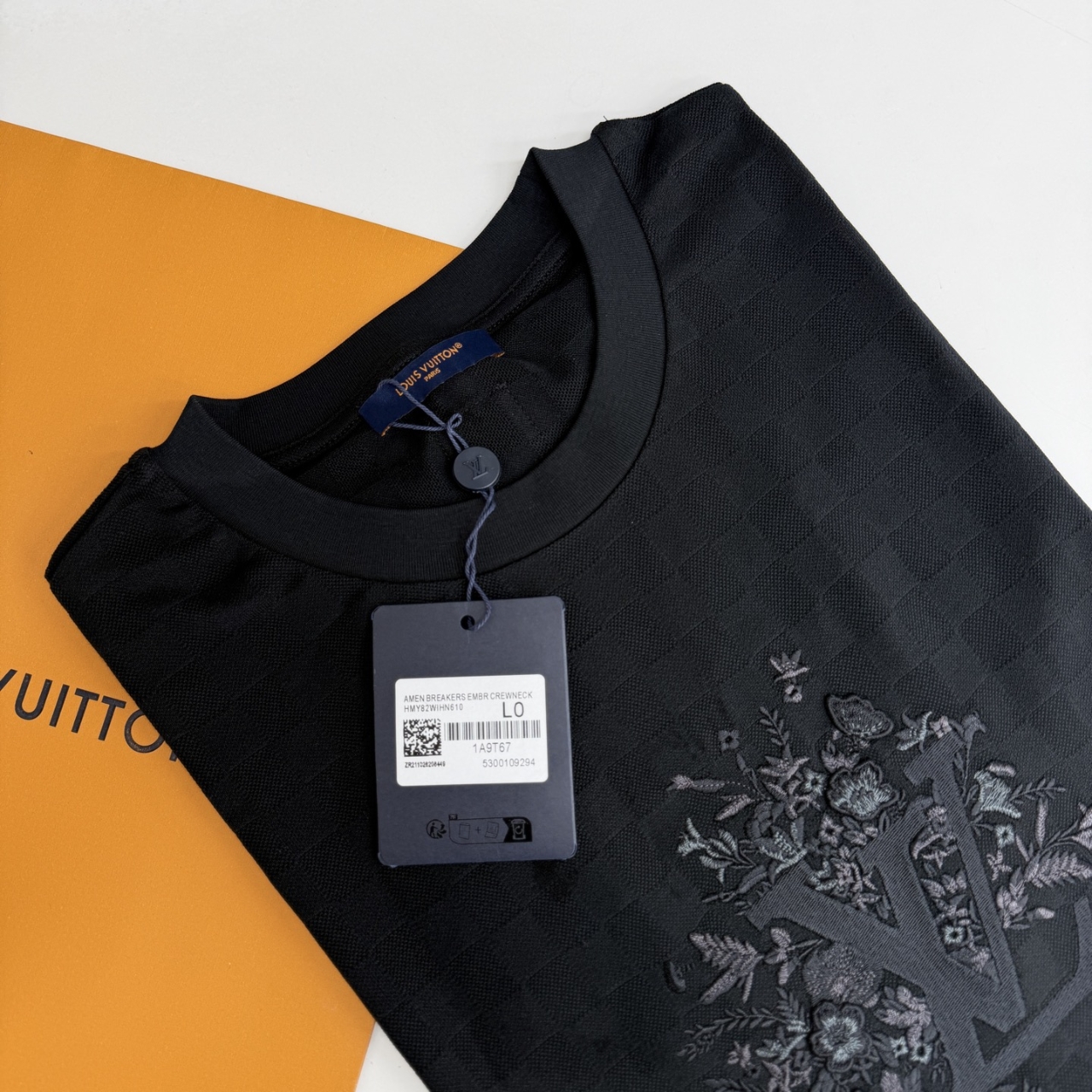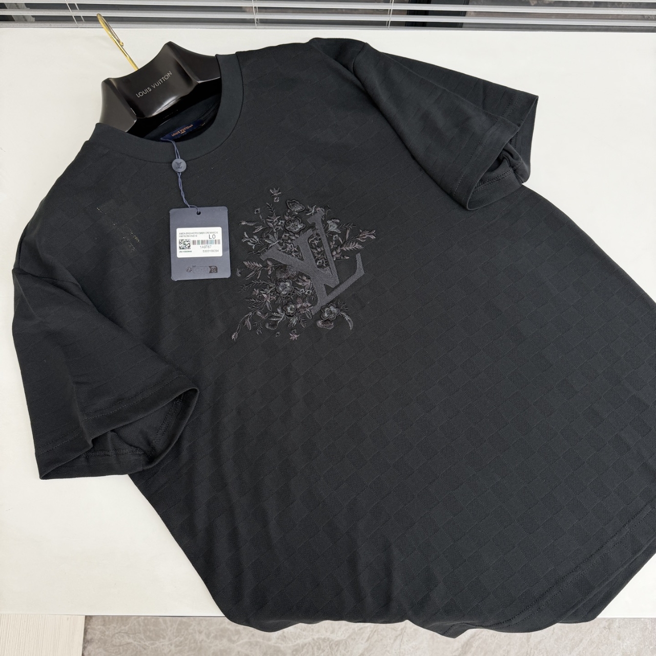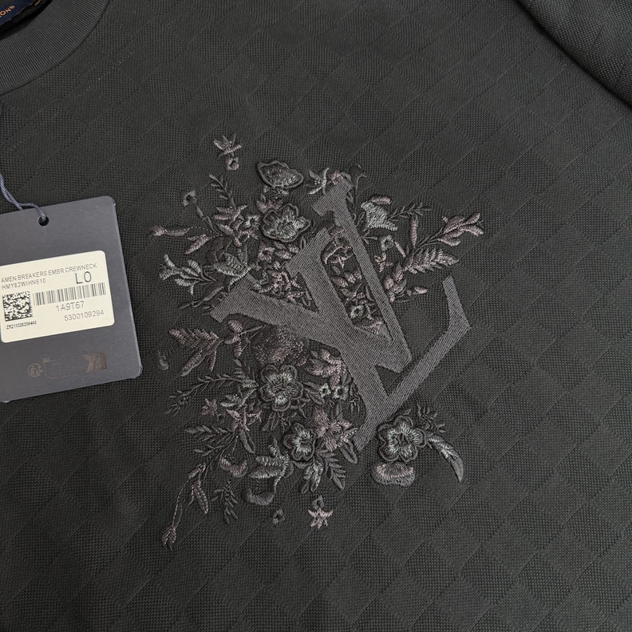 압축 자수와 입체 효과 스티치를 결합하여 꽃 무늬가 부조와 같은 입체적인 층감을 보여줍니다.