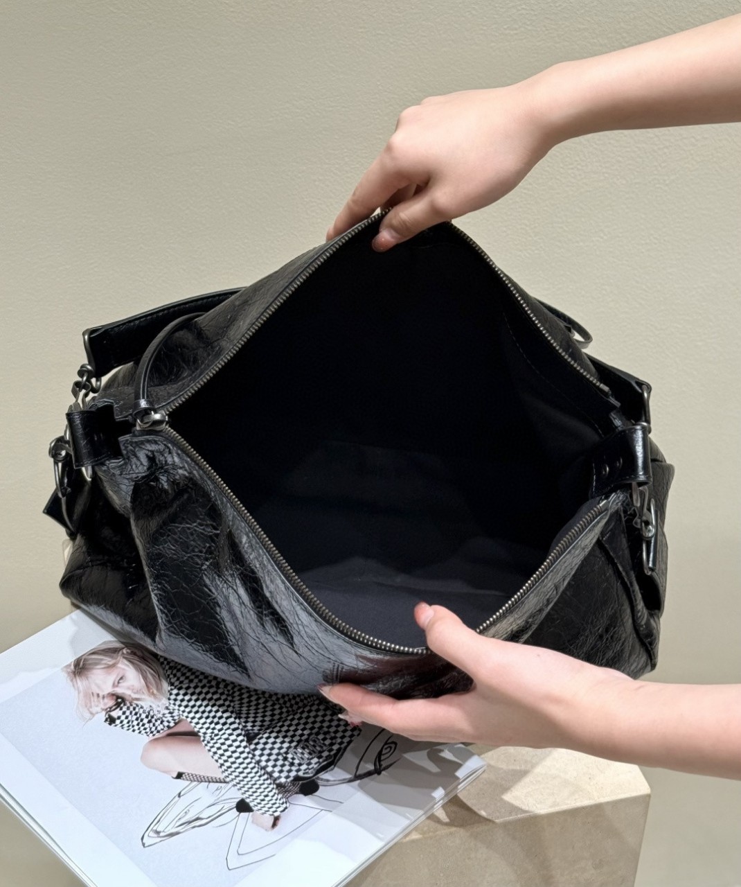 수입 양가죽 느낌 물씬 자연스럽게 처지는 쉐입 디테일도 듬뿍 들어가 세련미가 넘칩니다.