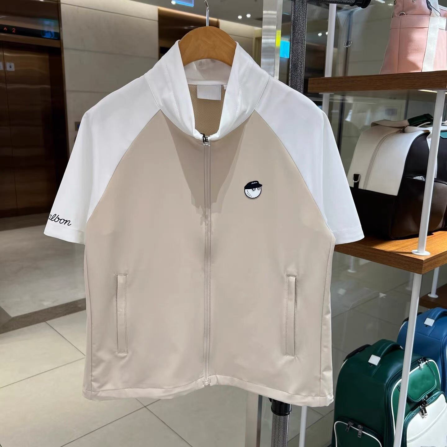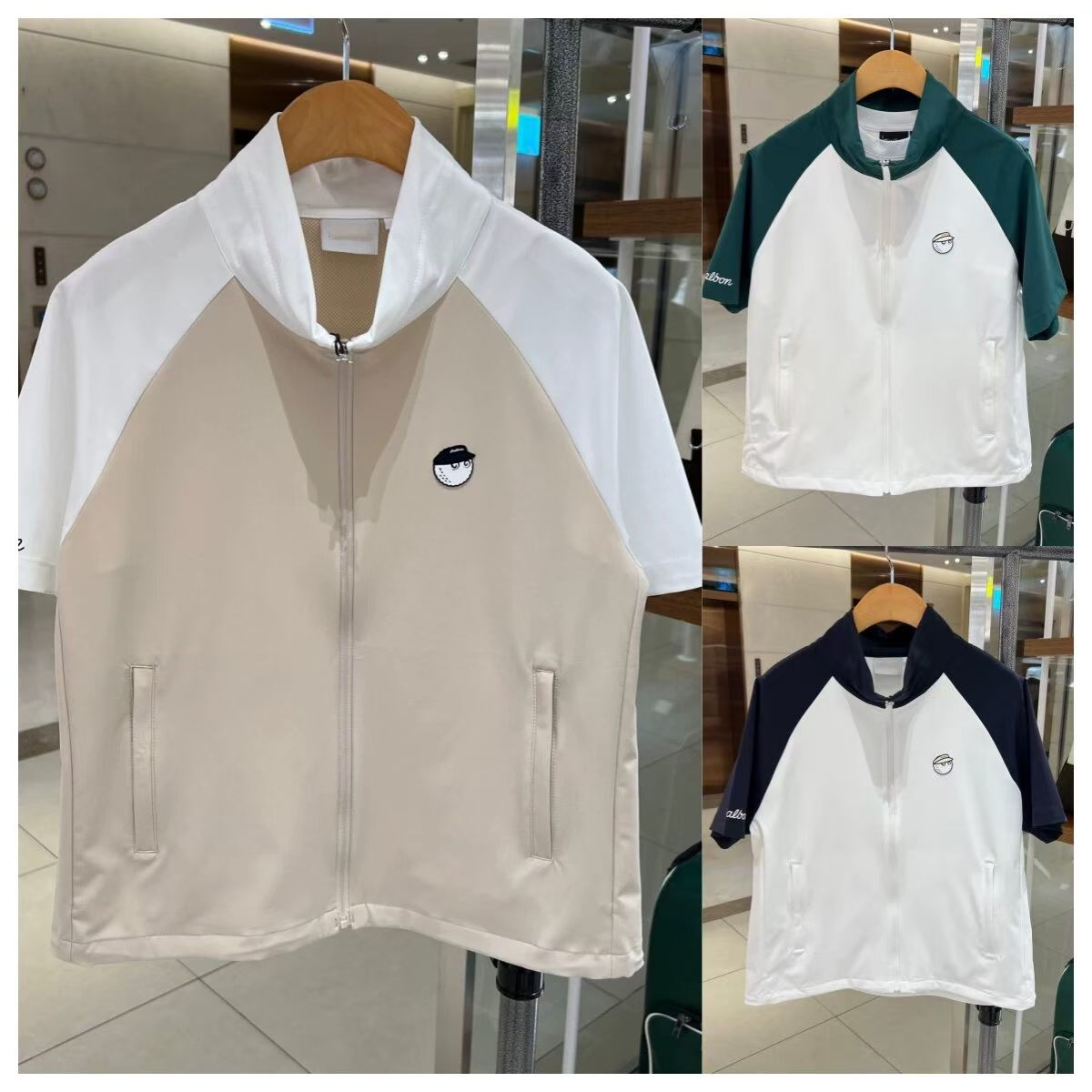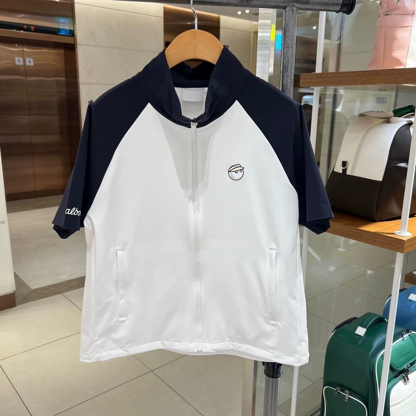 ⛳⛳신형 ⛳⛳💯 M/B👚👚2026년 여름 여성용 반팔 재킷, 레이디 사이즈 : S, M, L 색상: 화이트 옐로우 카키 스포티한 방풍 및 자외선 차단 원단에 풀 지퍼 디자인!