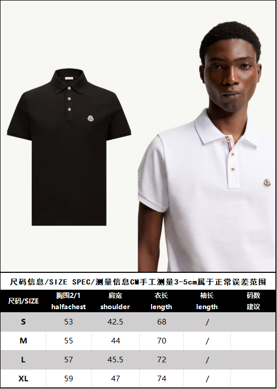 몽클레어 남성 로고 패치 면 폴로 셔츠 사이즈: S, M, L, XL 색상 : 블랙, 화이트 295118rare