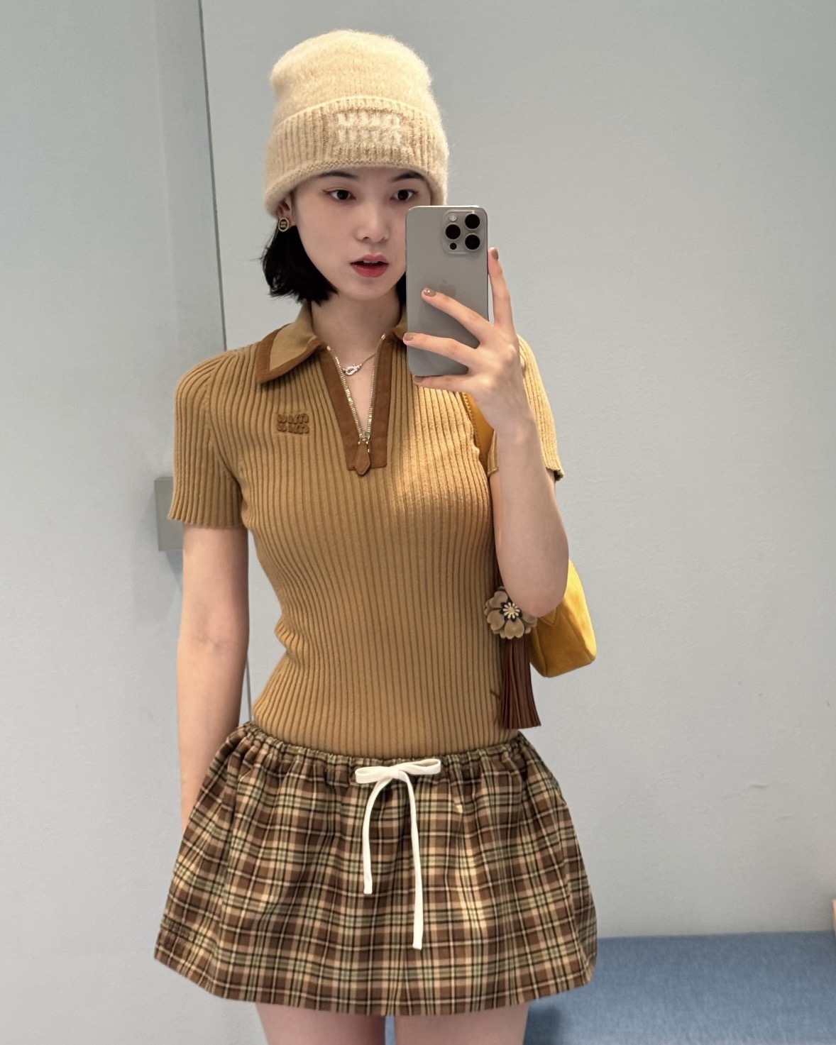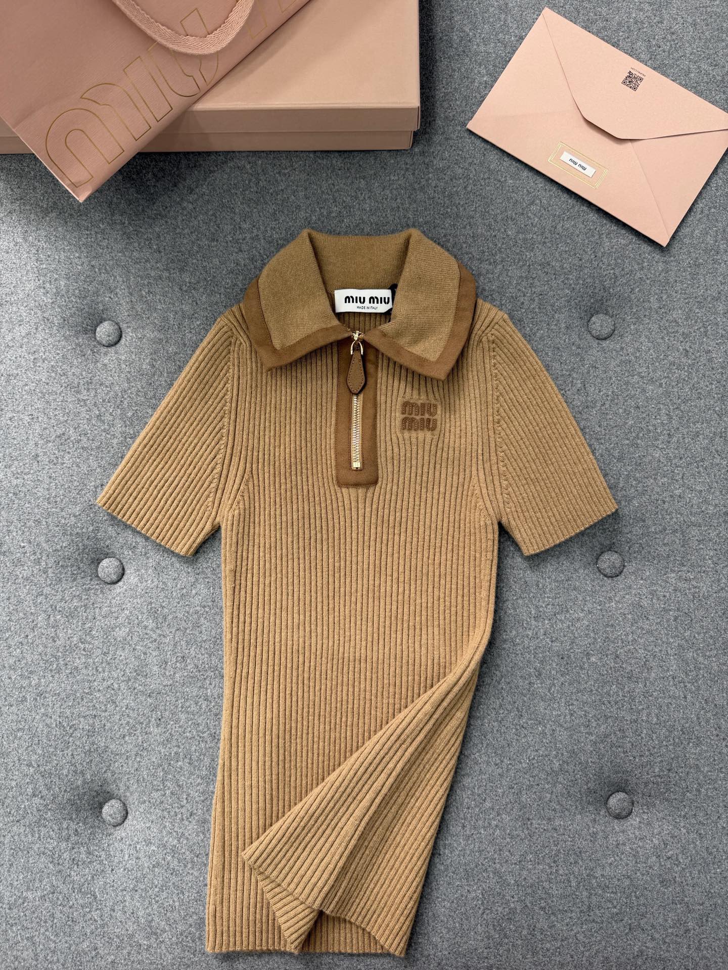 미우미우 골지 니트 캐시미어 혼방 폴로 반팔🌰