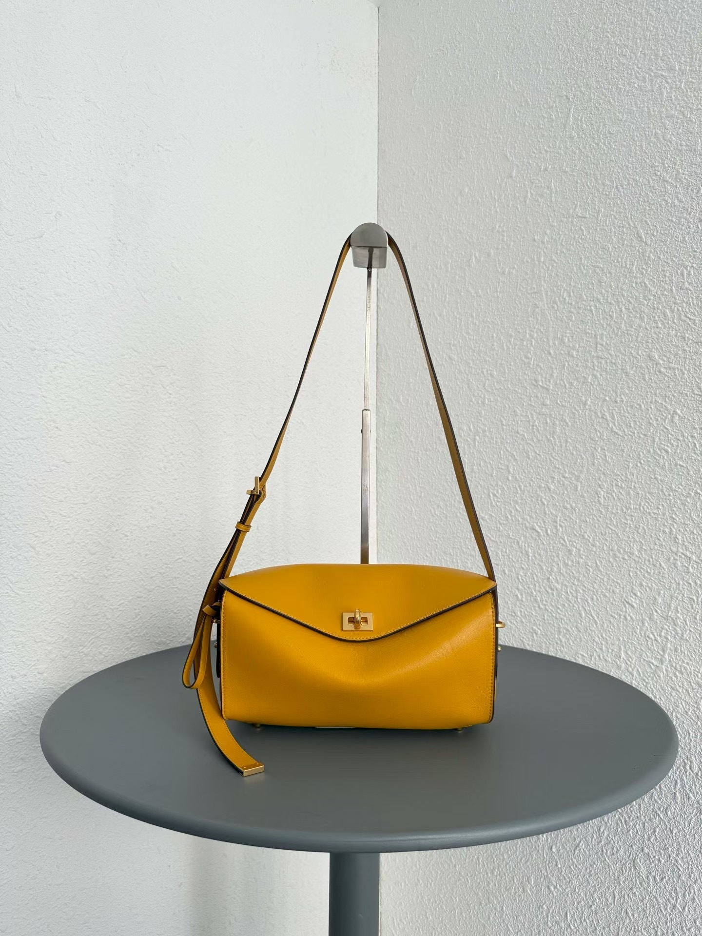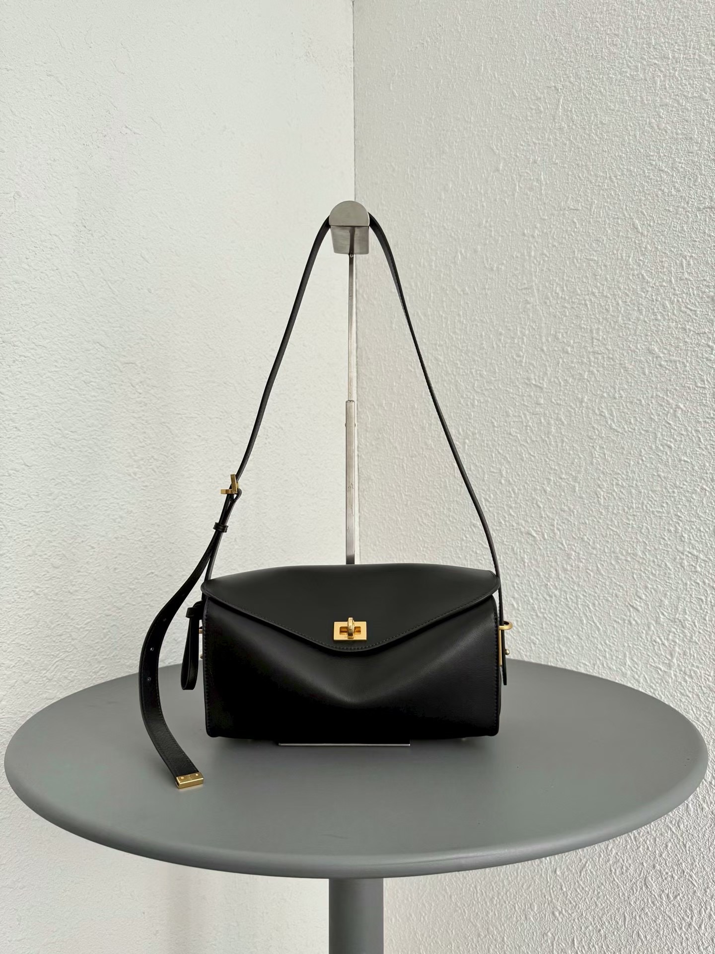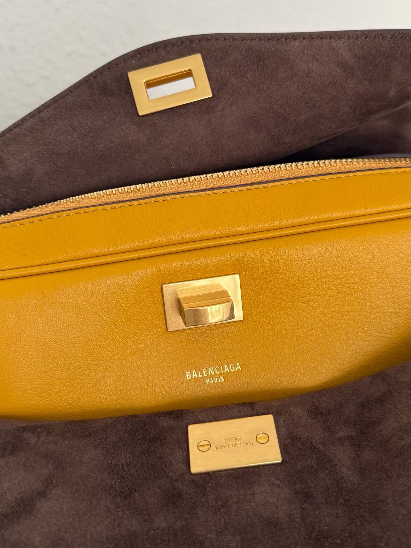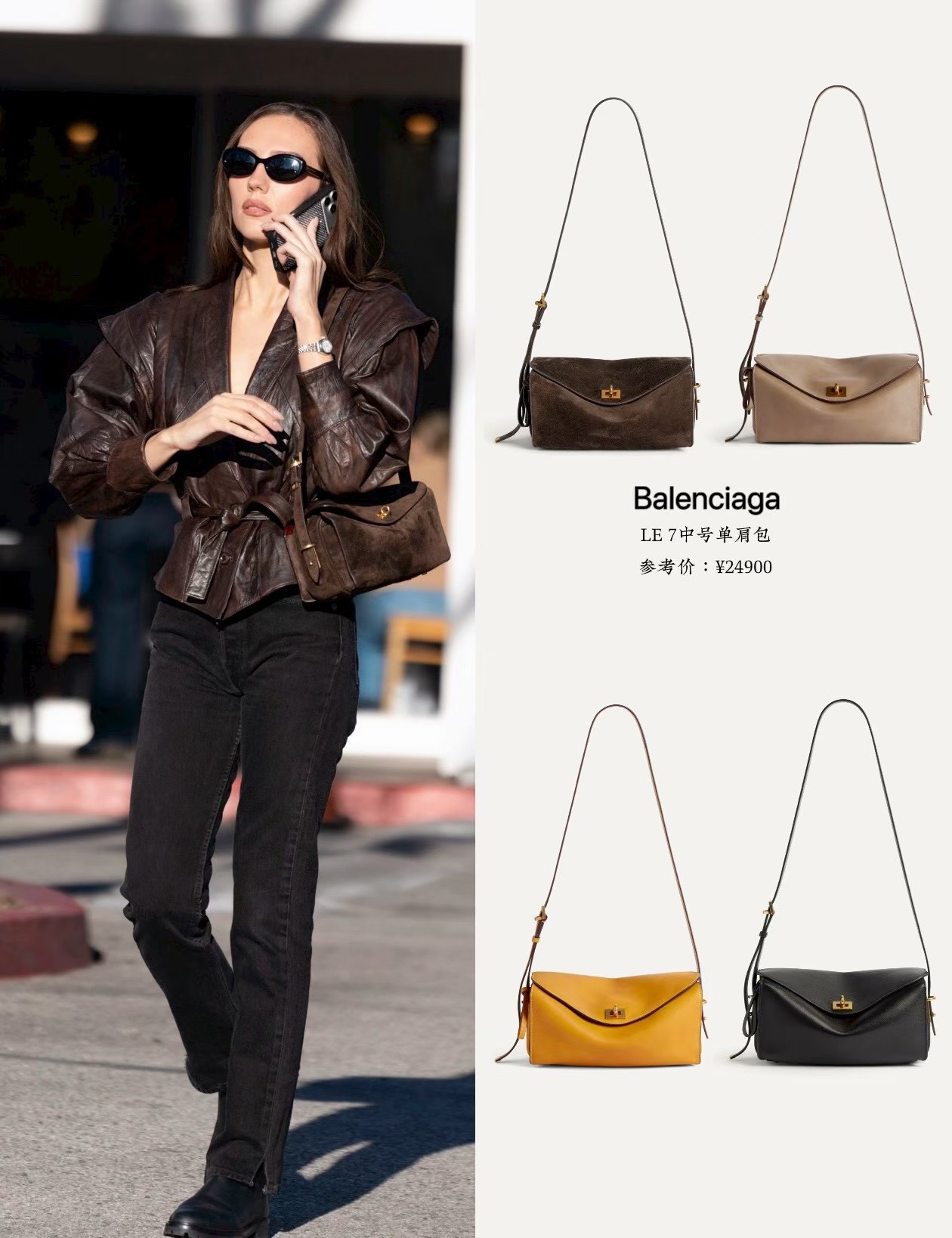 발렌시아가 LE 7 시리즈 겉은 매끄러운 송아지 가죽에 안쪽면은 넛맥 스웨이드 양가죽 안감과 디스트레스 골드 금속 하드웨어로 마무리. 미니멀하게 절제되어 있는 디자인 . 매우 활용도가 높은 사이즈와 수납공간이 여유로워요. 크기: 길이 26 x 높이 13.5 x 너비 10cm 색상: 블랙, 비스킷, 커리, 모카(스웨이드)