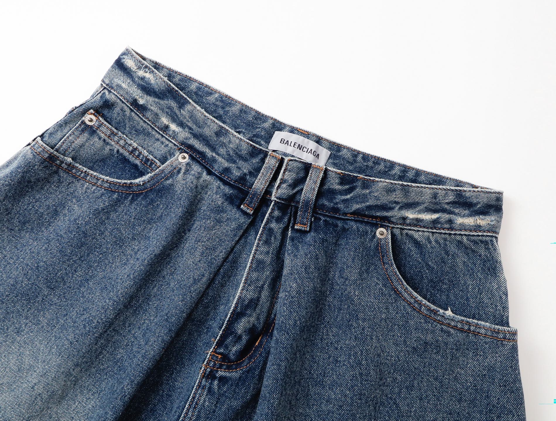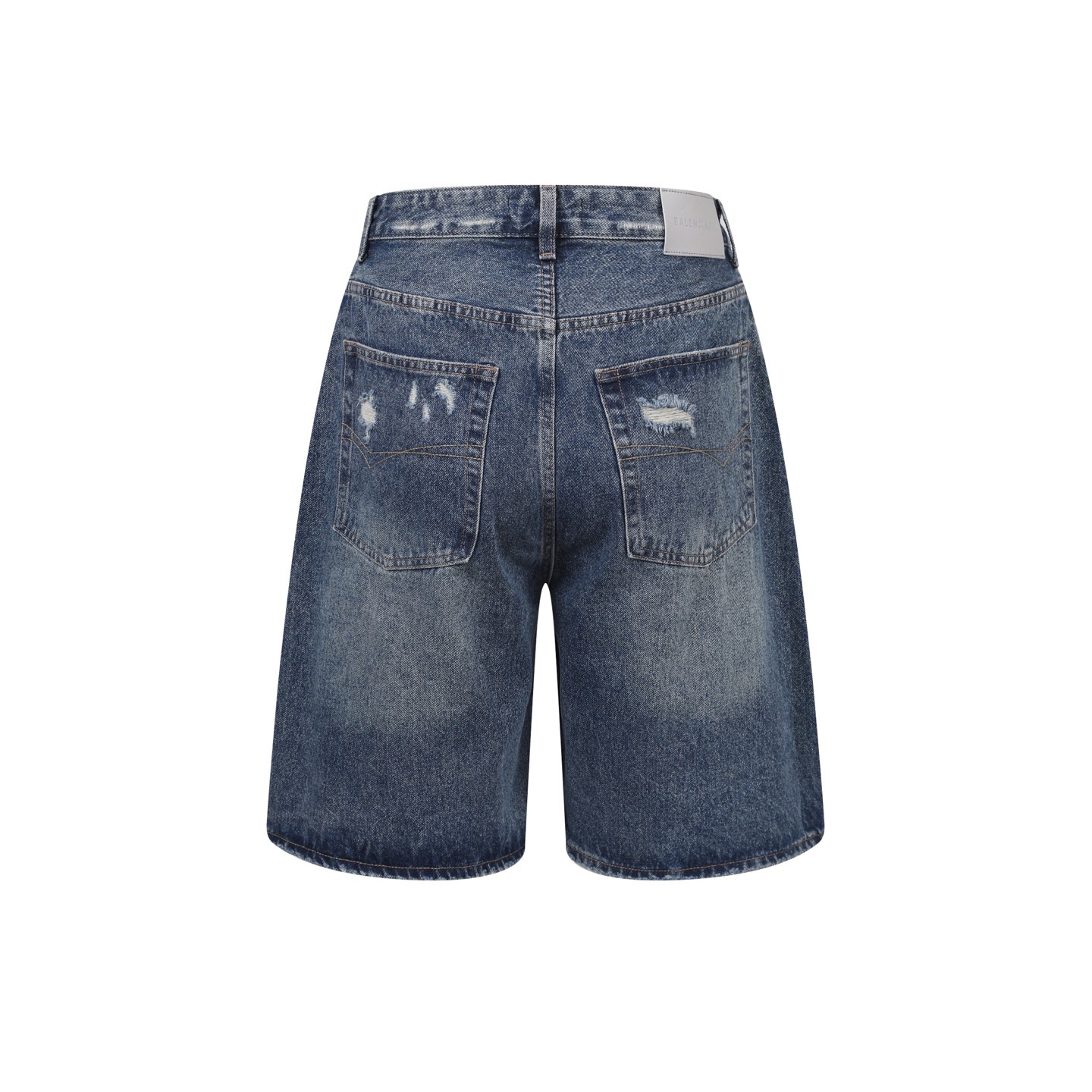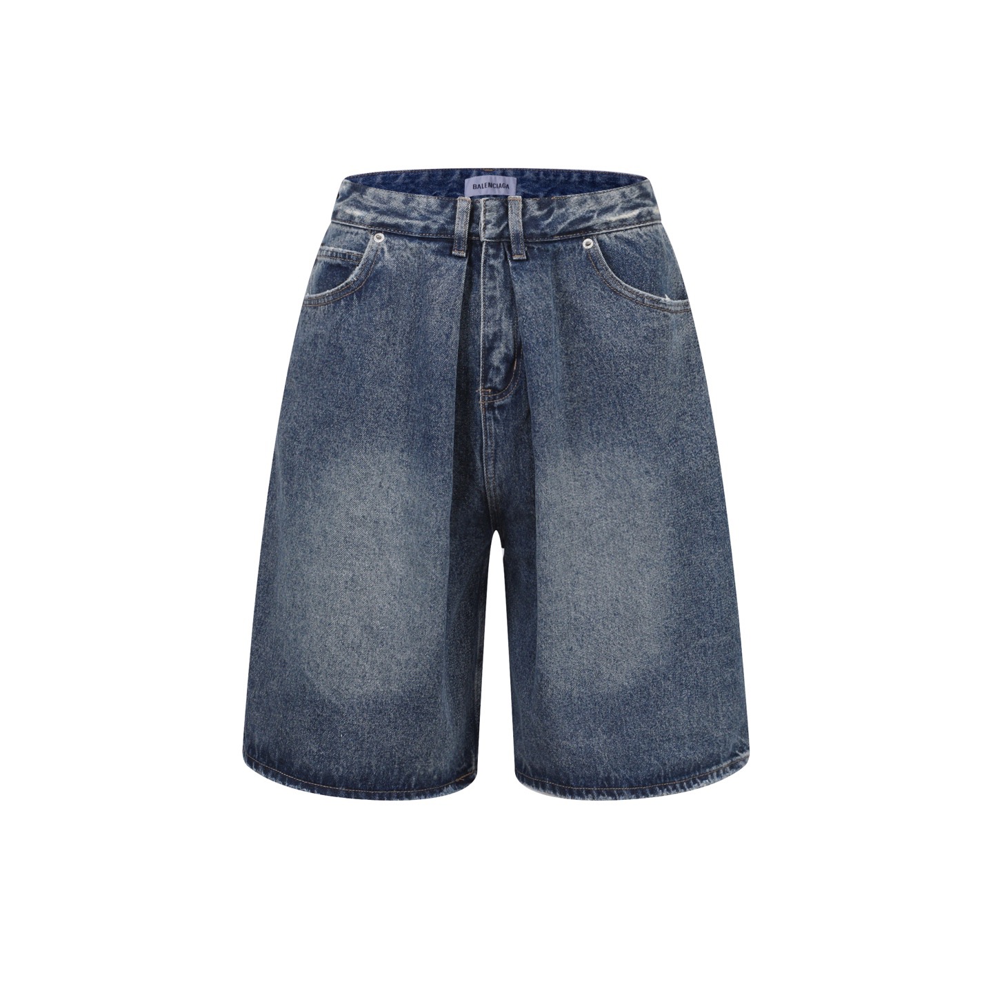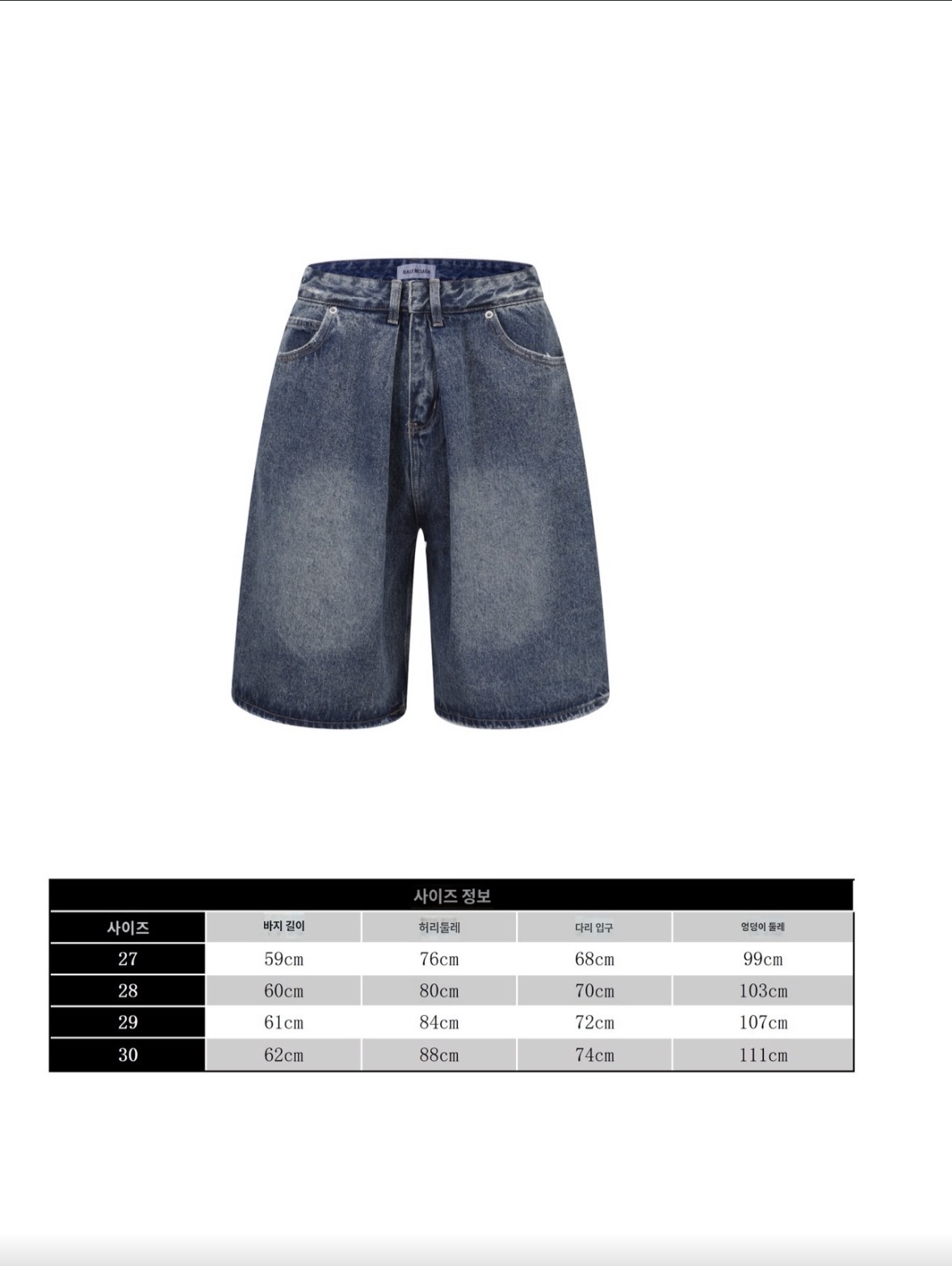 BLCG FOLDED 데님 반바지 입체적인 재단 방식을 채택 재단 접합부에는 이중 실매립 공법을 사용하며, 바늘 간격은 센티미터당 3핀 이내로 엄격히 조절하여 접히는 부위의 변형과 들뜸을 방지 입체감과 착용감의 밀착성을 동시에 고려한 구조 설계와 공정 실용성의 완벽한 균형 샌드블라스트, 캣워싱, 스톤워싱 3대 맞춤공정. 사이즈: 아래 표 참조