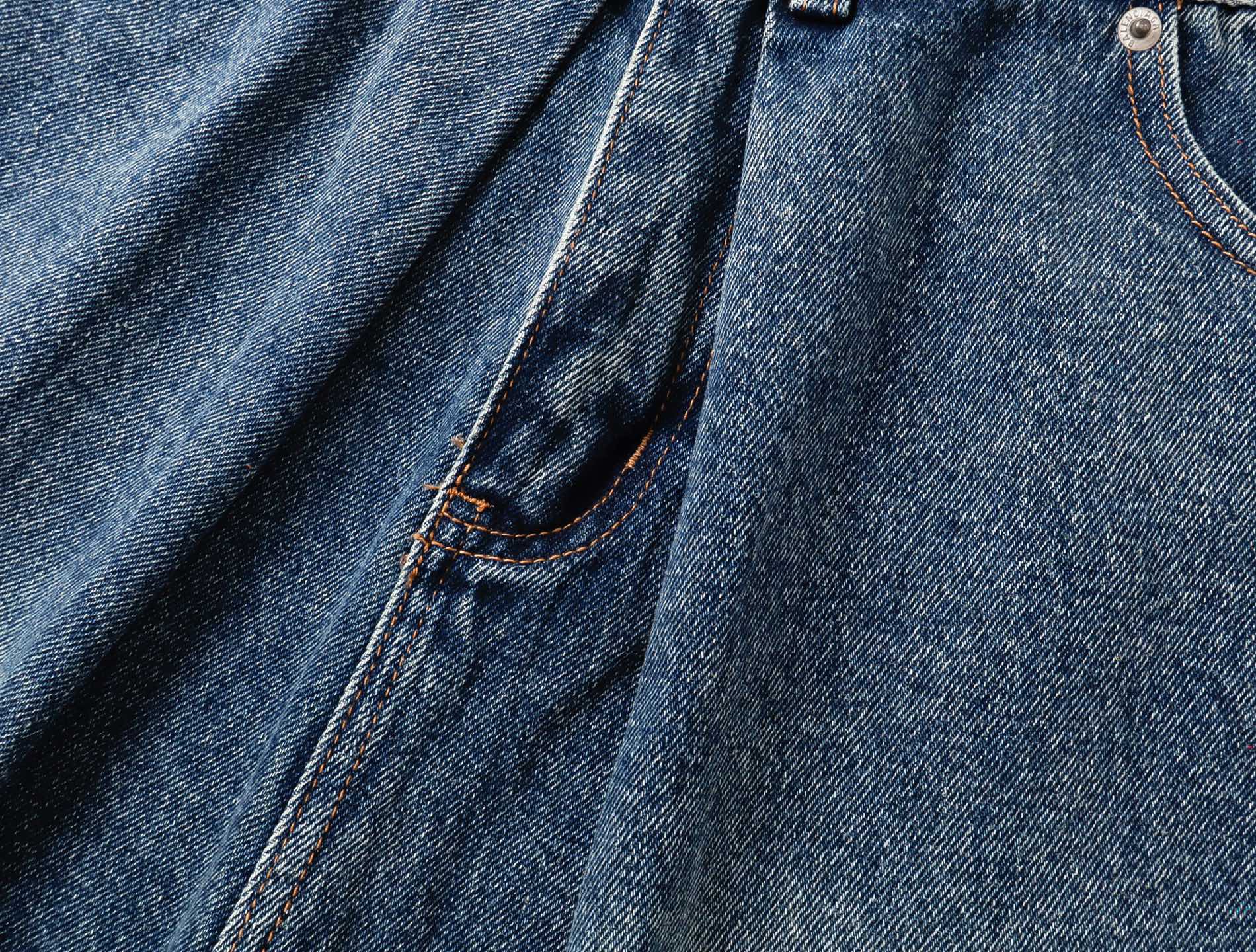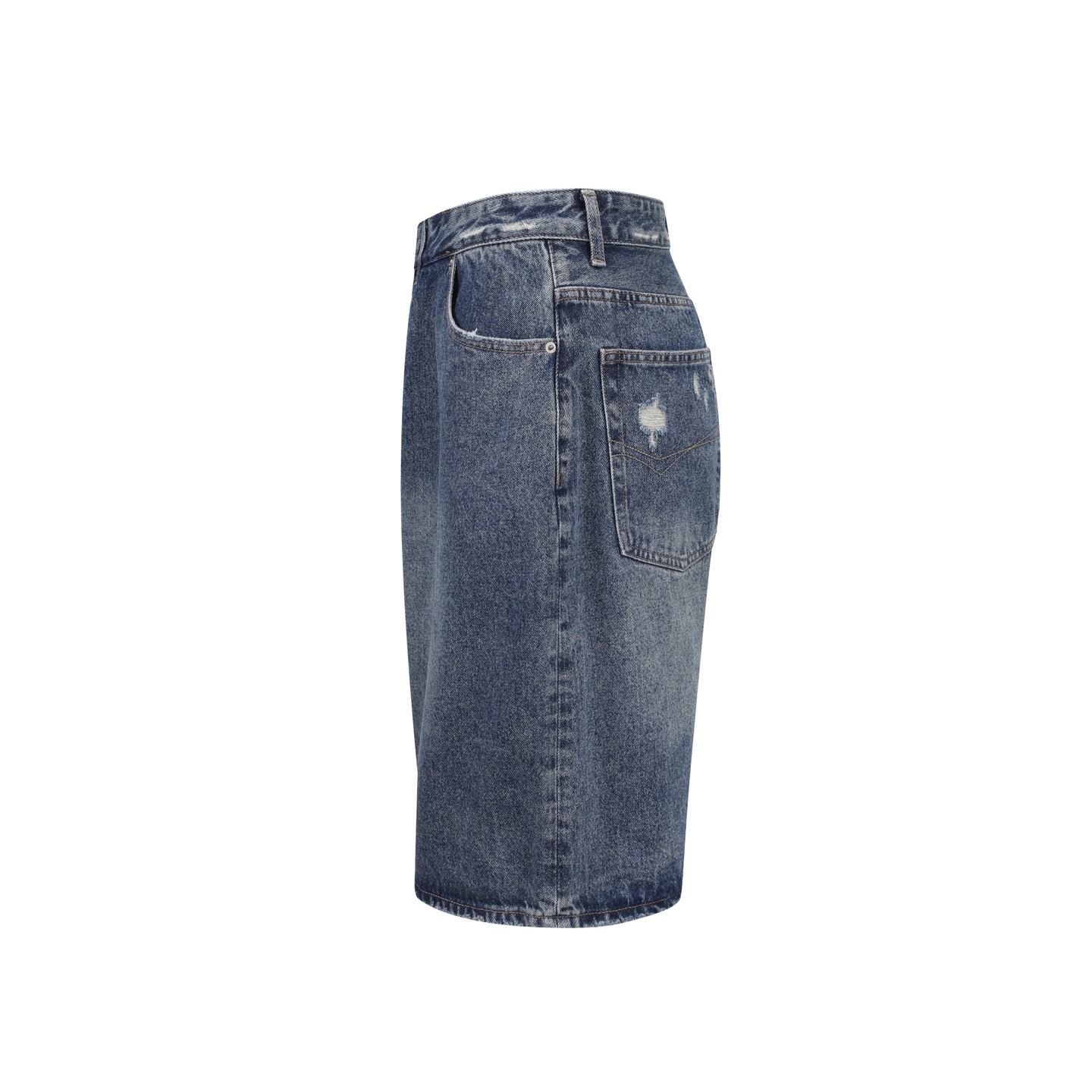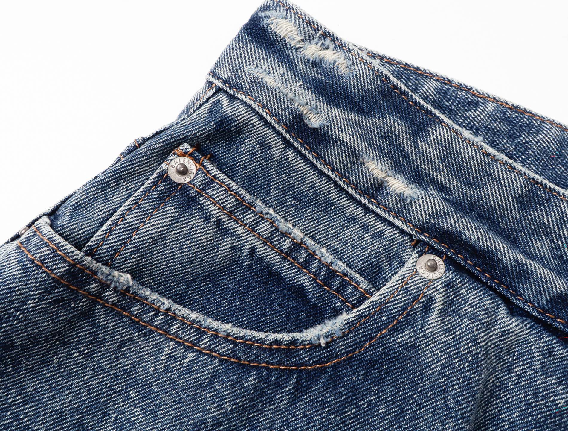 BLCG FOLDED 데님 반바지 입체적인 재단 방식을 채택 재단 접합부에는 이중 실매립 공법을 사용하며, 바늘 간격은 센티미터당 3핀 이내로 엄격히 조절하여 접히는 부위의 변형과 들뜸을 방지 입체감과 착용감의 밀착성을 동시에 고려한 구조 설계와 공정 실용성의 완벽한 균형 샌드블라스트, 캣워싱, 스톤워싱 3대 맞춤공정. 사이즈: 아래 표 참조