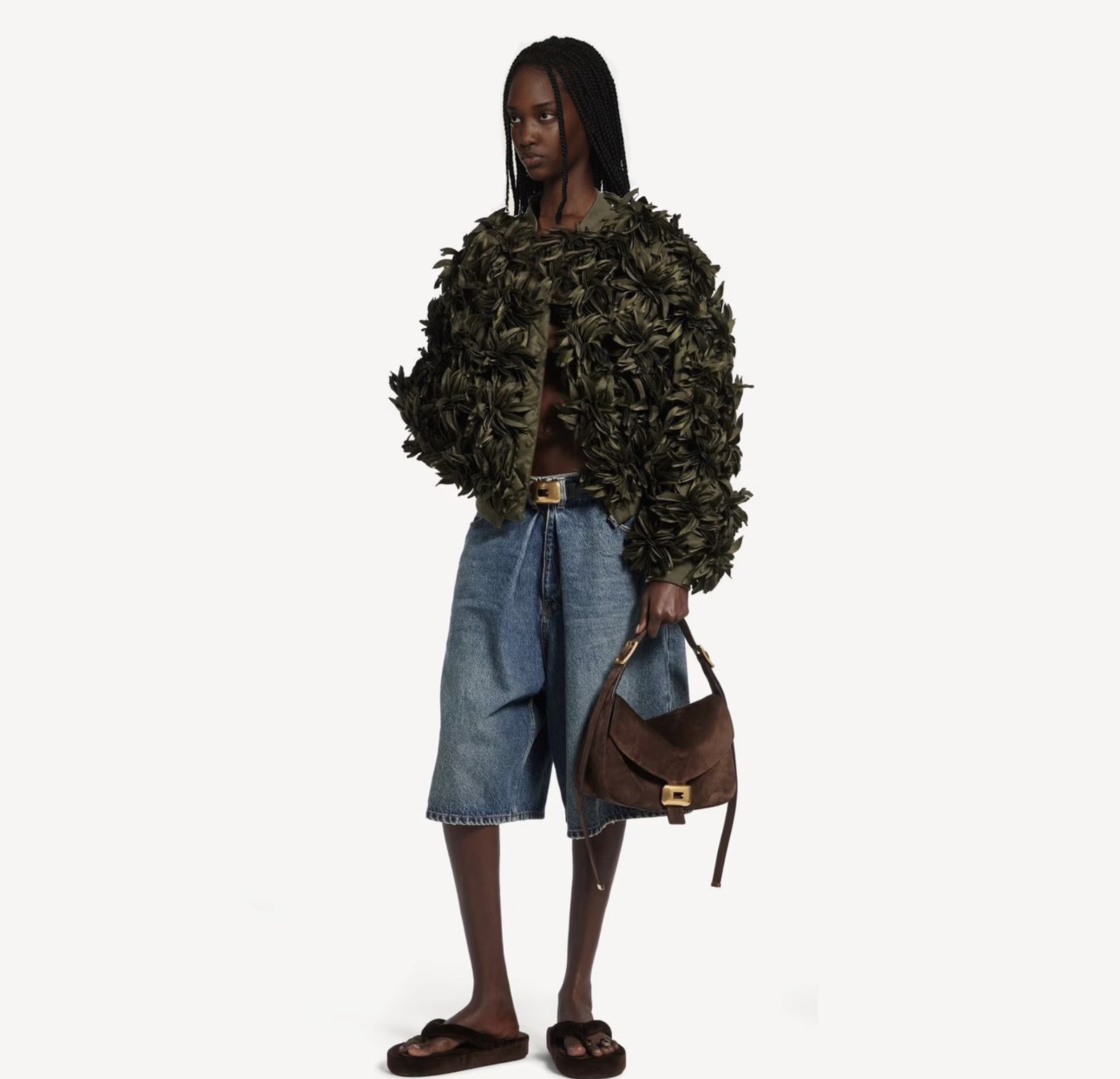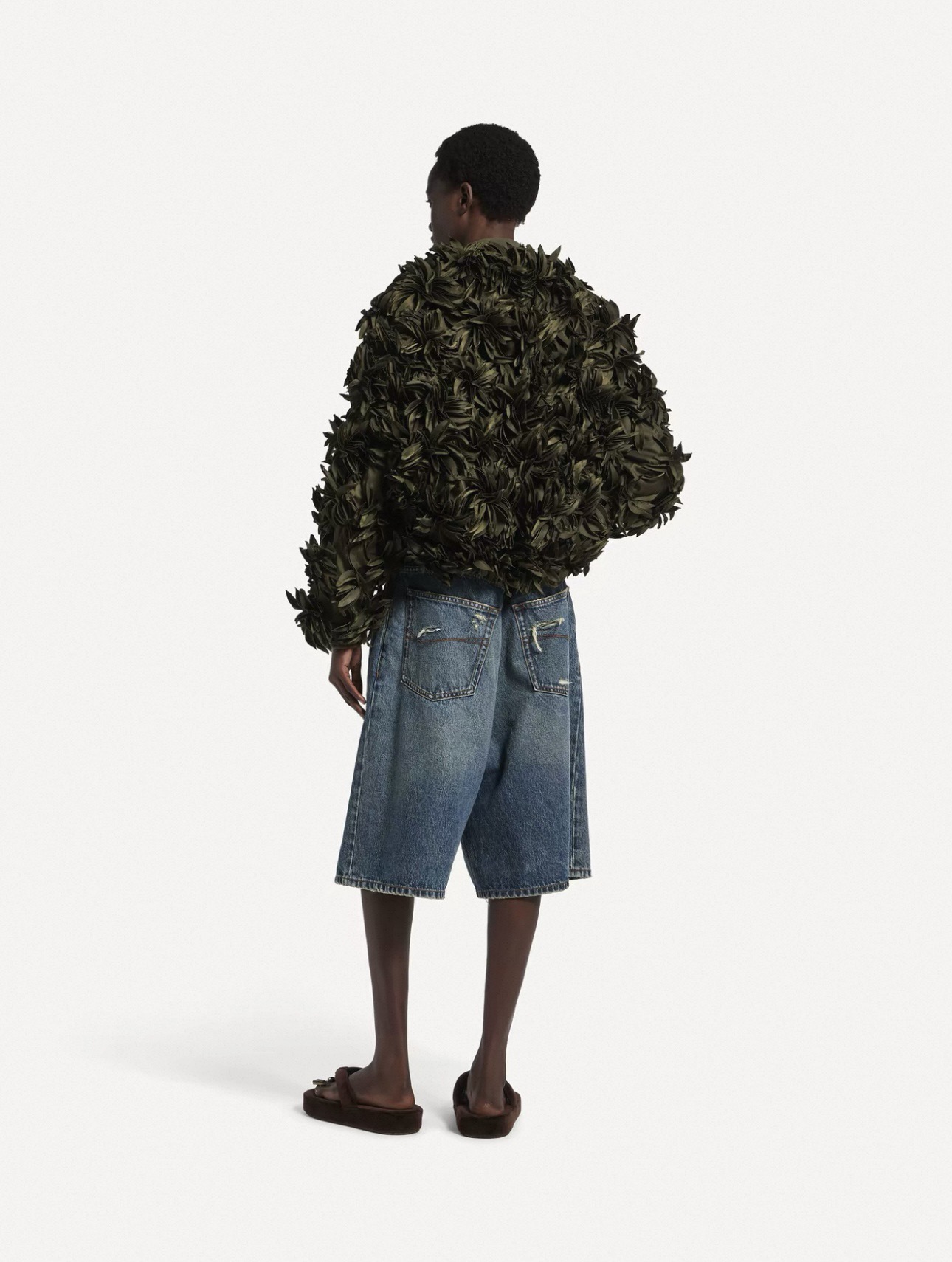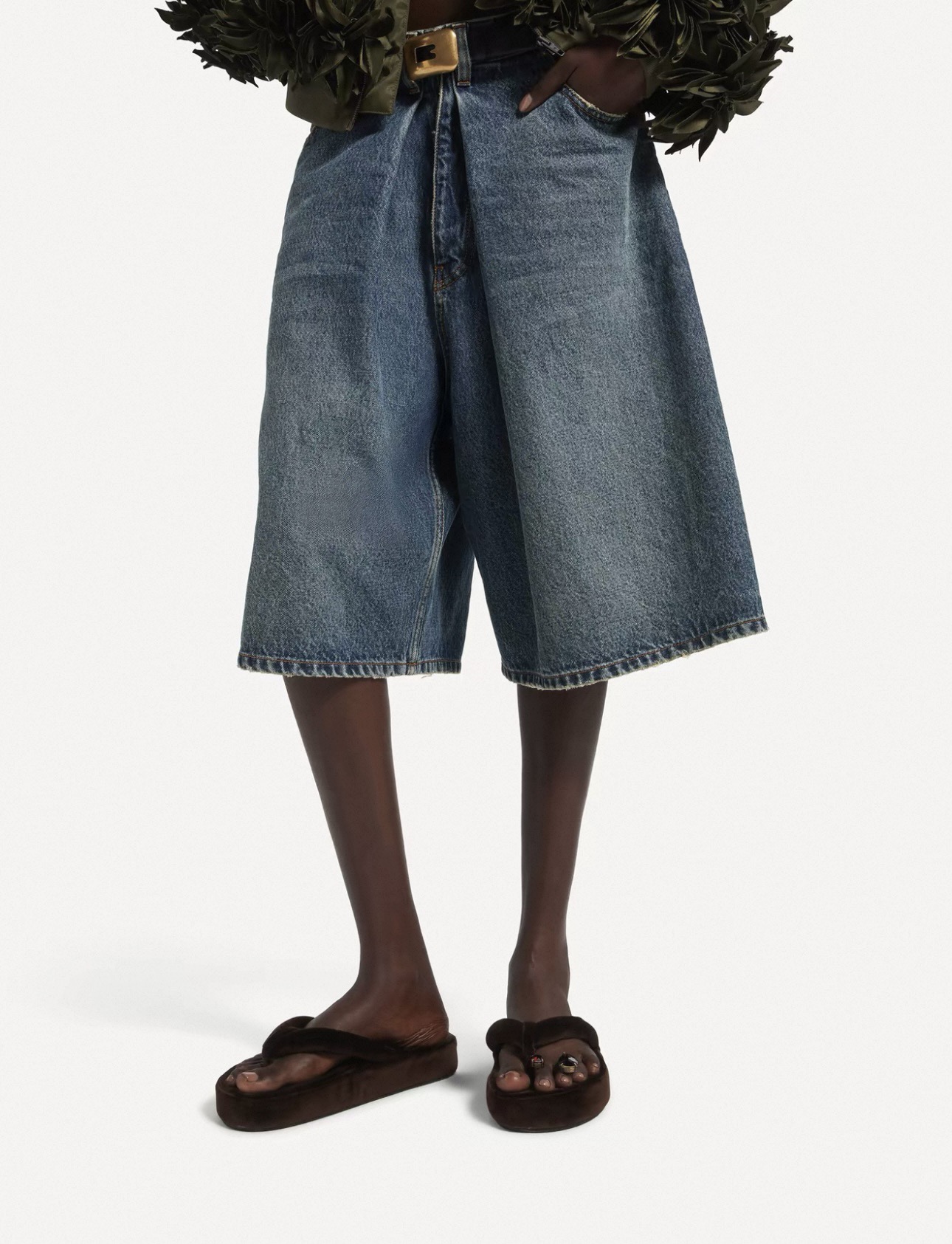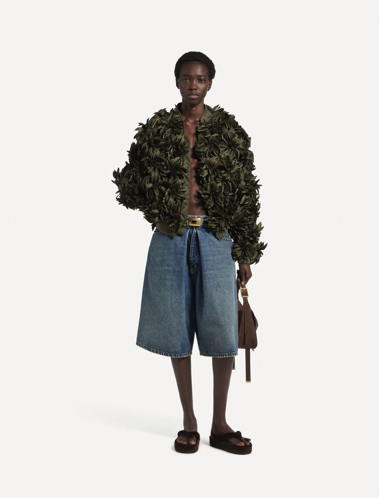 BLCG FOLDED 데님 반바지 입체적인 재단 방식을 채택 재단 접합부에는 이중 실매립 공법을 사용하며, 바늘 간격은 센티미터당 3핀 이내로 엄격히 조절하여 접히는 부위의 변형과 들뜸을 방지 입체감과 착용감의 밀착성을 동시에 고려한 구조 설계와 공정 실용성의 완벽한 균형 샌드블라스트, 캣워싱, 스톤워싱 3대 맞춤공정. 사이즈: 아래 표 참조