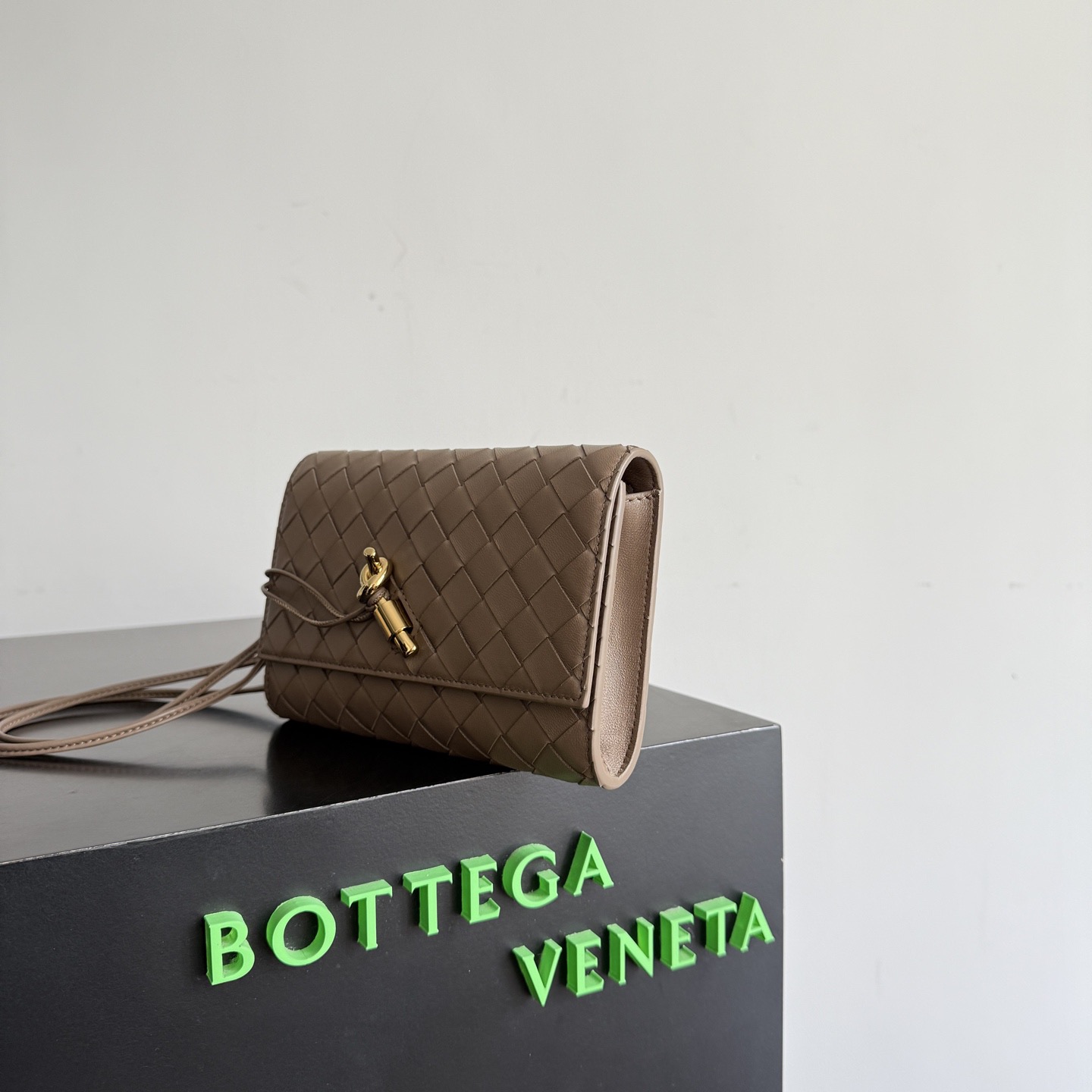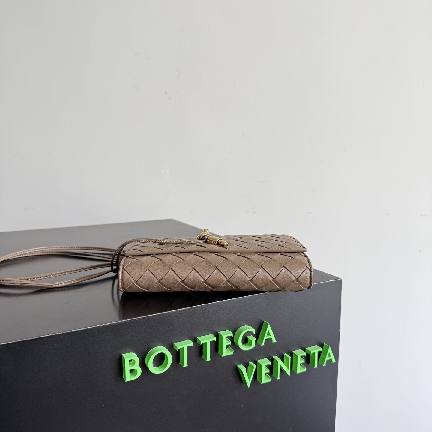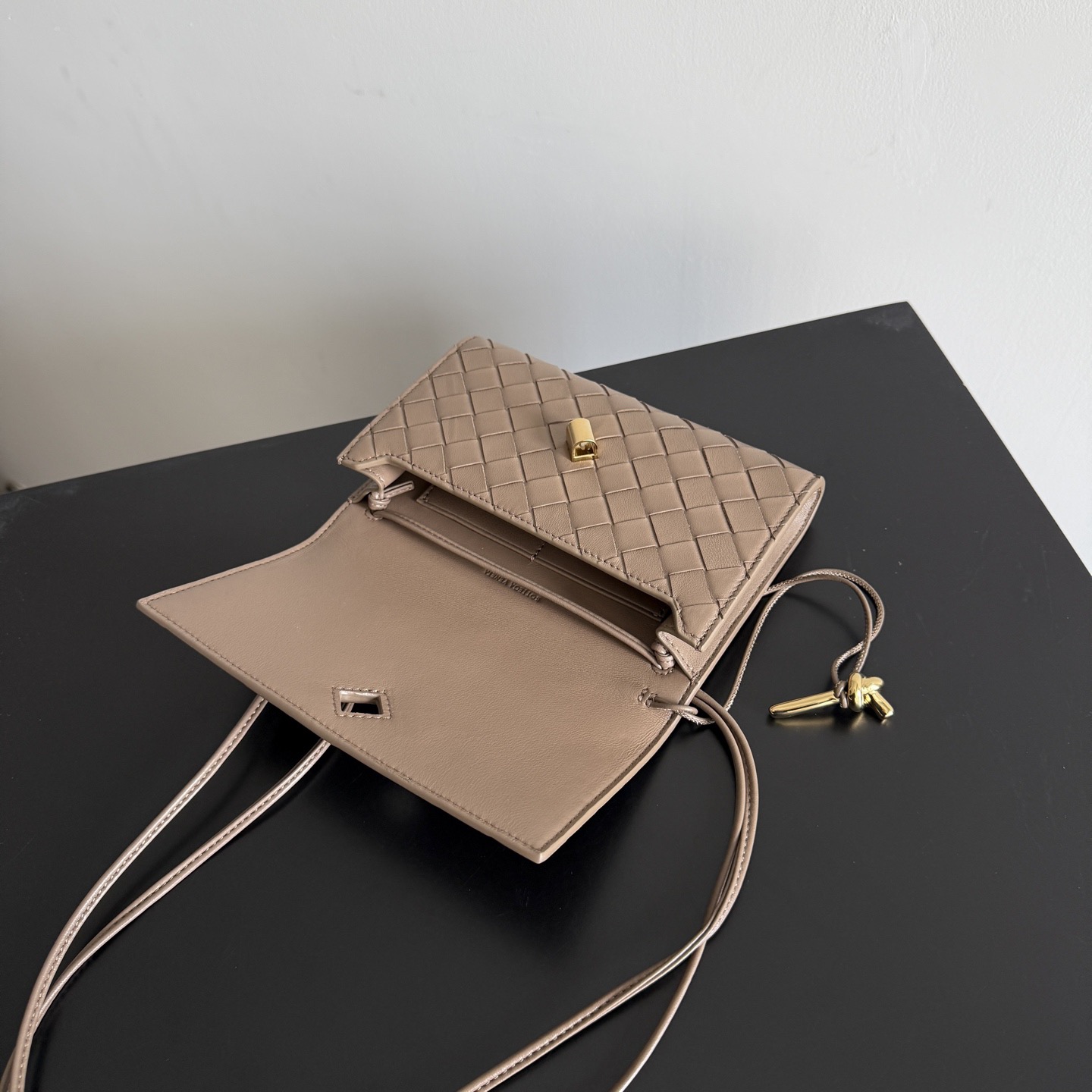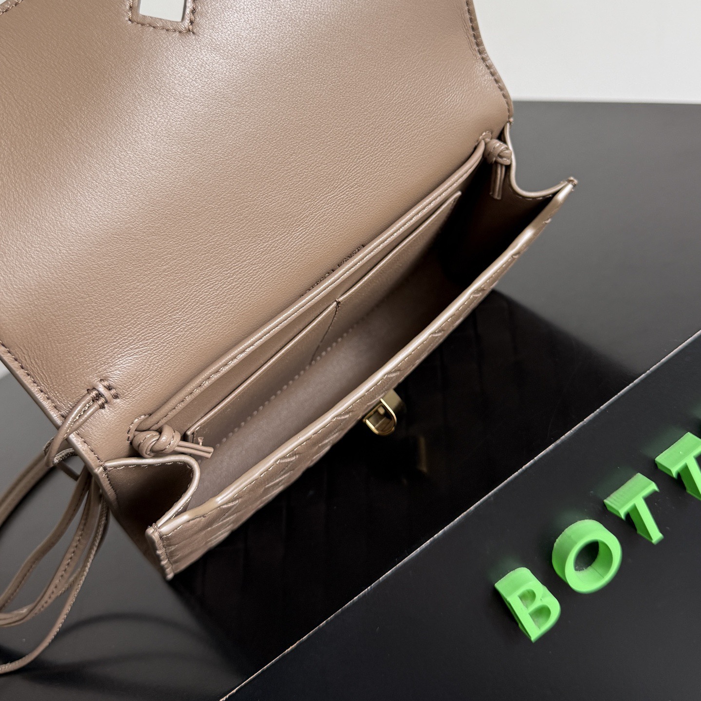 가죽제품이지만 가볍고 슬림해서 굿. 로고 없는 럭셔리 백이라 굿. 수납 알차서 굿. 인트레치아토 위빙 나파 가죽 메탈 노트 장식 잠금 디테일 슬라이딩 가죽 스트랩 메인 수납 공간 + 카드 슬롯 골드 또는 브라스 하드웨어 스트랩 길이 33 cm 색상 사진 참조 19*12.6*2cm