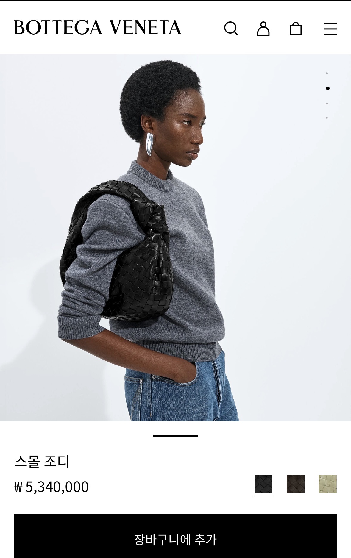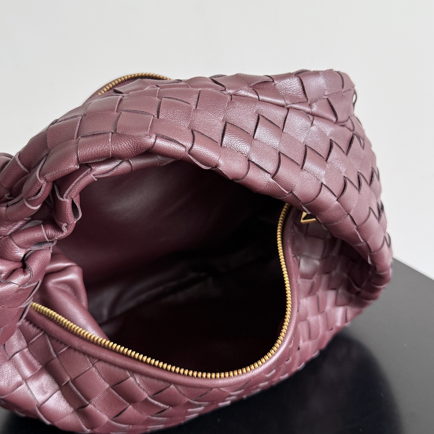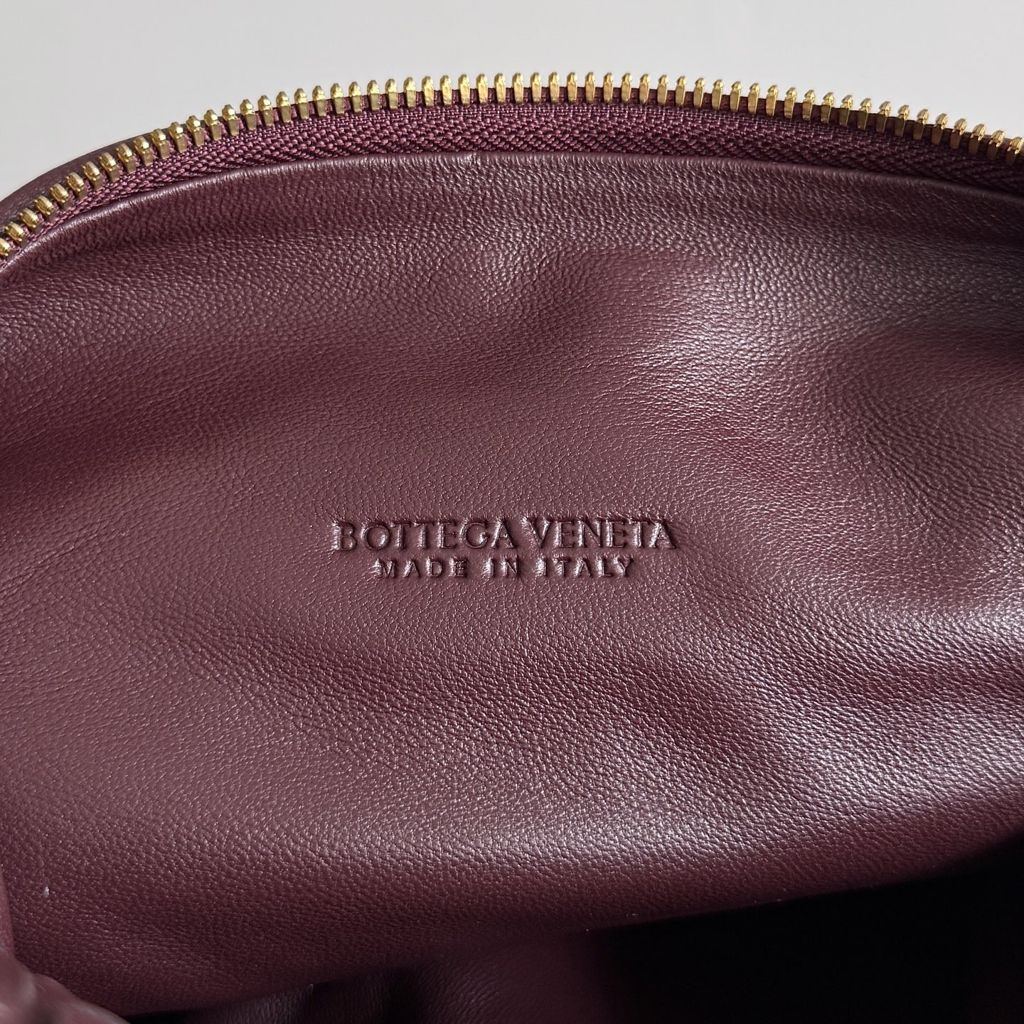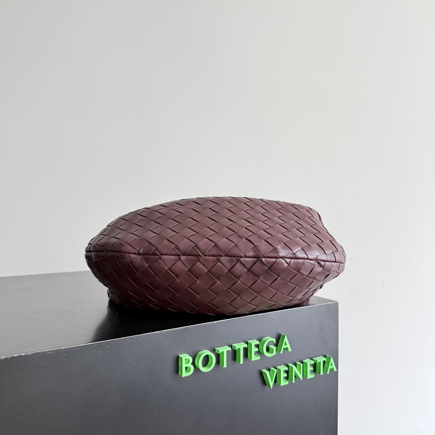 둥근 형태와 시그니처 놋 디테일을 갖춘 유연한 인트레치아토 가죽 소재의 백.