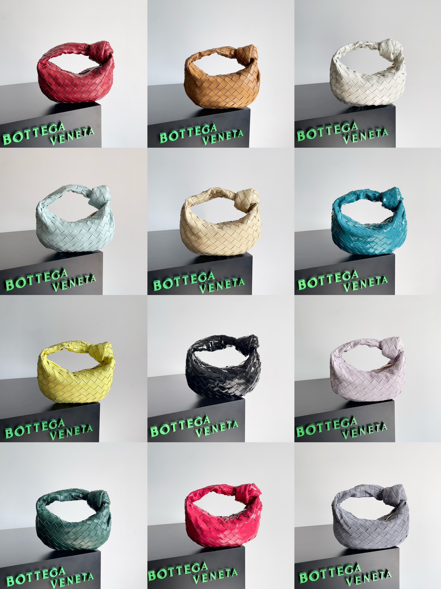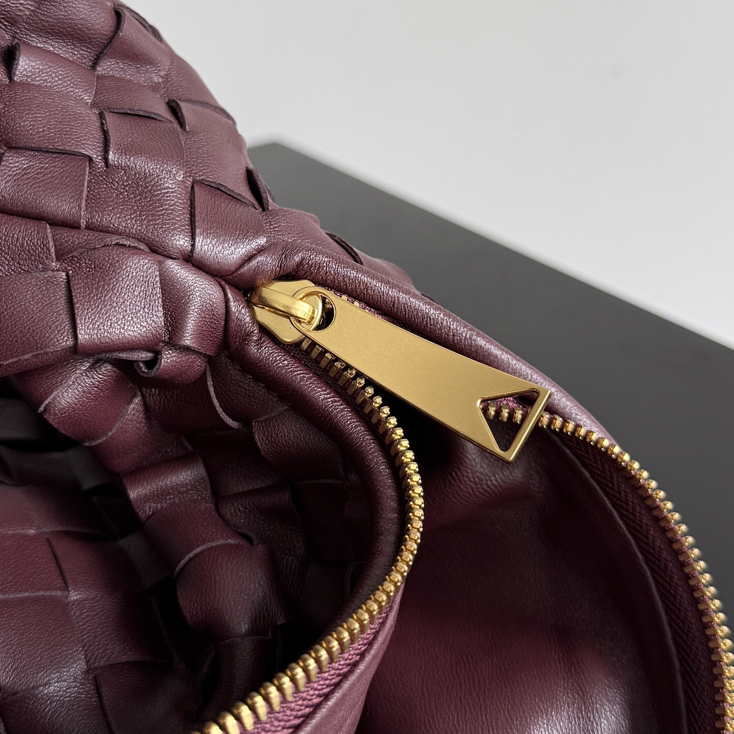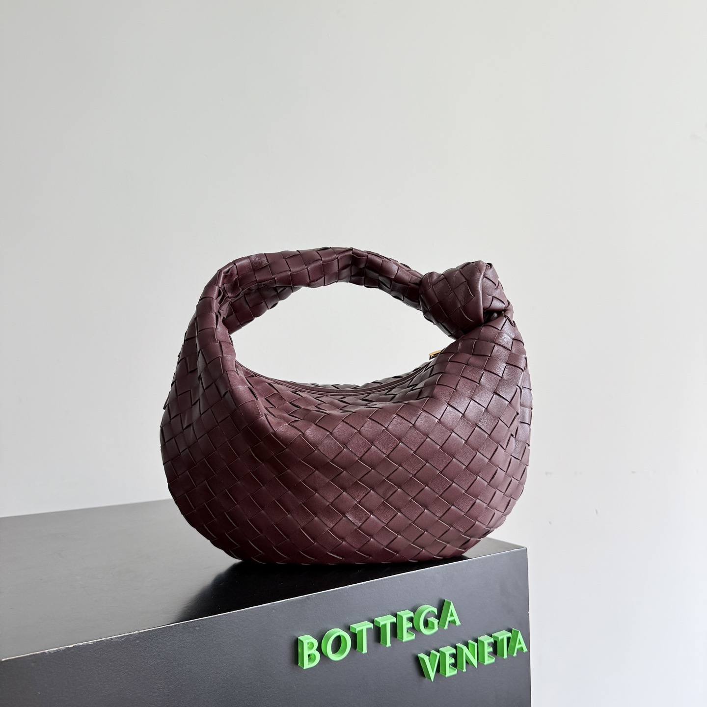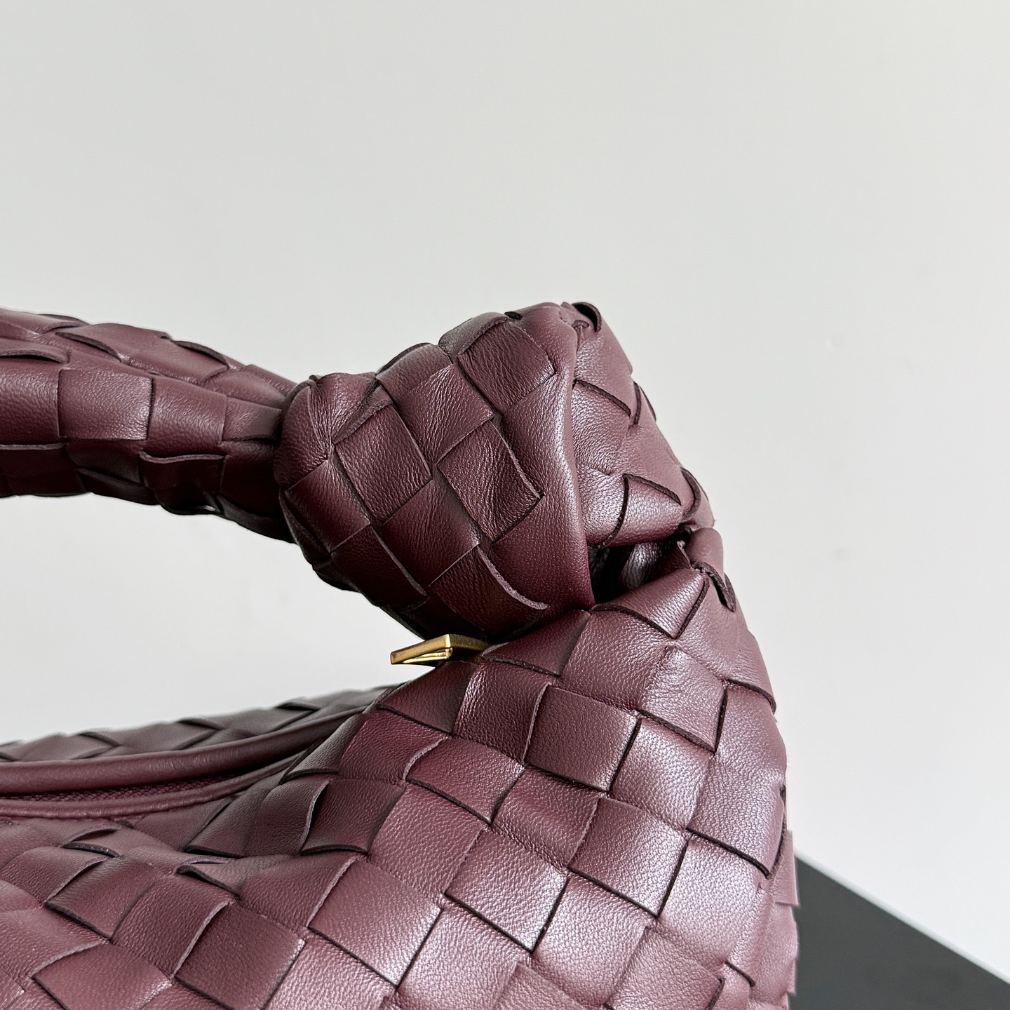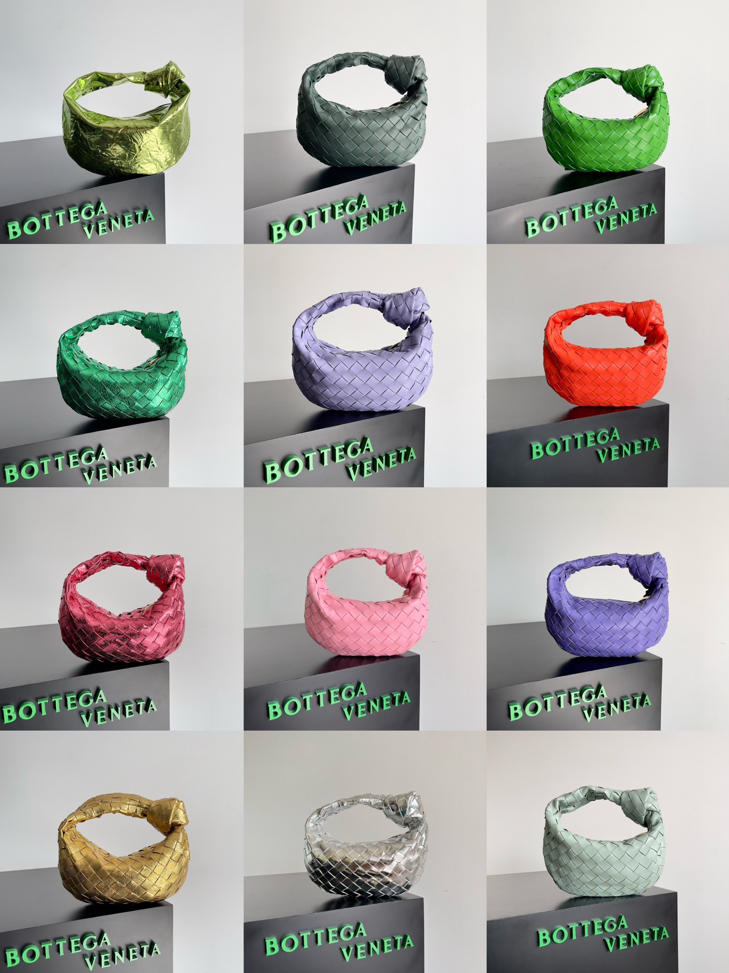 둥근 형태와 시그니처 놋 디테일을 갖춘 유연한 인트레치아토 가죽 소재의 백.