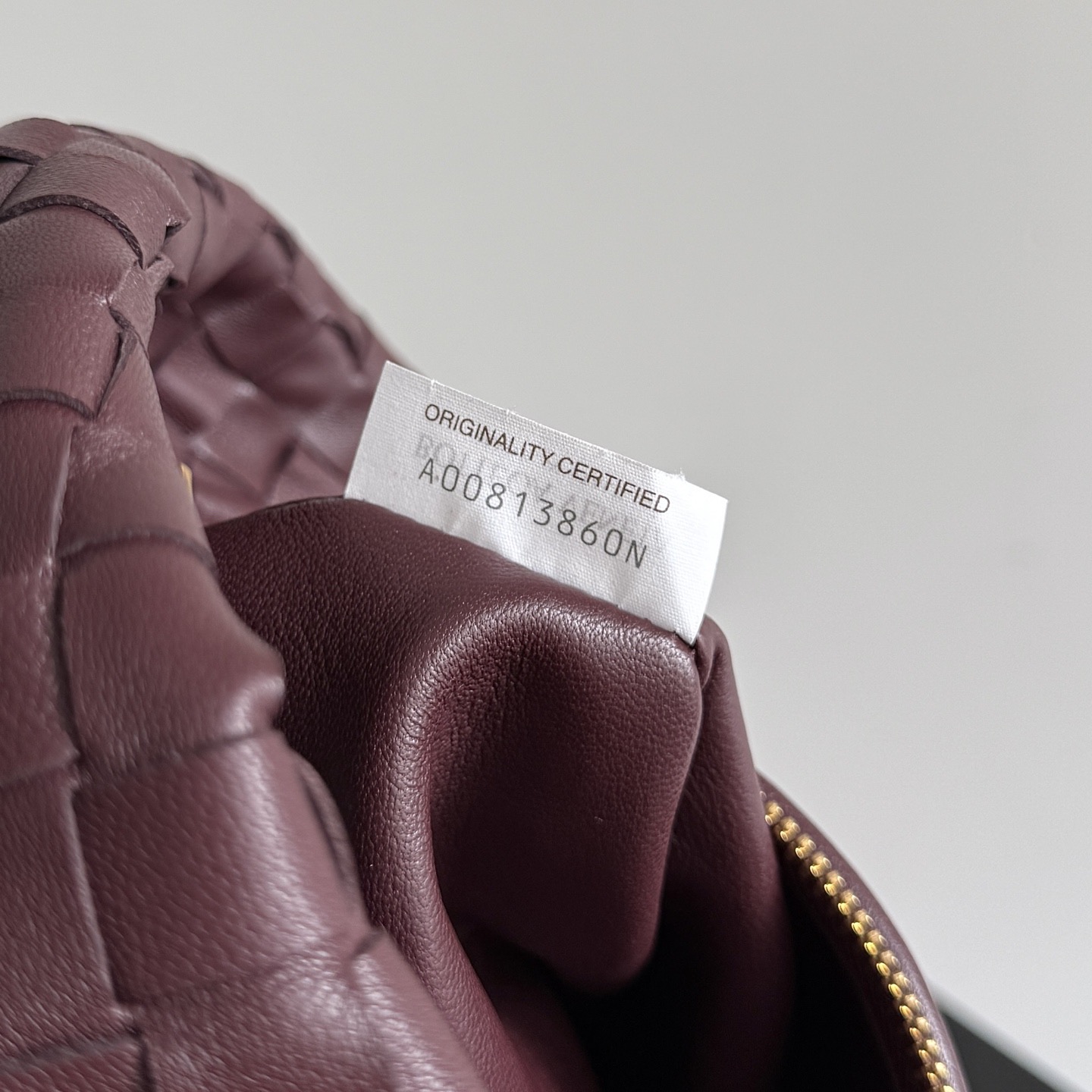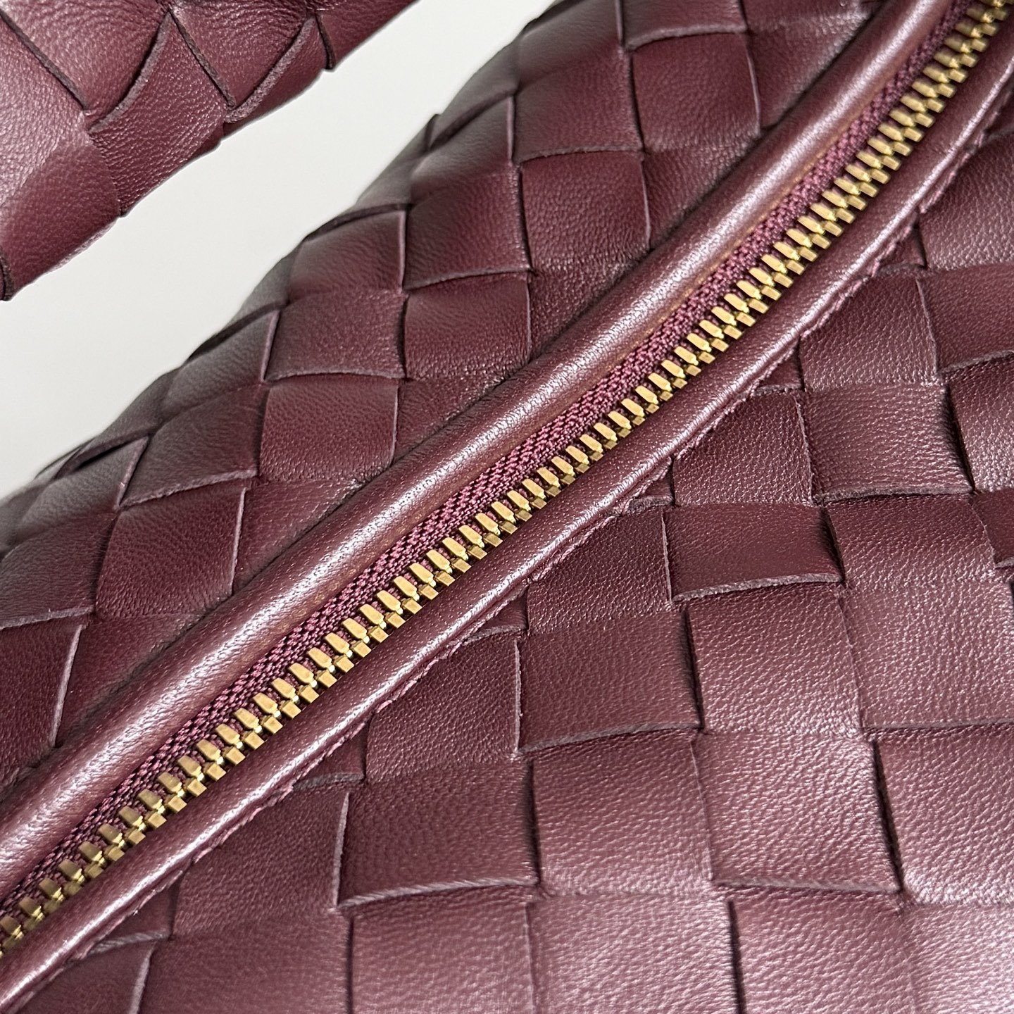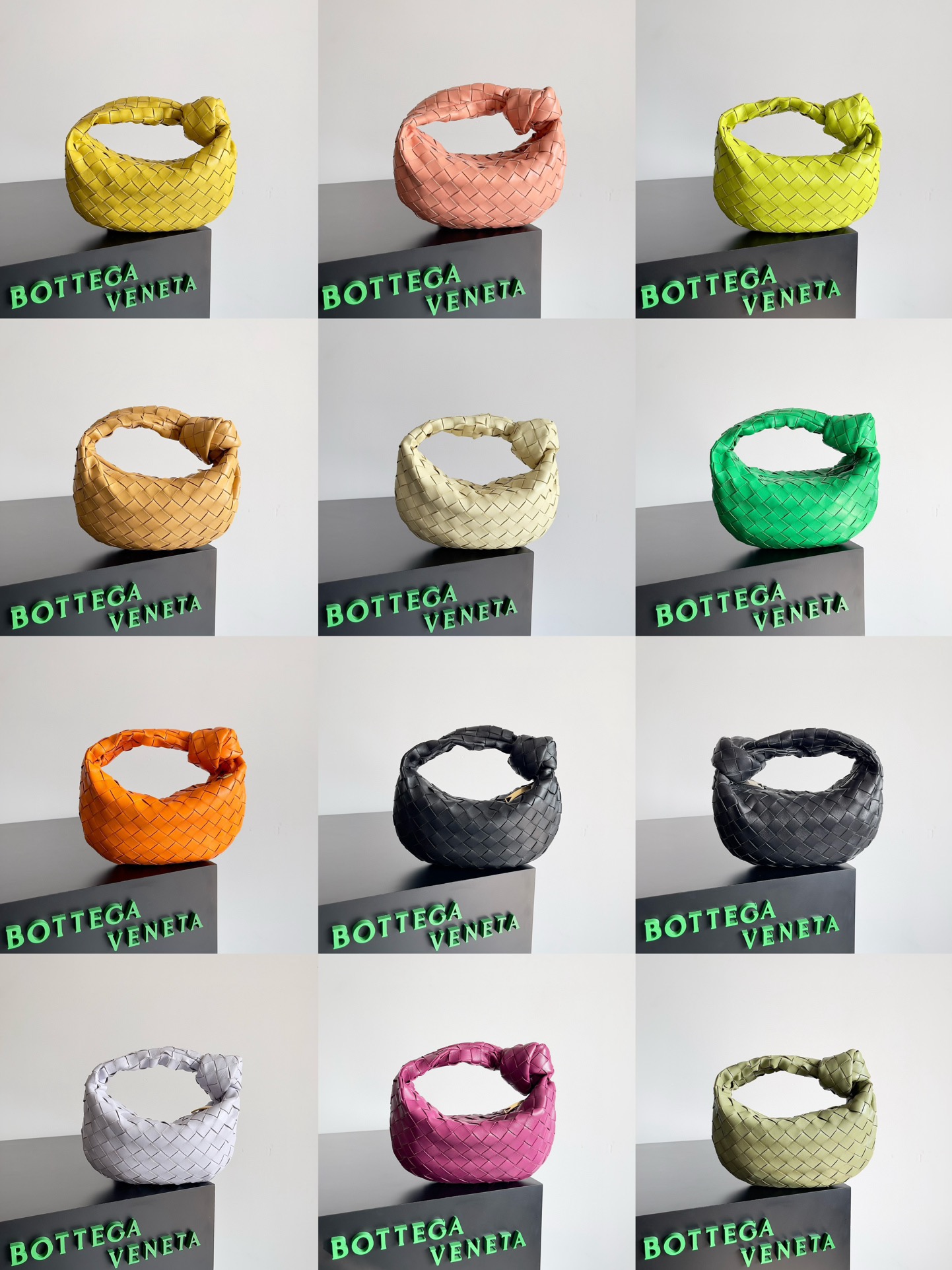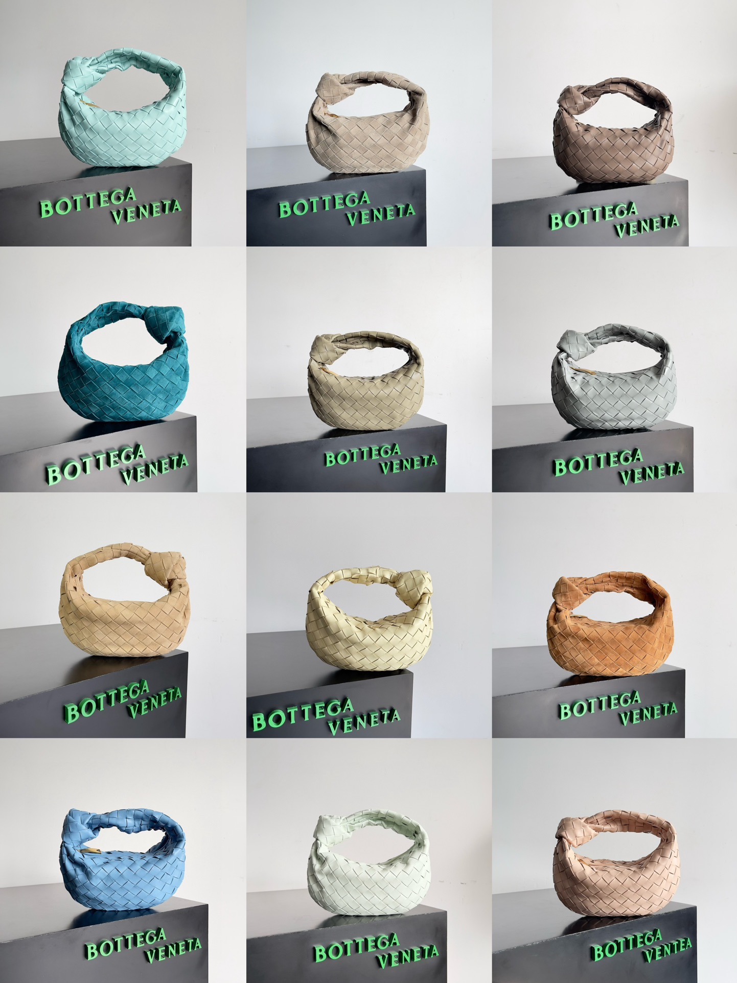 둥근 형태와 시그니처 놋 디테일을 갖춘 유연한 인트레치아토 가죽 소재의 백.