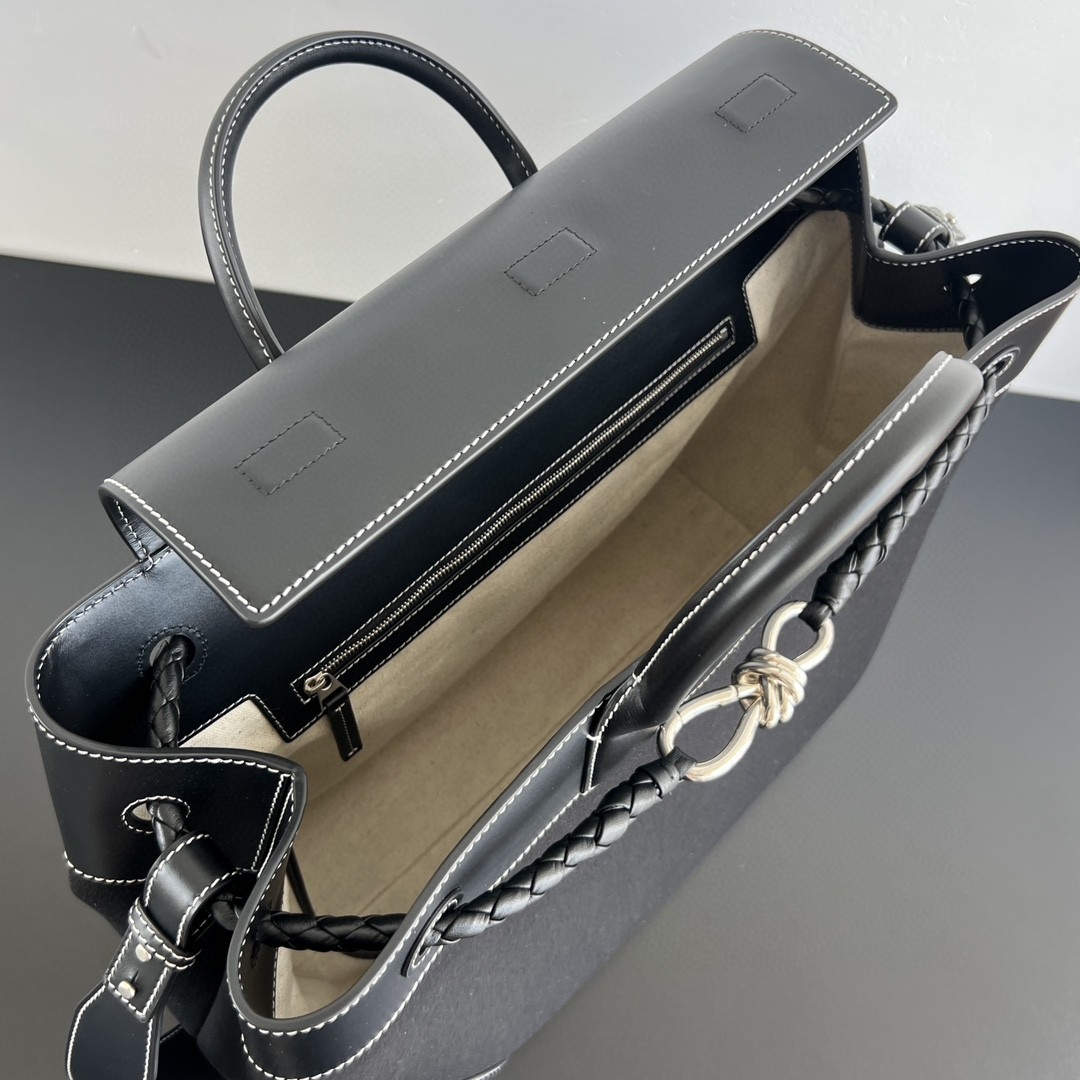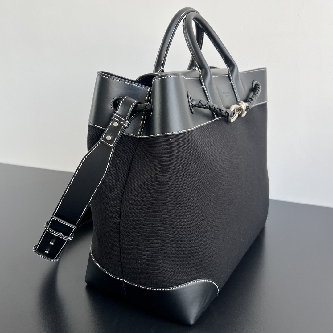 BV 신상 뉴트럴 스타일 블랙 캔버스 가볍고 실용적이면서도 스타일리쉬합니다. 블랙 캔버스와 스티치의 매끄러운 가죽이 디자인의 레이어드감을 더했습니다. 슬립 가능한 금속끈 매듭을 매치하여 심플한 가방으로 세련된 디테일을 드러냈습니다. 정품가 1600만원 사이즈 : 43 * 39 * 20 1400370jio