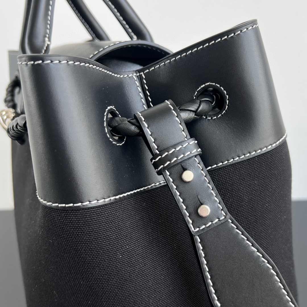 블랙 캔버스와 스티치의 매끄러운 가죽이 디자인의 레이어드감을 더했습니다.