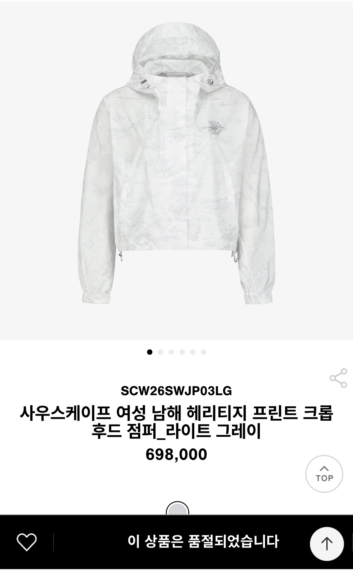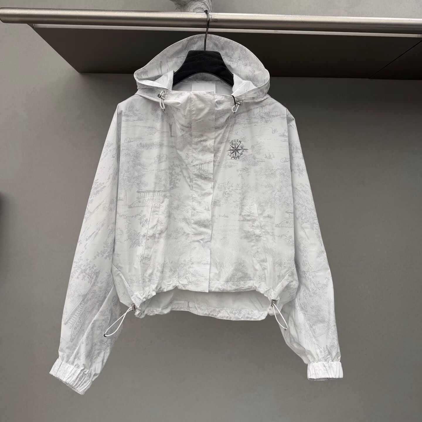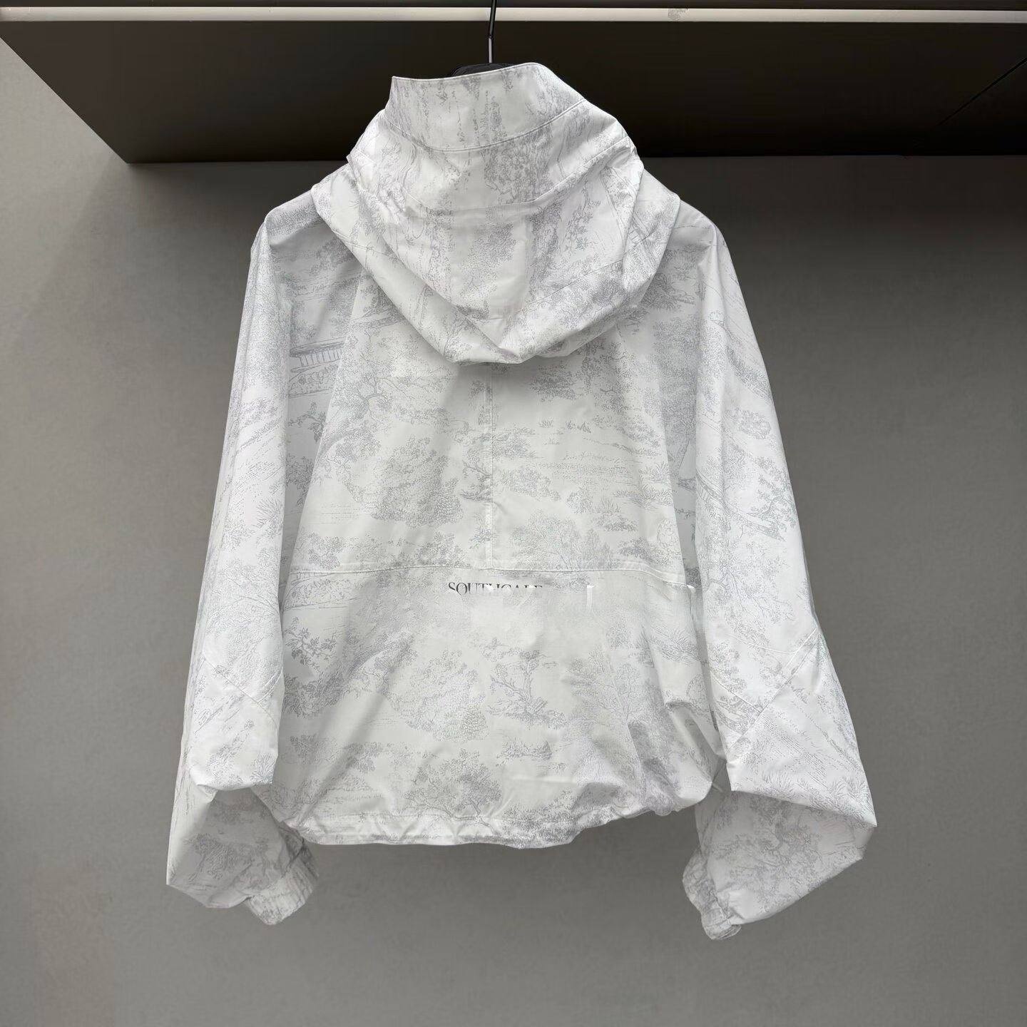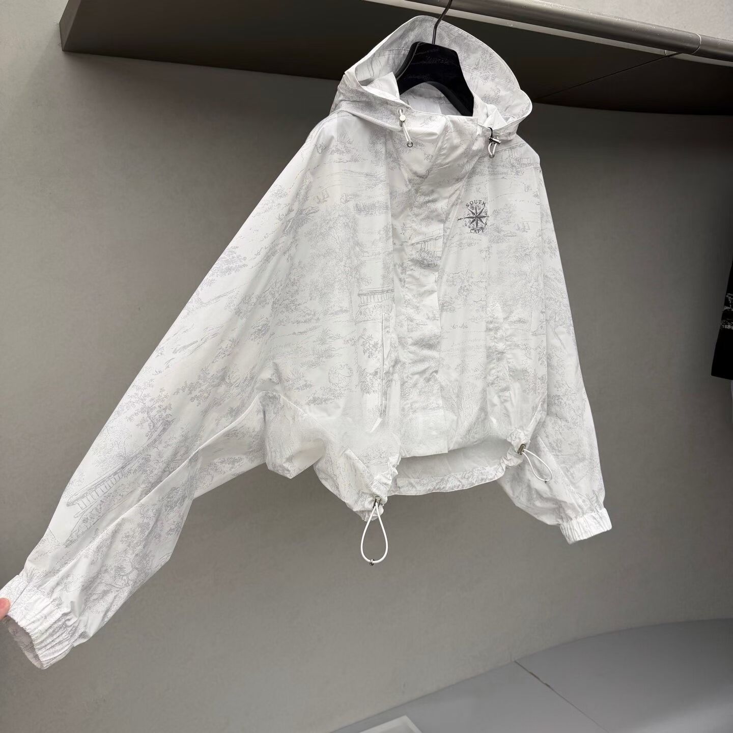 ⛳⛳신모델 ⛳⛳💯, 5월 7일 출고예정 👚👚SC 봄/여름 2026 얇은 여성용 방풍 재킷, 여성용 사이즈 : S, M, L 색상: 연한 회색 후드 디자인과 양쪽 밑단에 조이는 끈이 있는 스포티한 방풍 프린트 원단!