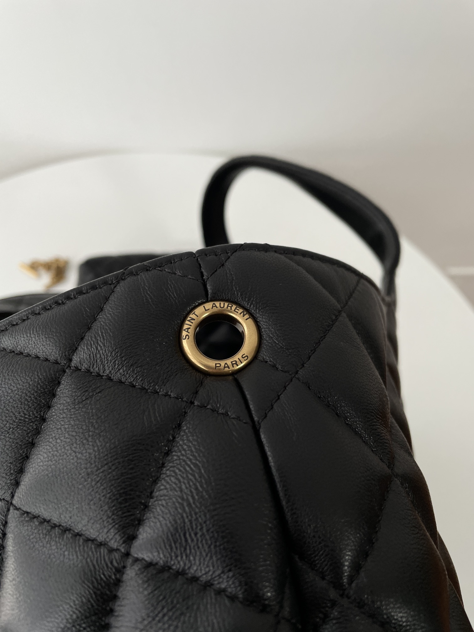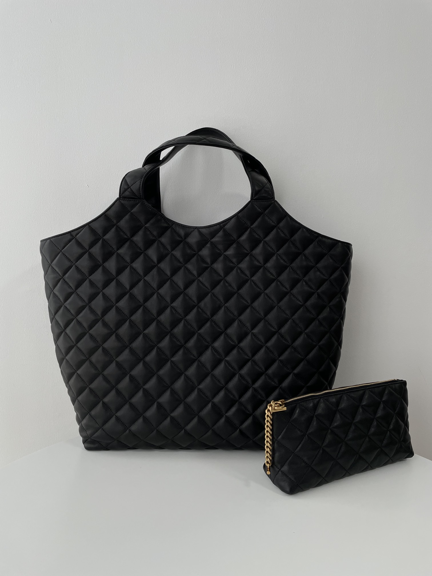 생로랑 맥시소퍼백 최상급 제품입니다. 중퀄이나 저퀄에 속지 마세요. 최상급은 정품과 차이를 느끼지 못해요. 특히 생로랑은요. 빈티지한 하드웨어와 묵직함은 기본, 퀼팅가죽의 윤기와 촉촉함도 정품과 다를 바 없어요. 58×43×8cm