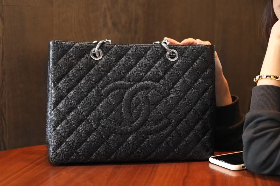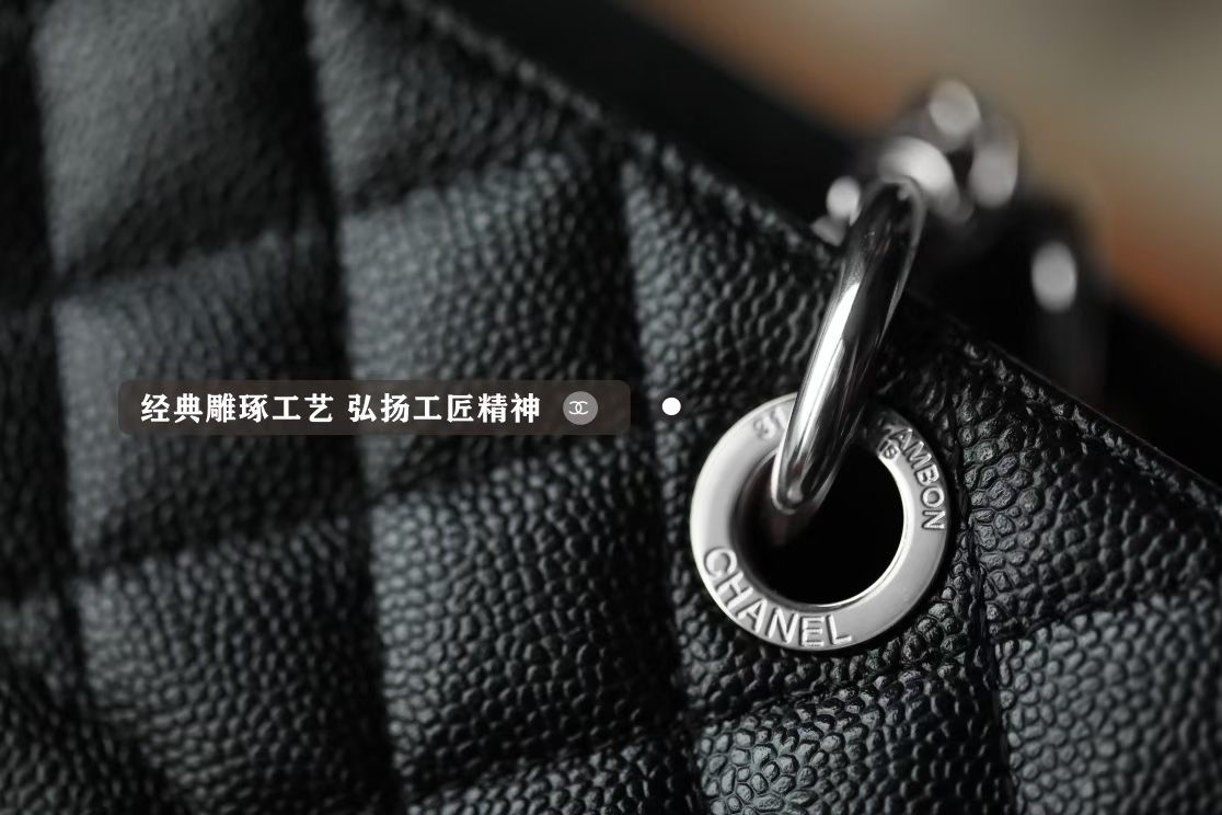 샤넬 그랜드쇼퍼 백 무거운 감은 있지만 정말 튼튼하고 클래식한 가방. 어떤 자리 어떤 OOTD에도 어울립니다. 수입 프랑스 hass사의 캐비어. 부자재까지 수입하여 복원. 그랜드 쇼퍼백 이렇게 다시 만나니 좋네요😍 사이즈 : 34cm 색상 : 블랙 /베이지 하드웨어: 금장/은장 캐비어가죽