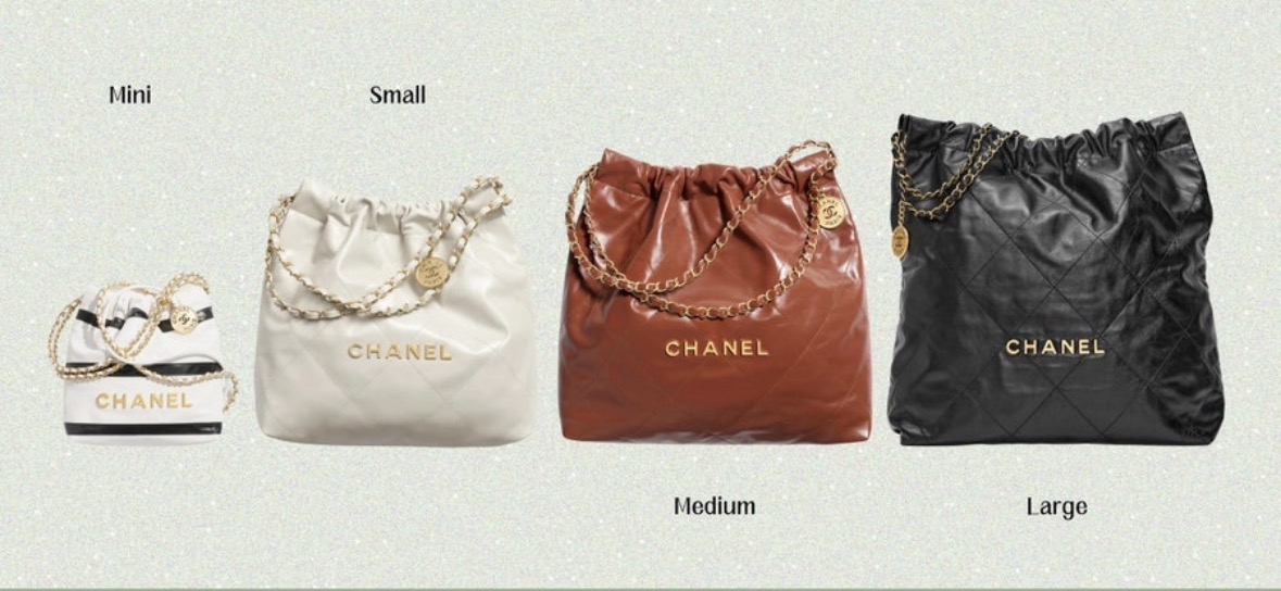 샤넬 22백 미니 (Mini) 20×19×6 cm -828000 스몰 (Small) 35× 37×7 cm -878000 미디움 (Medium) 39×42×8 cm -928000 라지 (Large) 48×45×10 cm -978000 백팩 – 스몰 29cm / 라지 40cm 문의주세요. 가죽 : 램스킨 하드웨어 :은장, 금장, 올블랙 색상: 블랙 포함 출시하는 모든 색상 탑티어 진행 중. 원하시는 제품 색상 사진주세요.