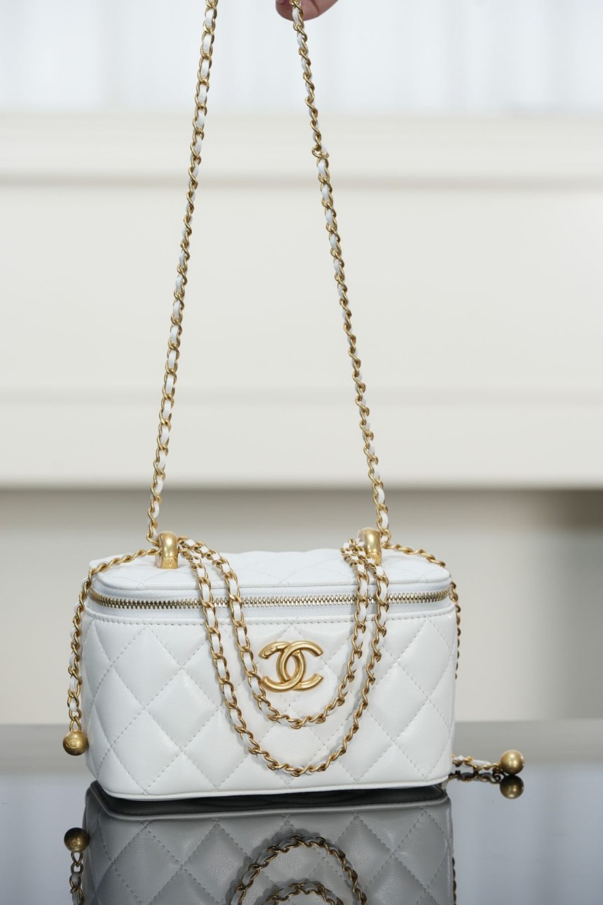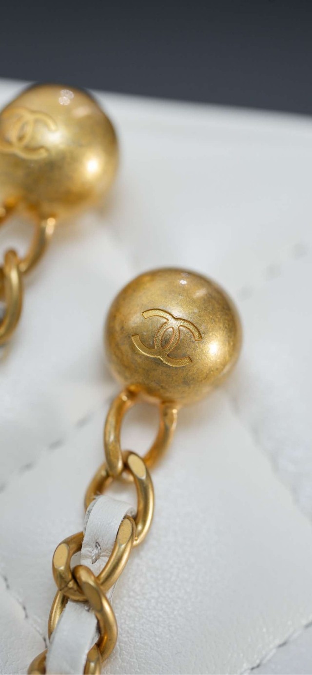 𝐂𝐡♡𝐧𝐞𝐥 𝟐𝟓𝐬 더블 골드 비즈 롱 케이스 화이트 골드✨