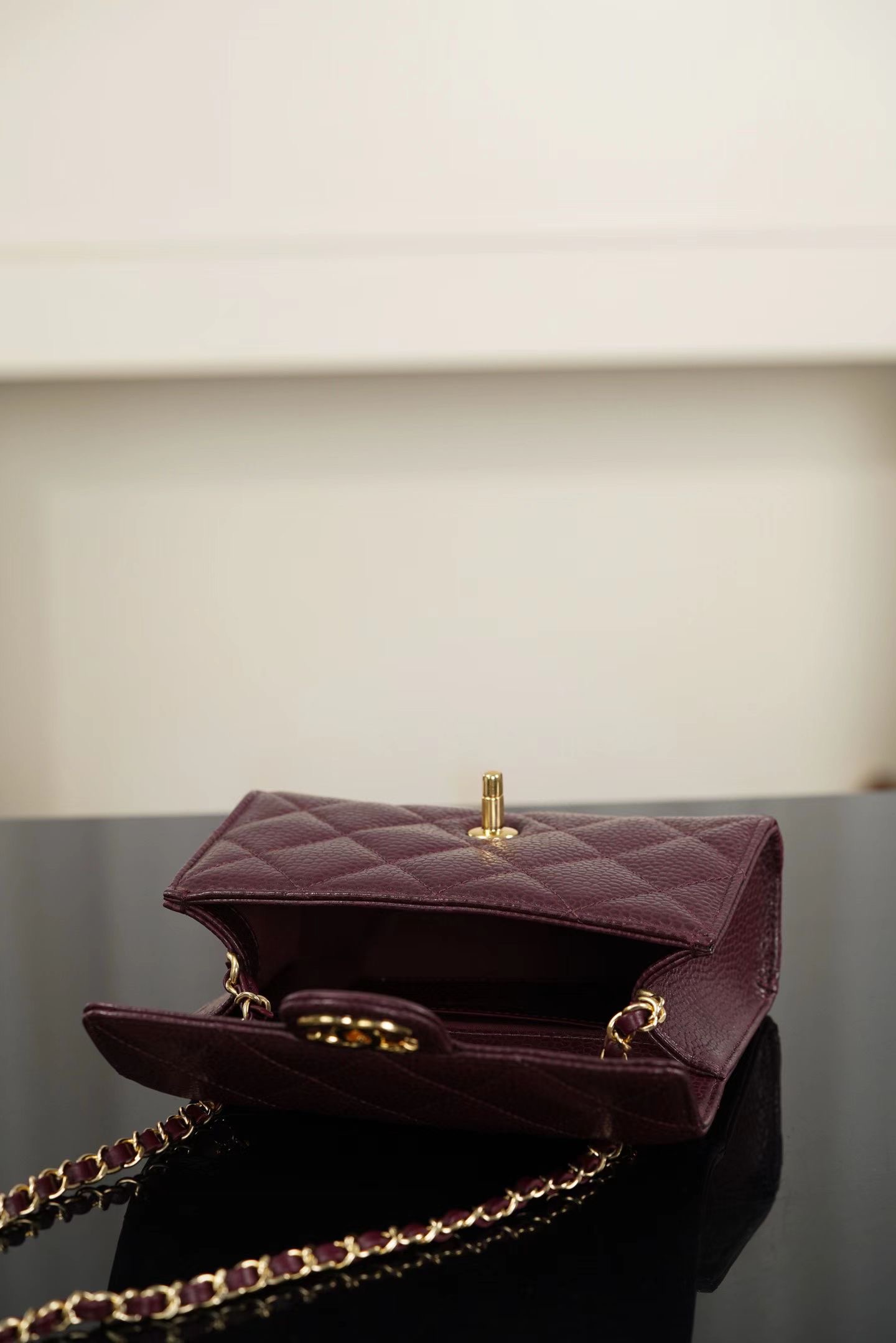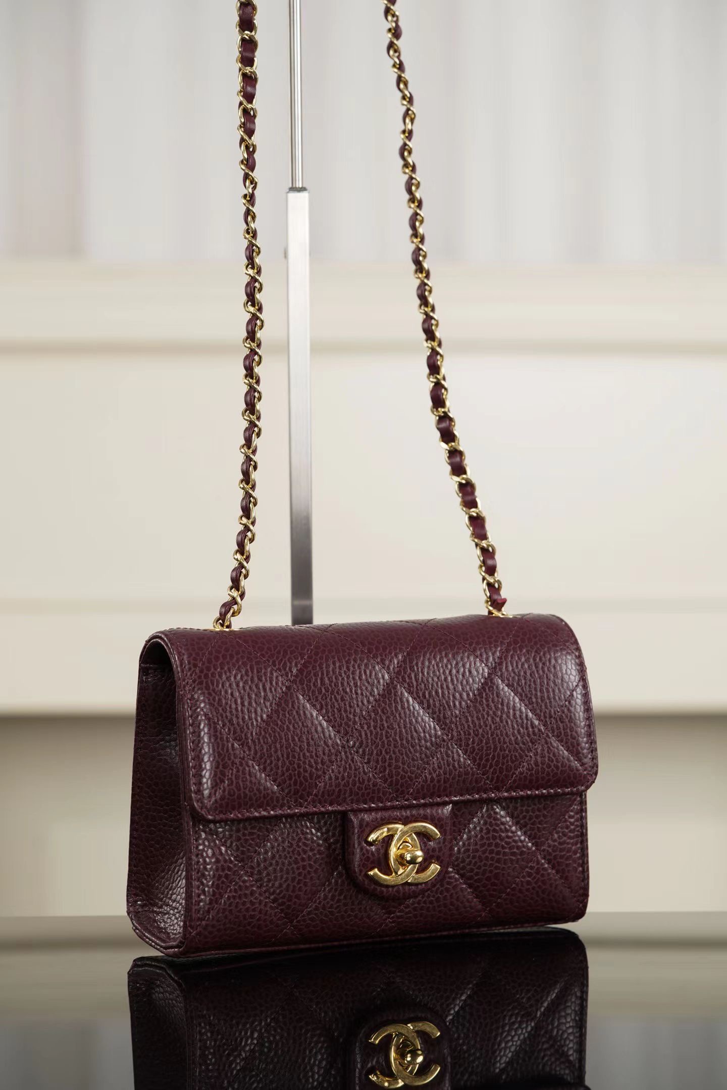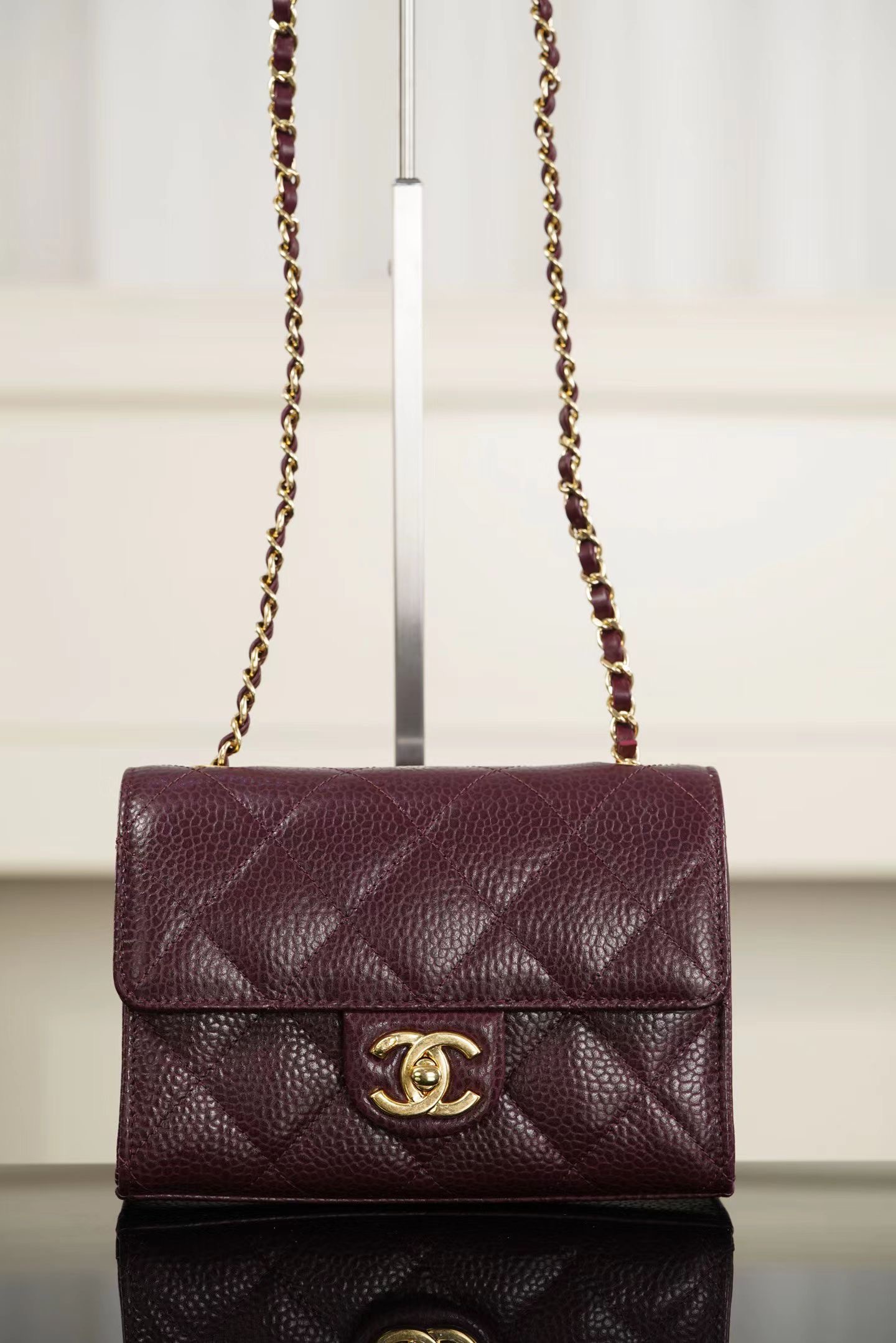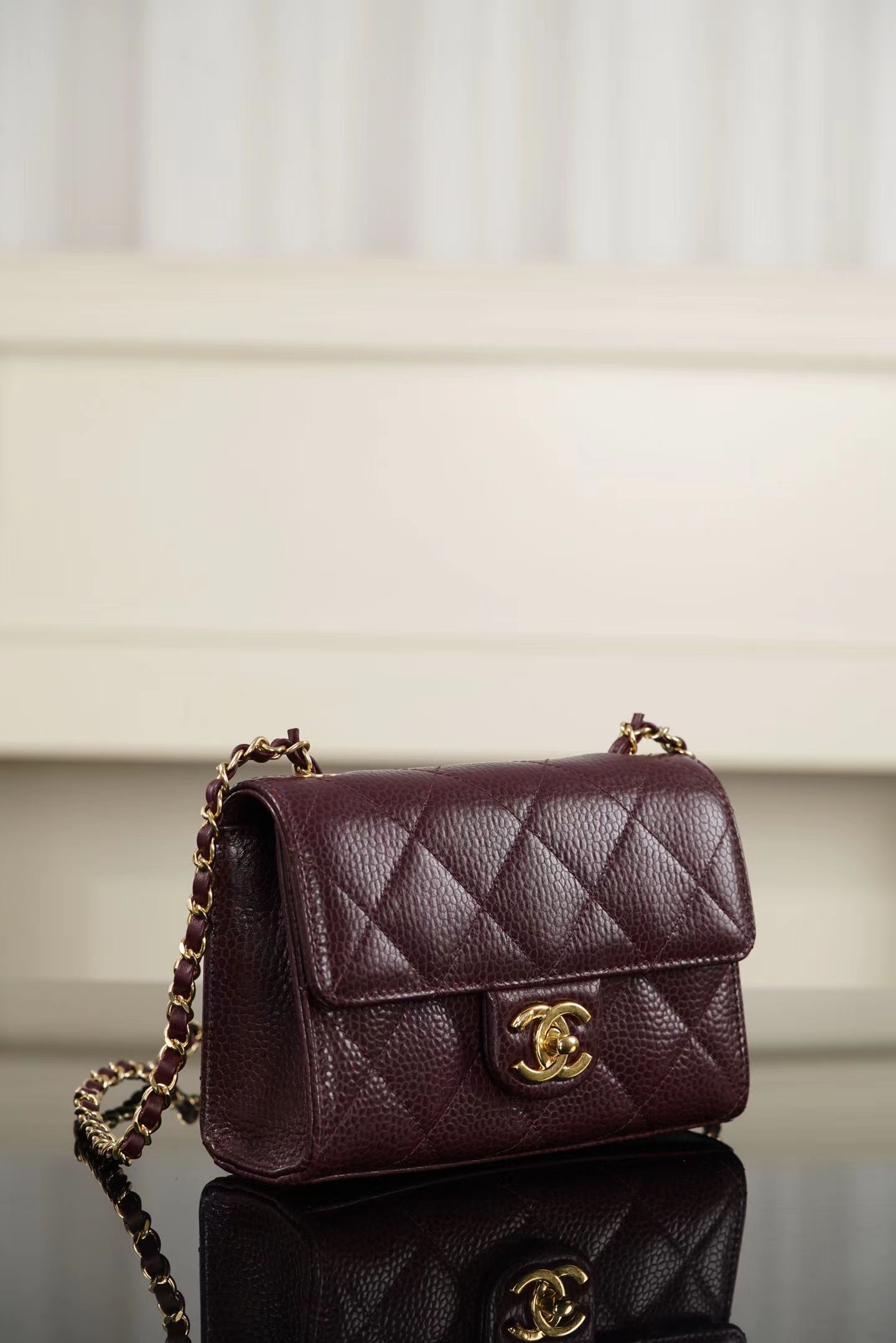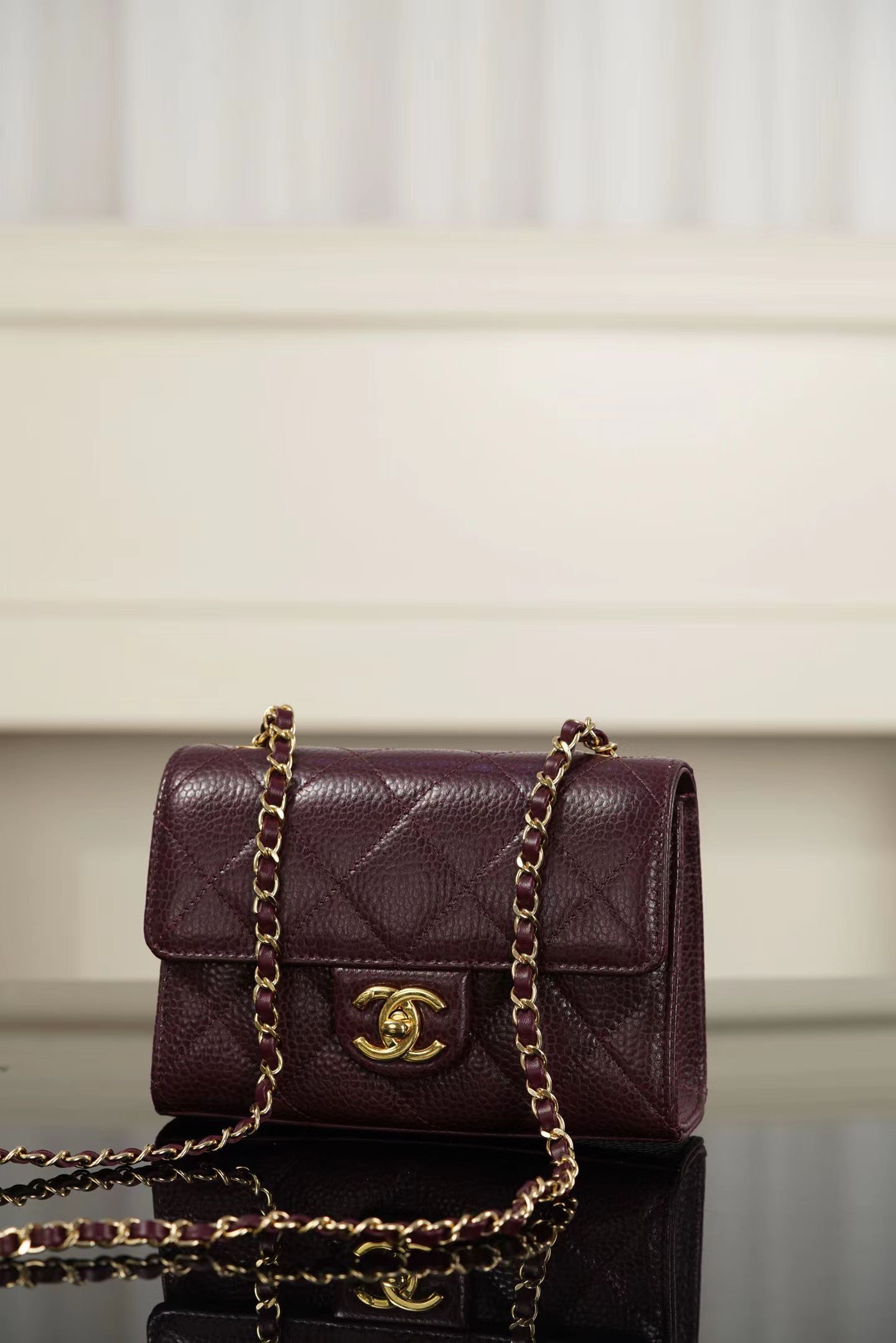 샤넬 26C 미니 CF 버건디, 블랙, 화이트 수입 정품 캐비어가죽 하드웨어 금장 크기: 13x19x7cm