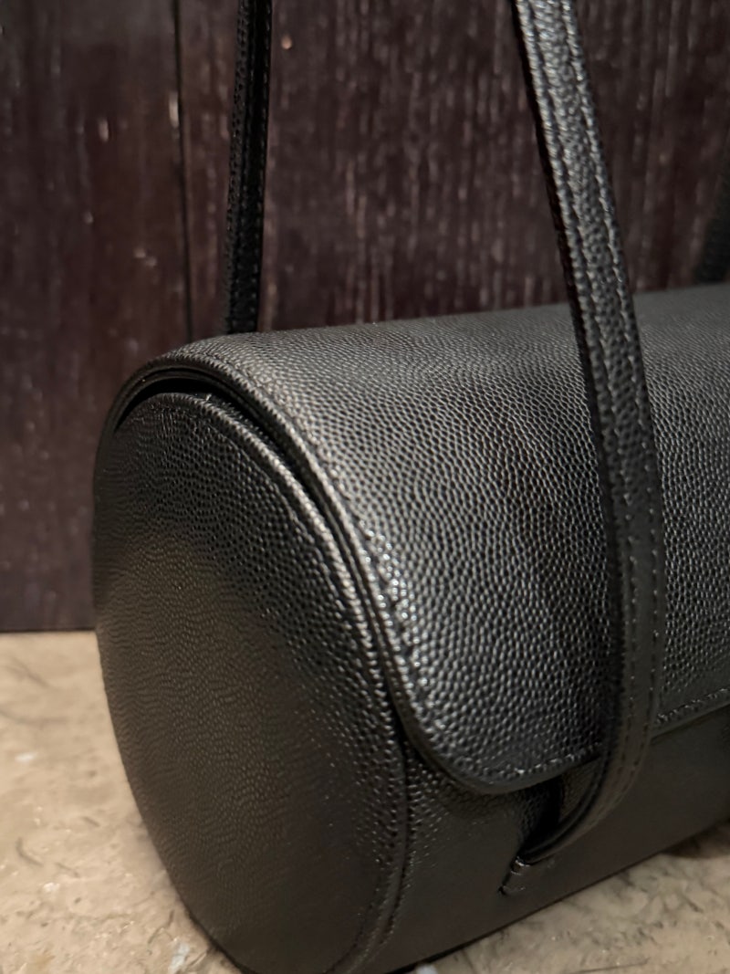 [제품번호]AS6143 [색상]블랙 [재질]유광 그레인드 카프스킨 [사이즈]10 x 20.5 x 10cm 수납보다는 예뻐서 눈길가는 원통형입니다!